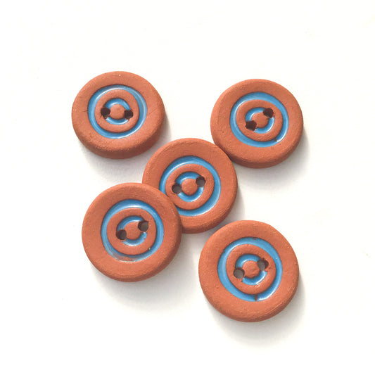 Cerulean Blue Concentric Circle Ceramic Buttons on Terracotta Clay - 3/4" - 5 Pack
