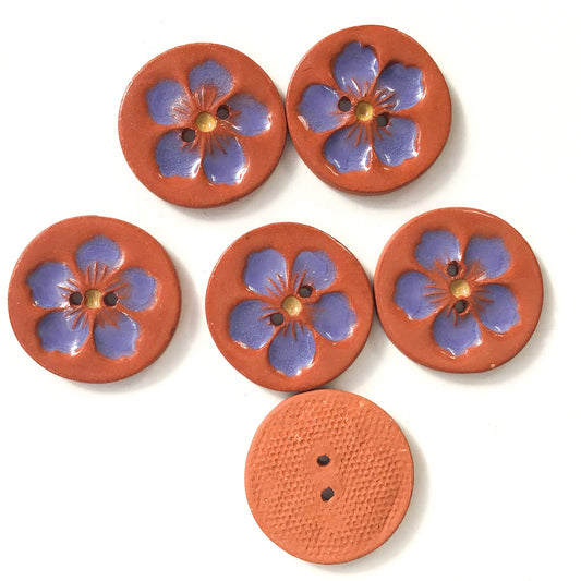 Hawaiian Petals Button - Blue-Purple Bloom on Red Clay - 1-1/16"