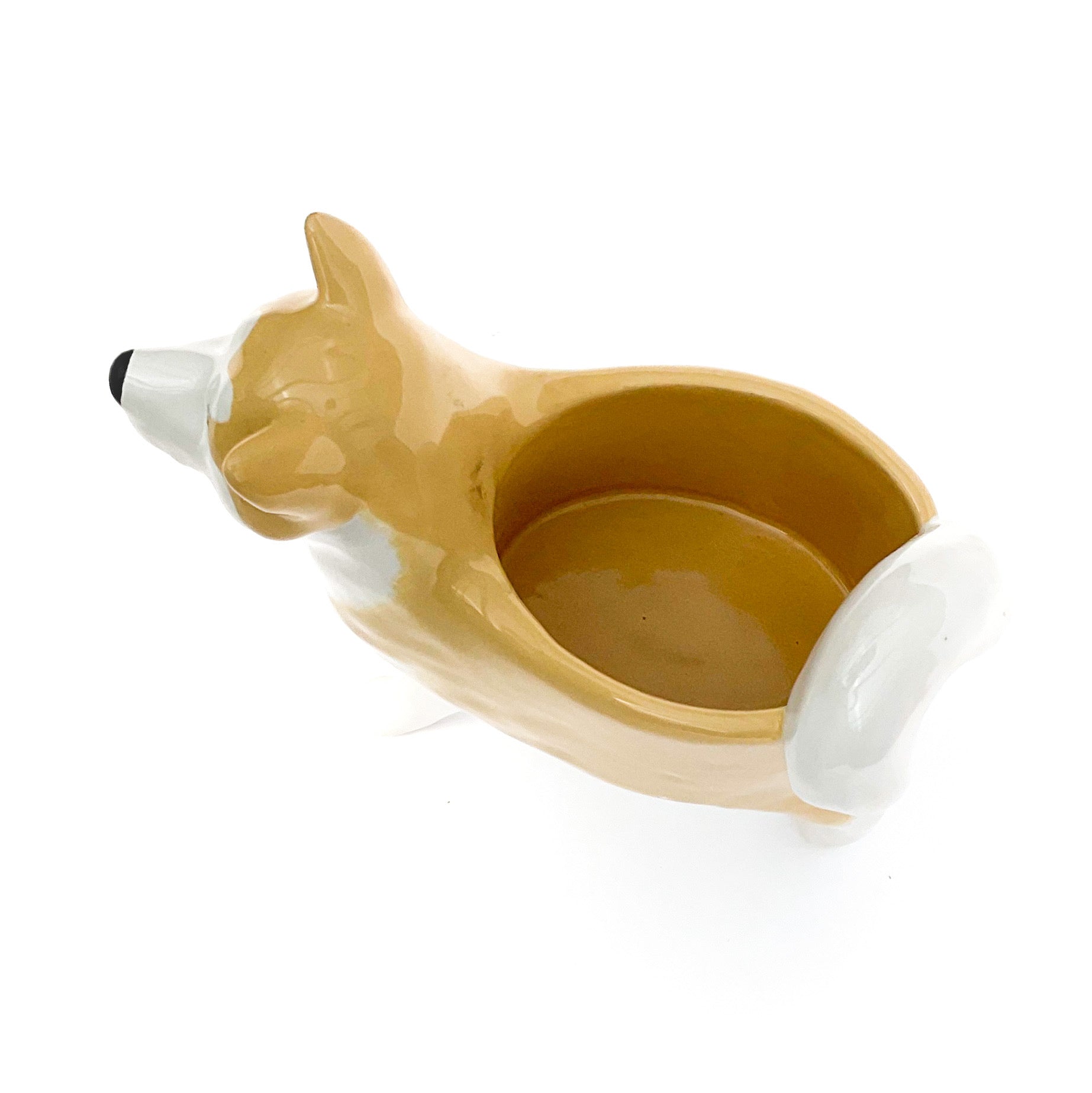 A ceramic Akita Inu dog planter to pot up your favorite plant. This dog pot would also make a sweet candy or keepsake bowl.