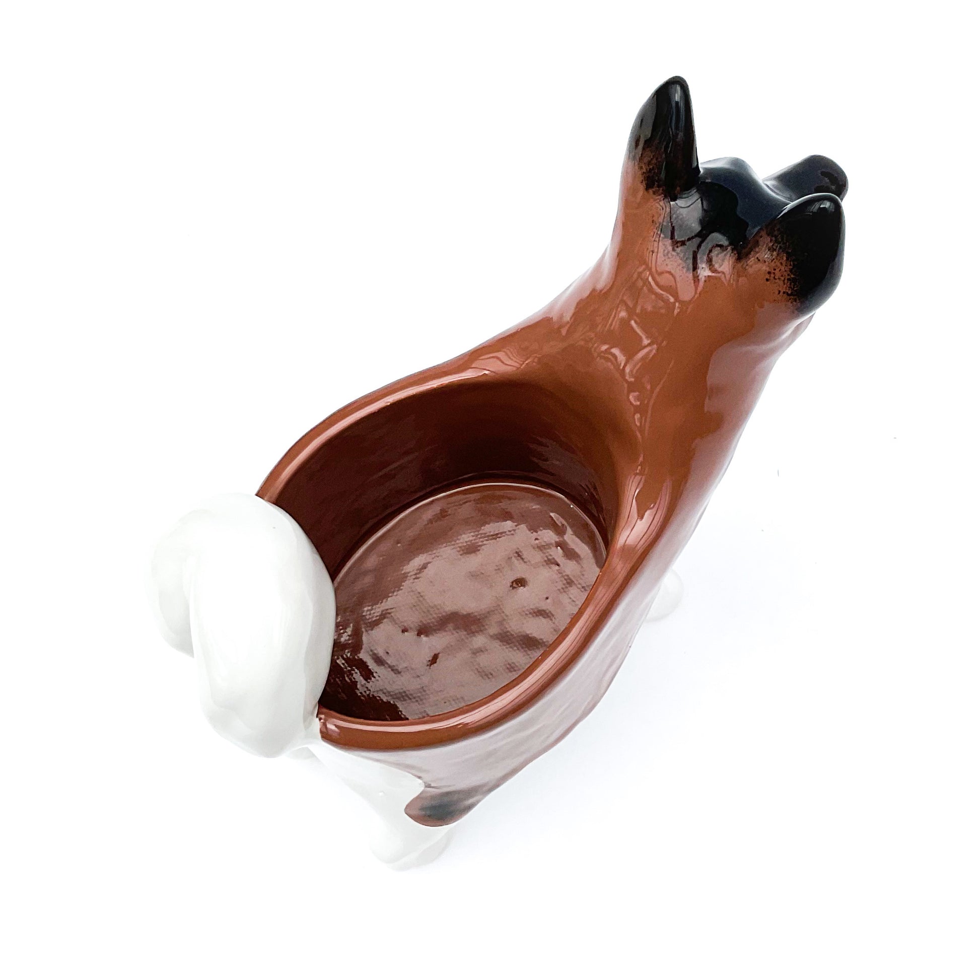 A ceramic American Akita dog planter to pot up your favorite plant. This dog pot would also make a sweet candy or keepsake bowl.