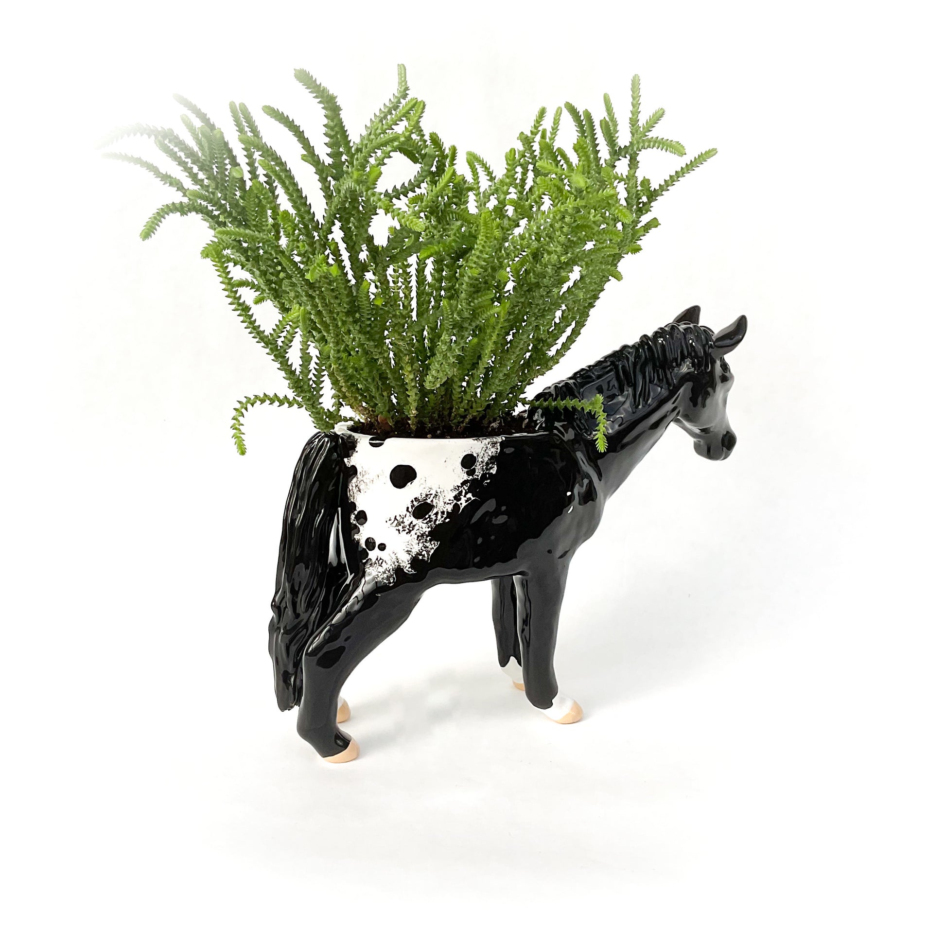 A ceramic Appaloosa planter to pot up your favorite plant or use as a dish.
