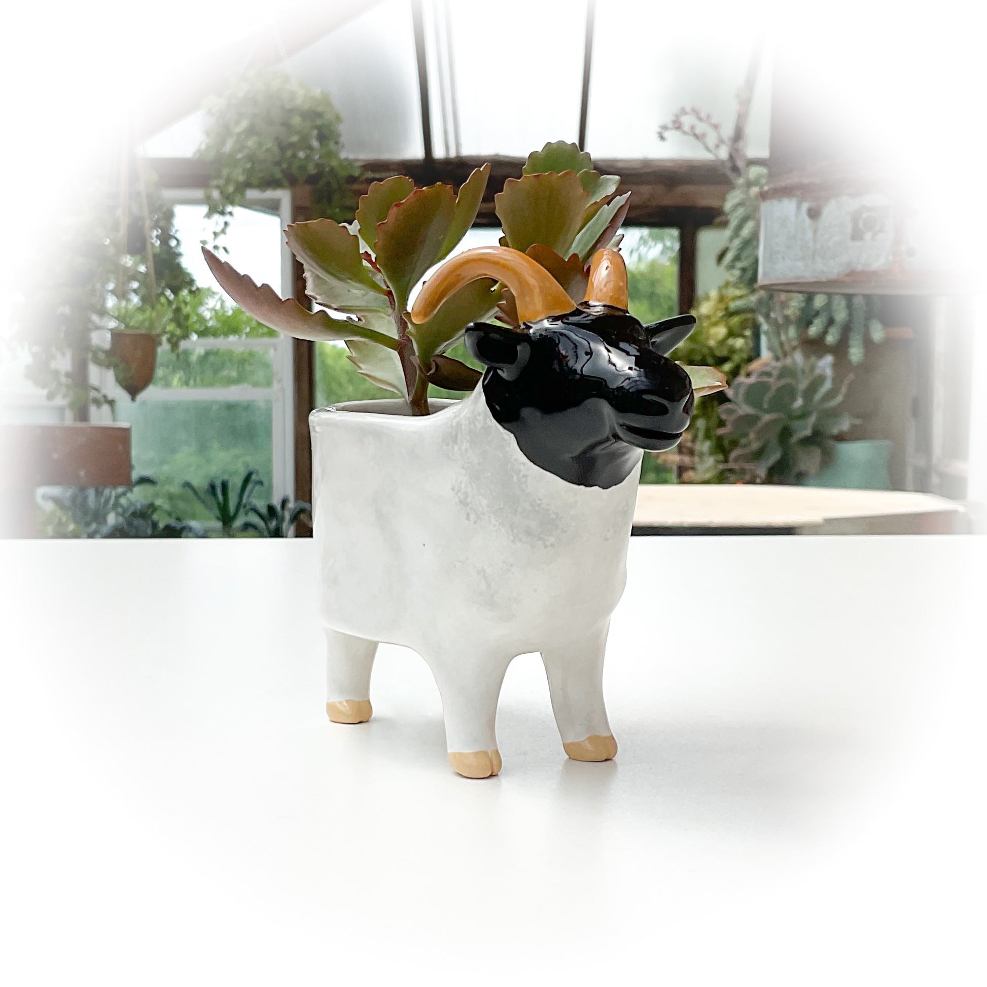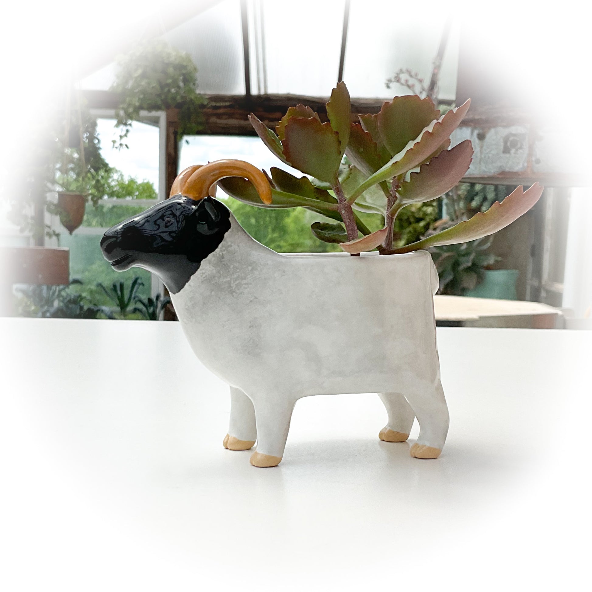 Black and White Sheep Pot - Ceramic Sheep Planter