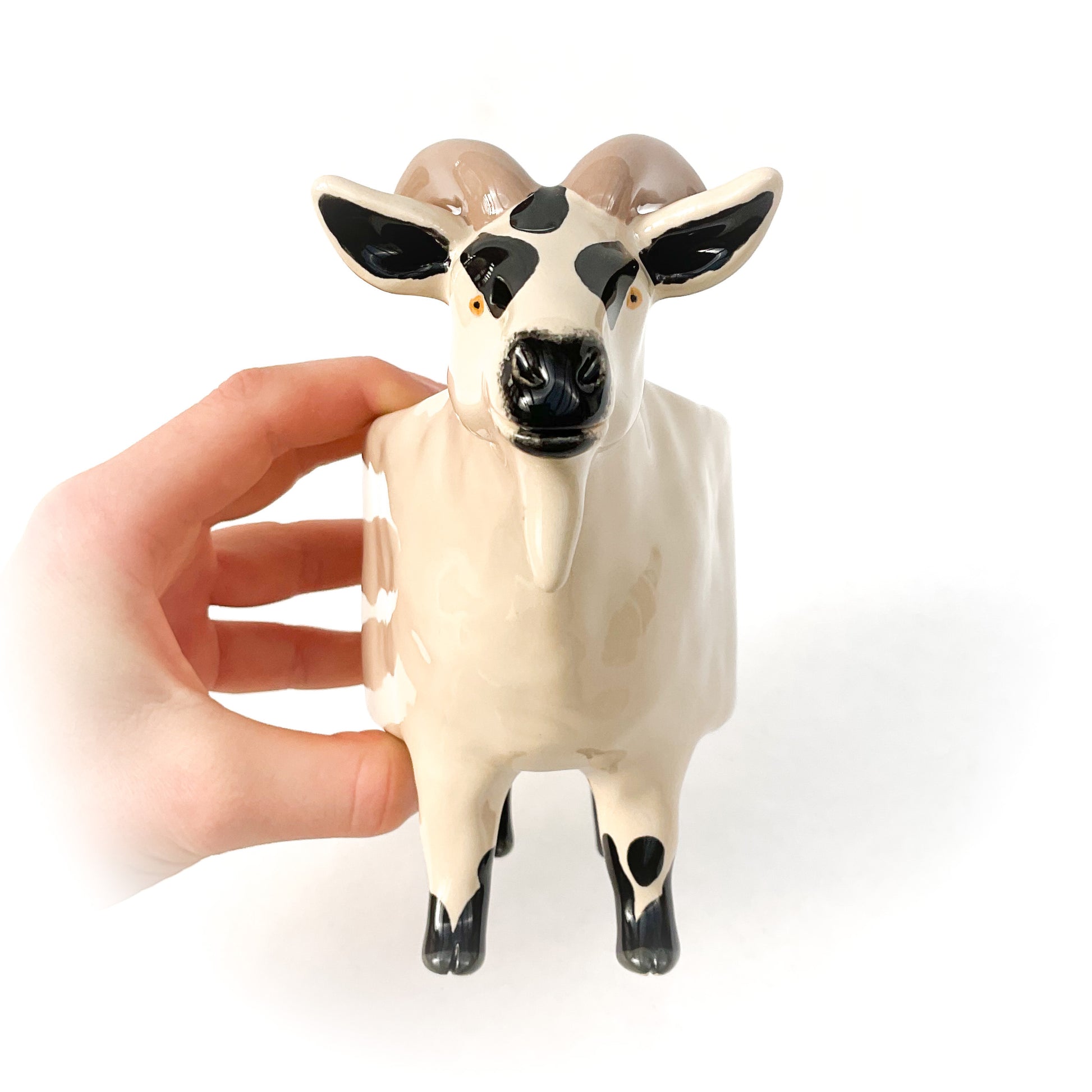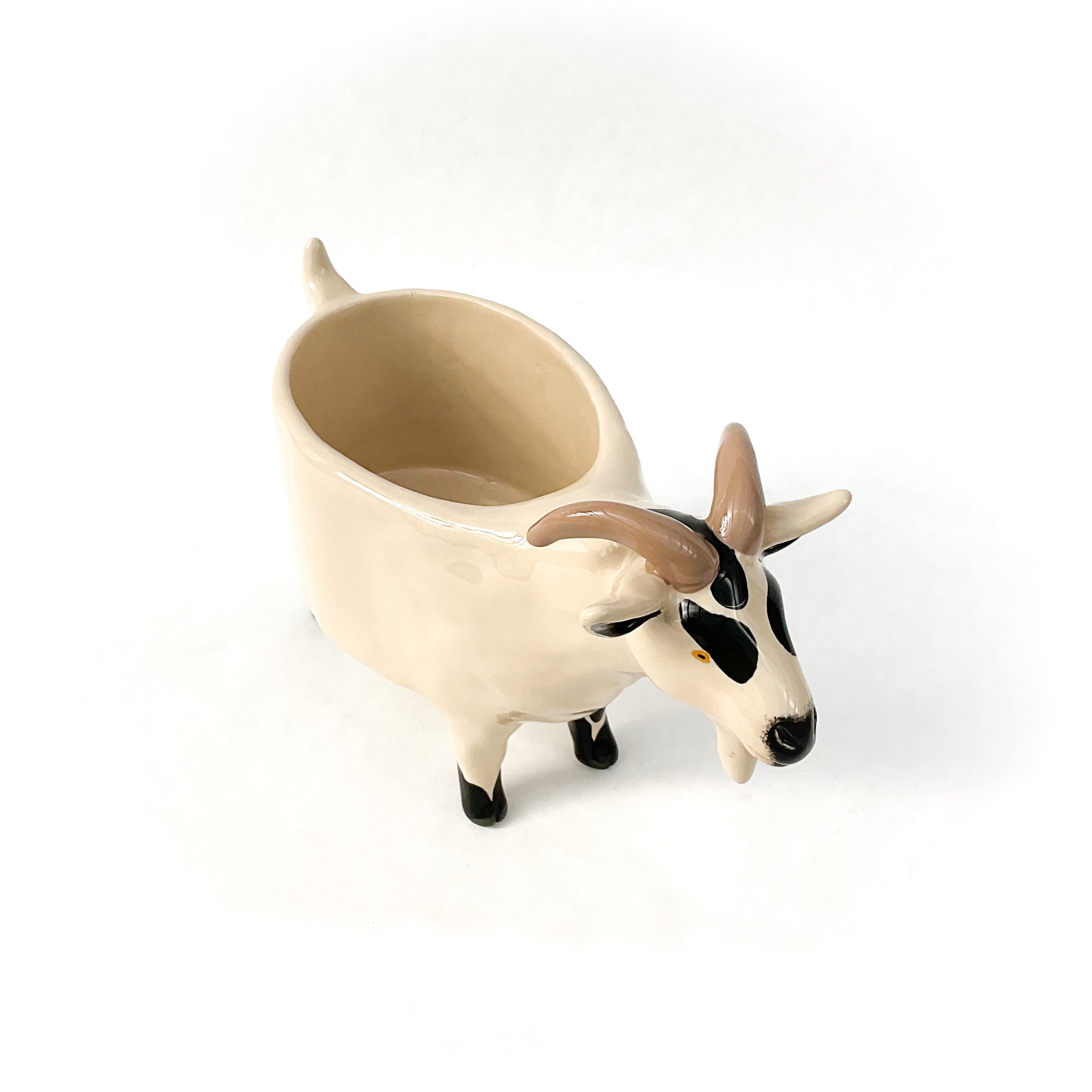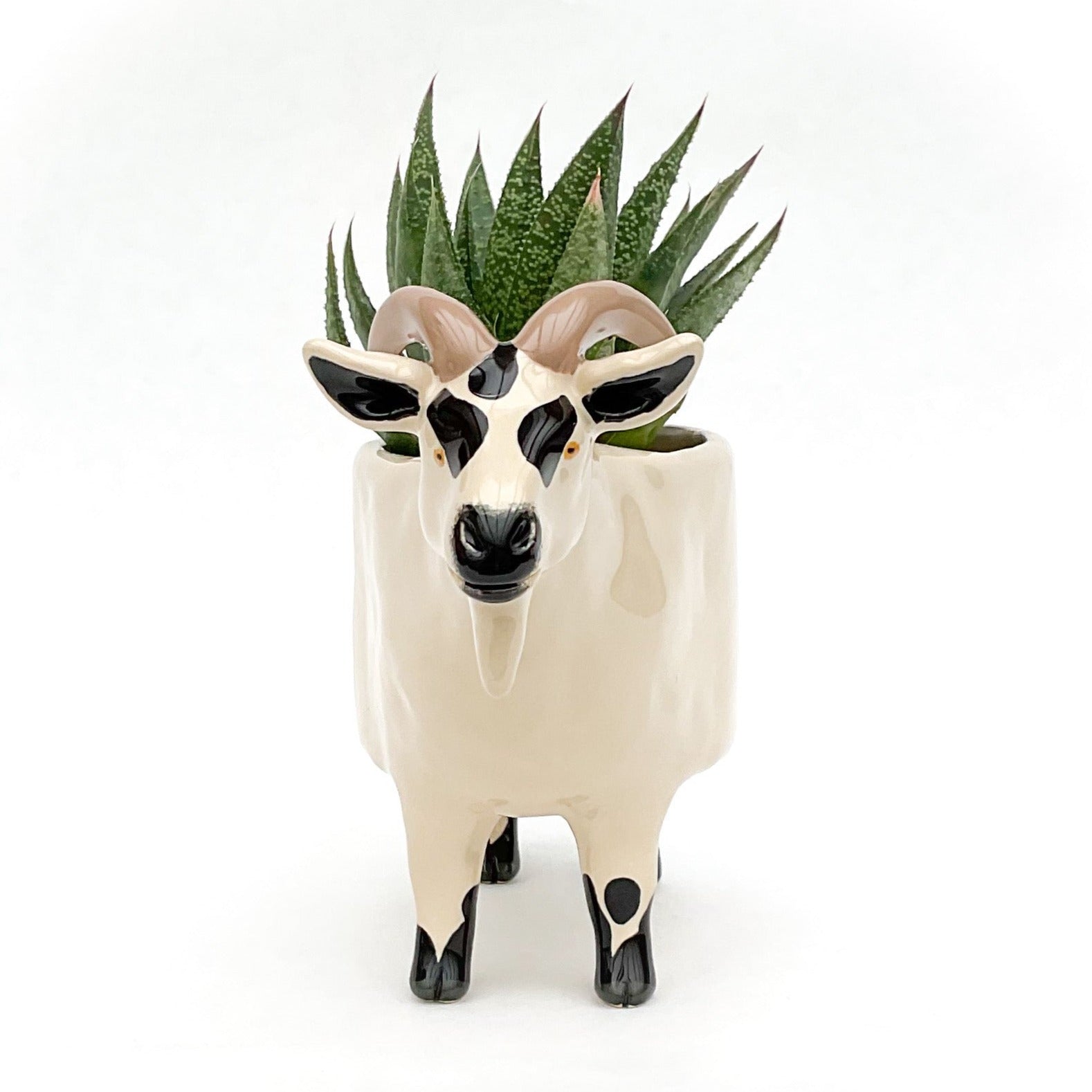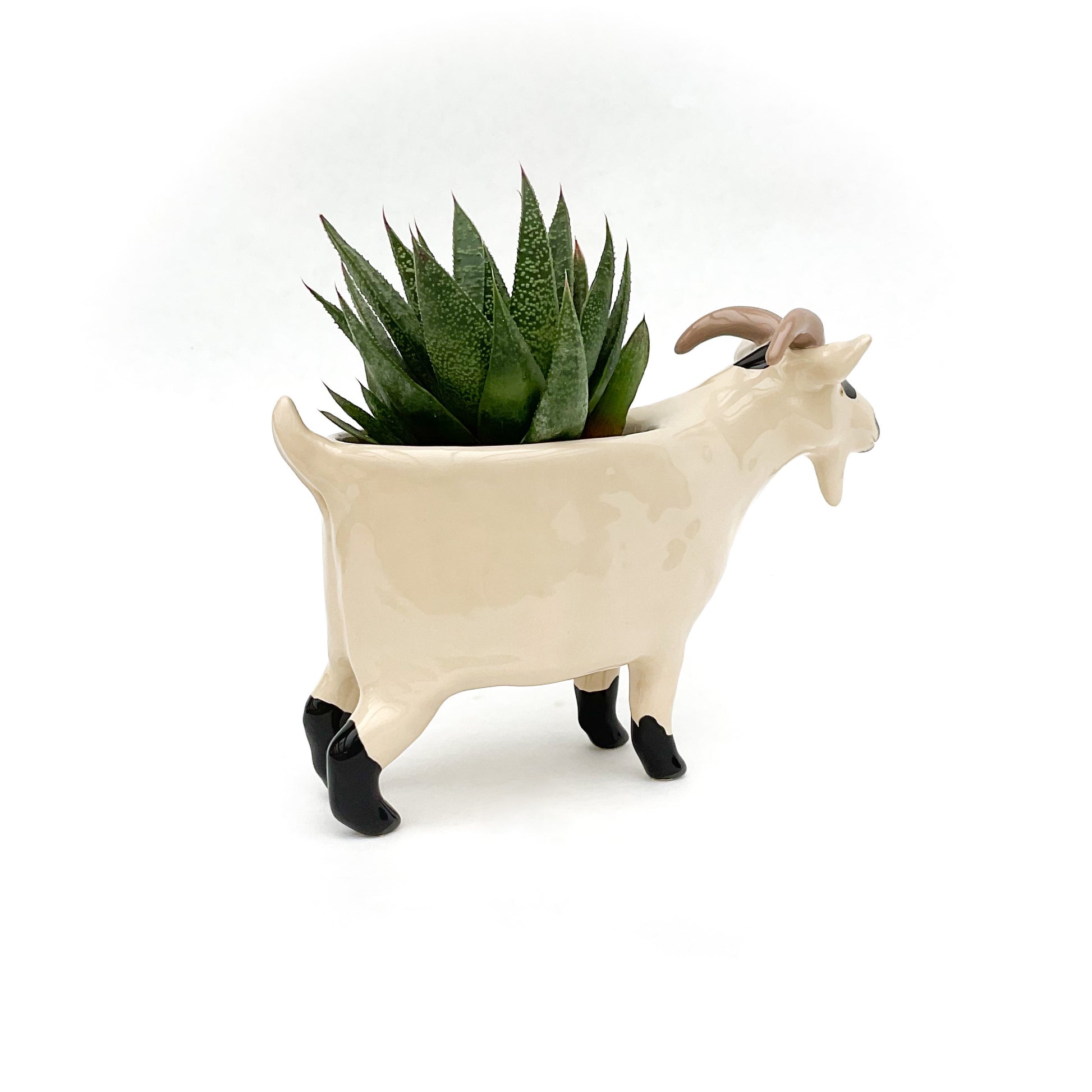 A little ceramic pygmy goat planter to pot up your favorite succulent.