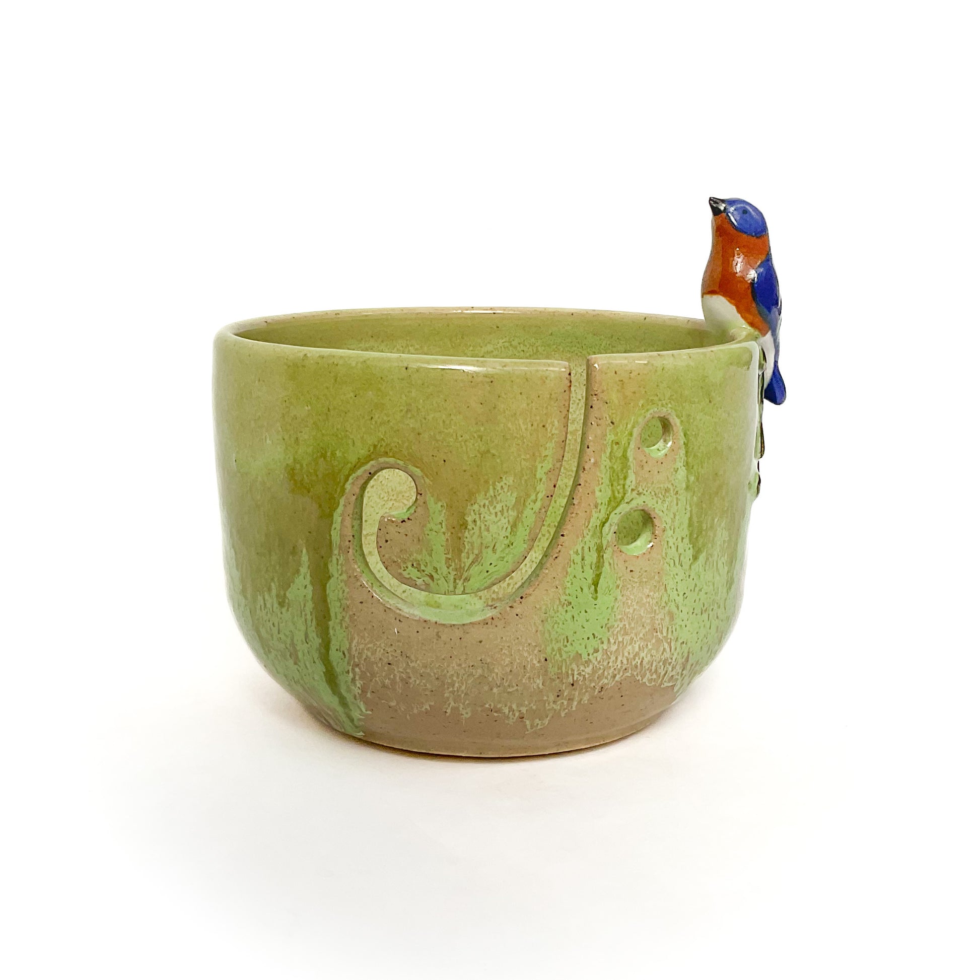 A one-of-a-kind stoneware clay yarn bowl with a special hand sculpted addition!