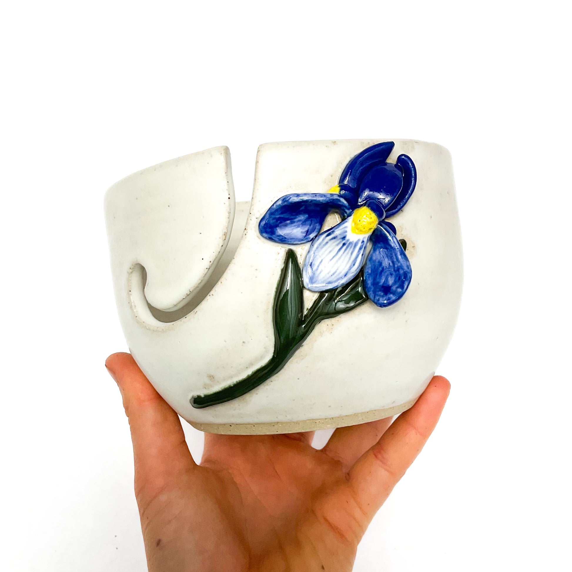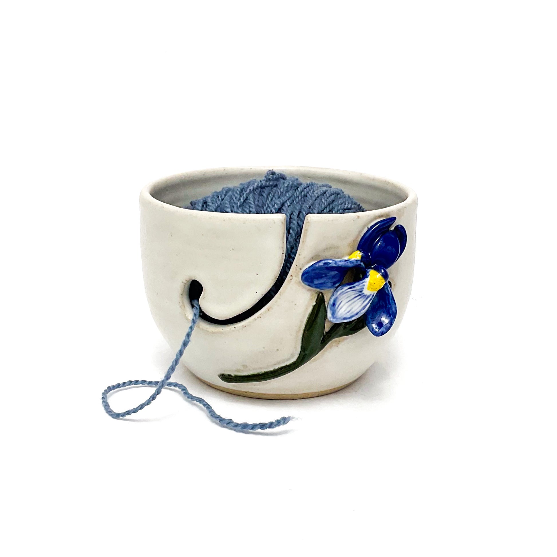 A one-of-a-kind stoneware clay yarn bowl with a special hand sculpted addition!