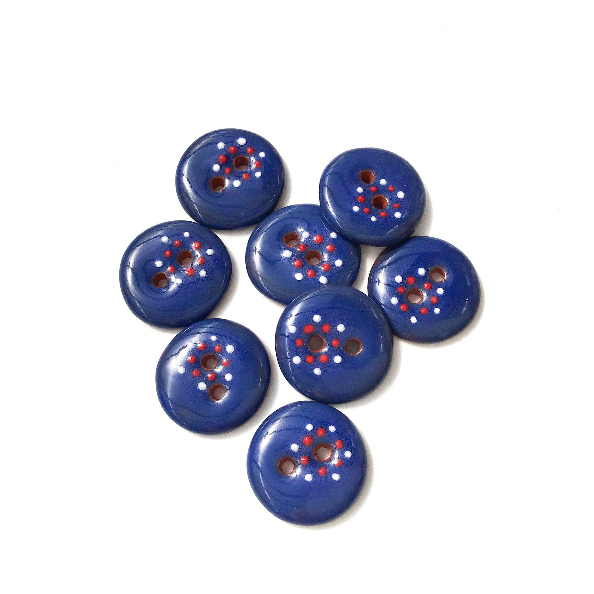 Blue, Red, & White "Spark" Ceramic Buttons - Blue Clay Buttons - 5/8" - 8 Pack