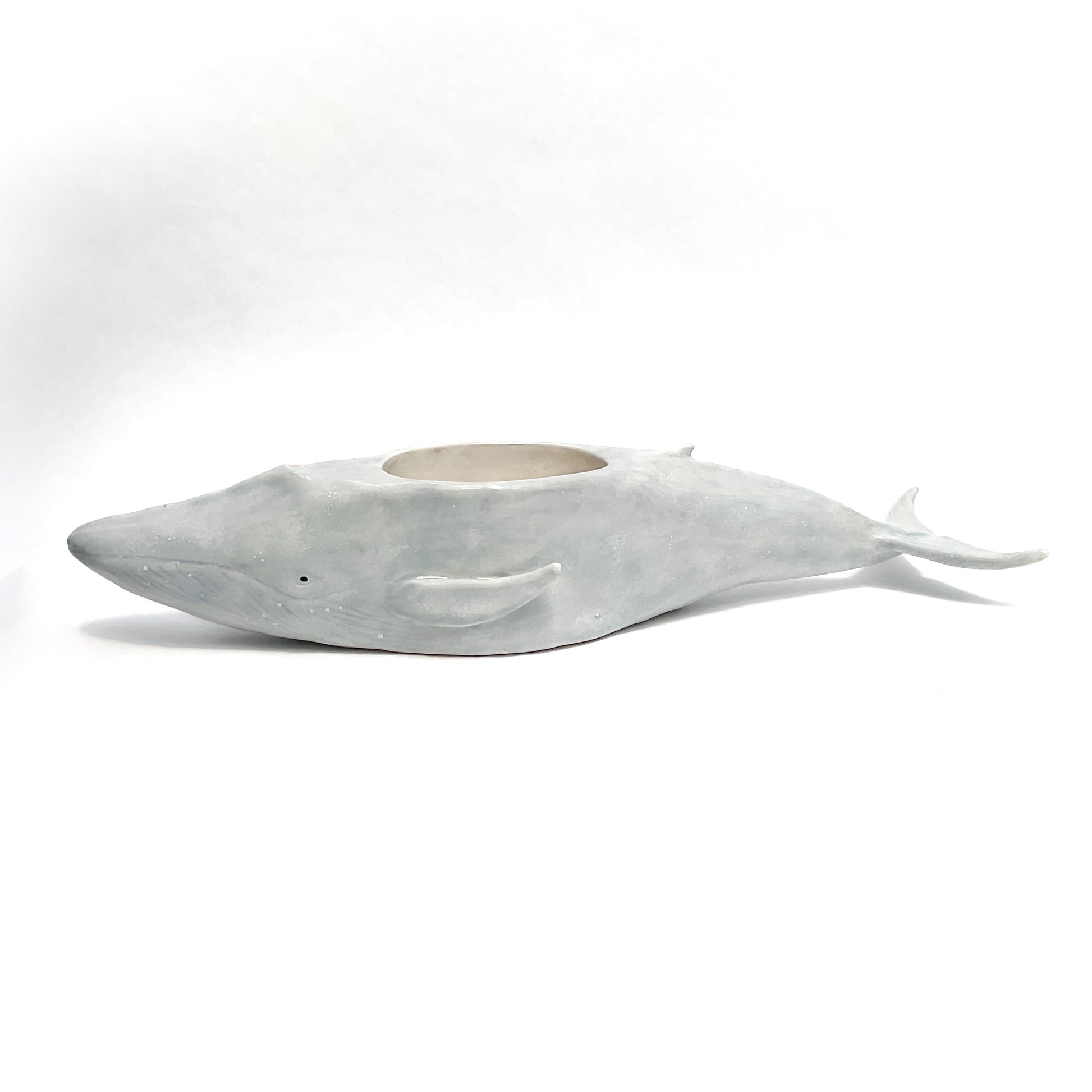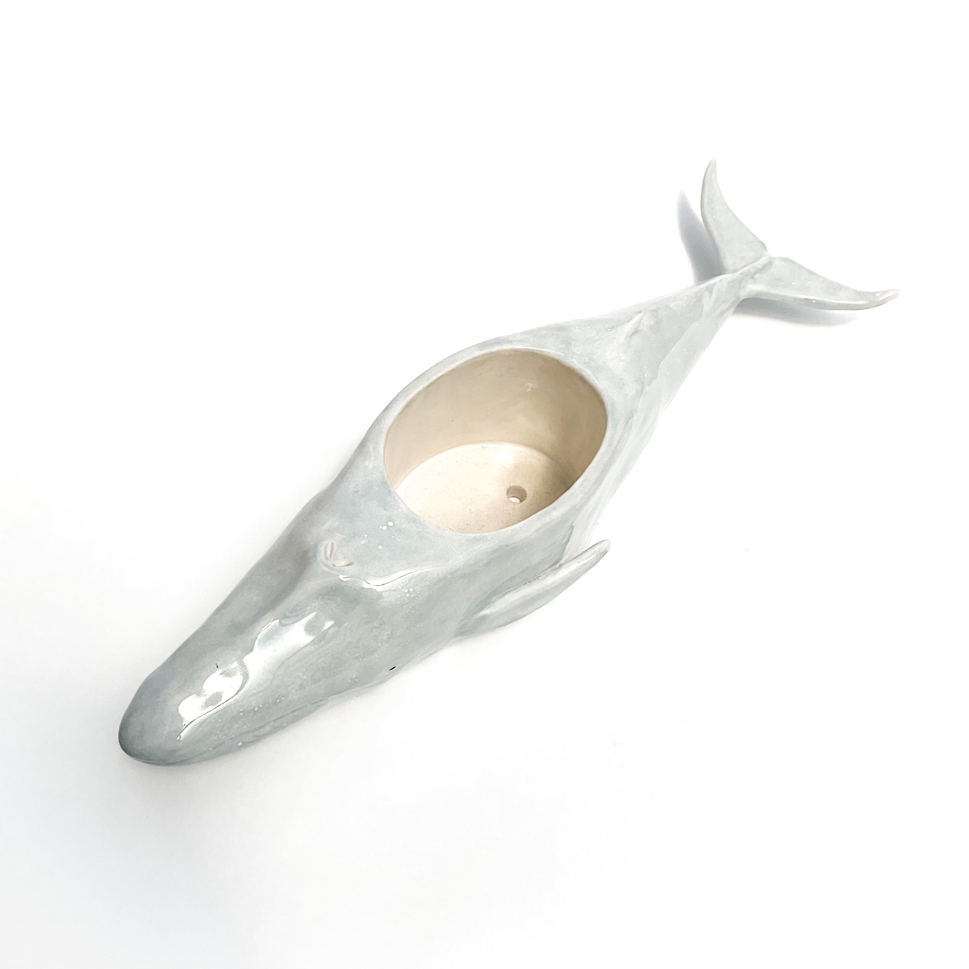 A beautiful blue whale planter to pot up your favorite succulent or plant.