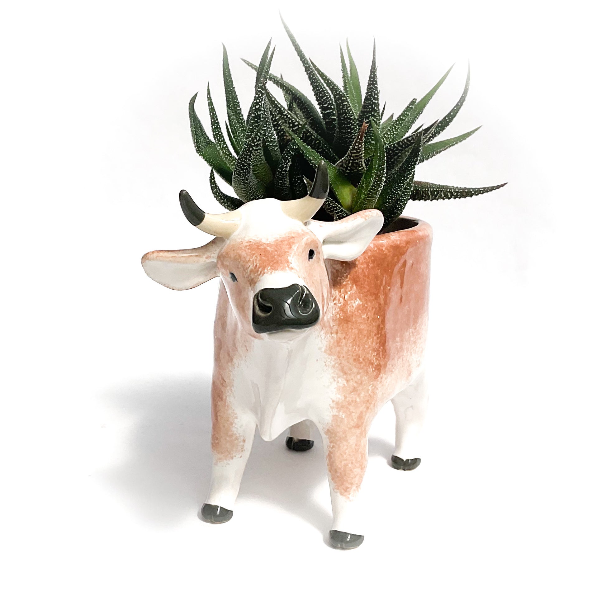 A ceramic cow planter to pot up your favorite succulent.