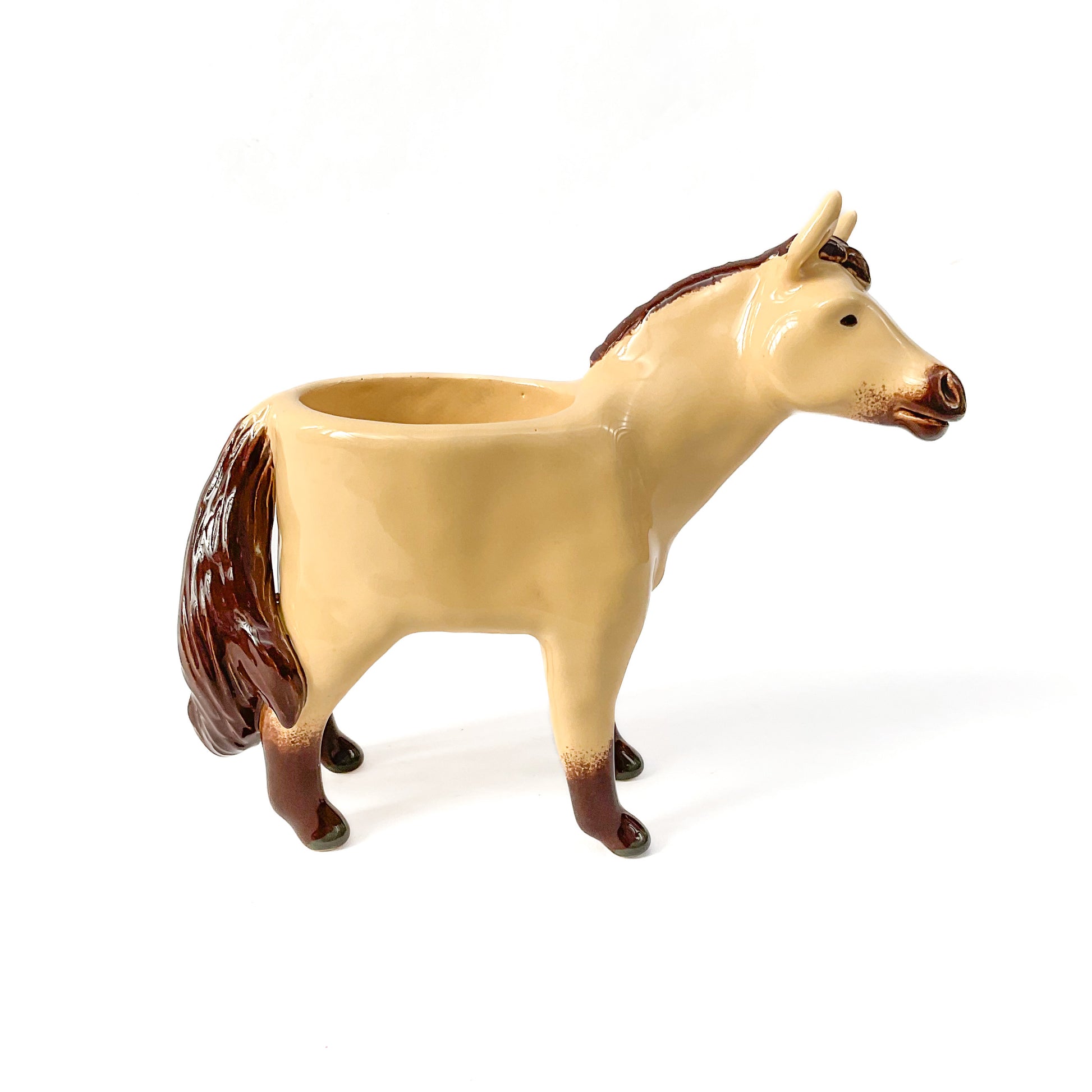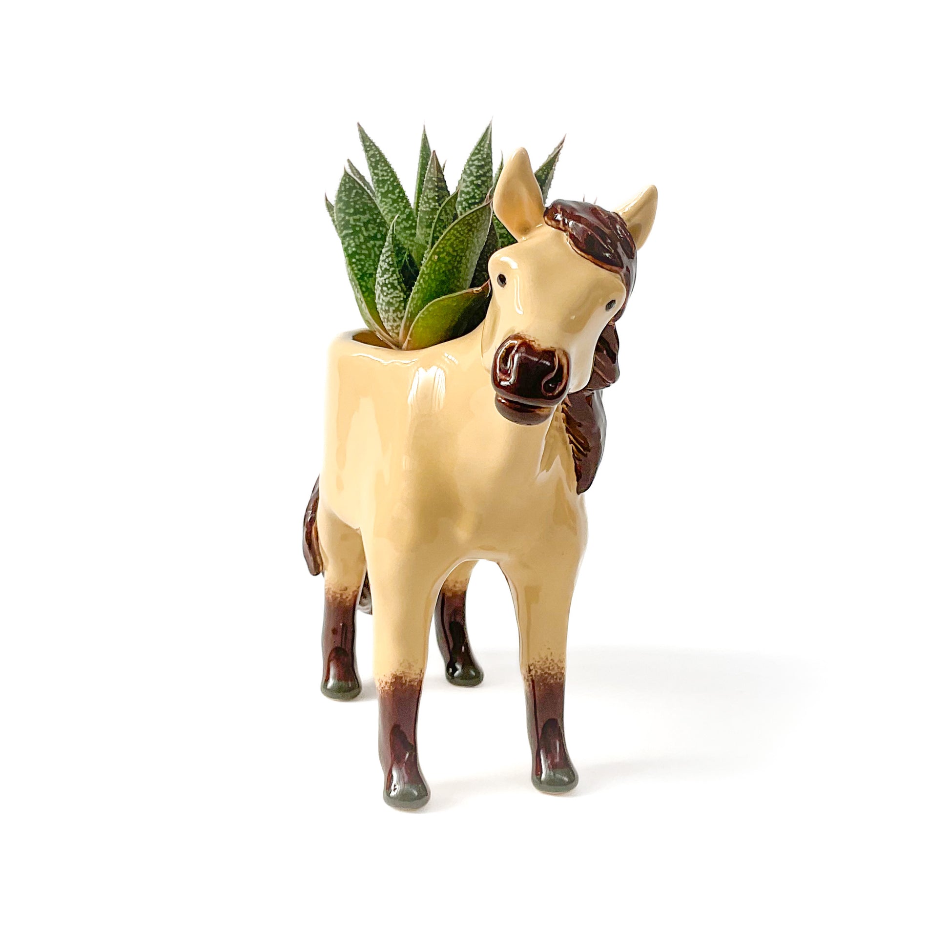 A ceramic Quarter horse planter to pot up your favorite plant or use as a dish.