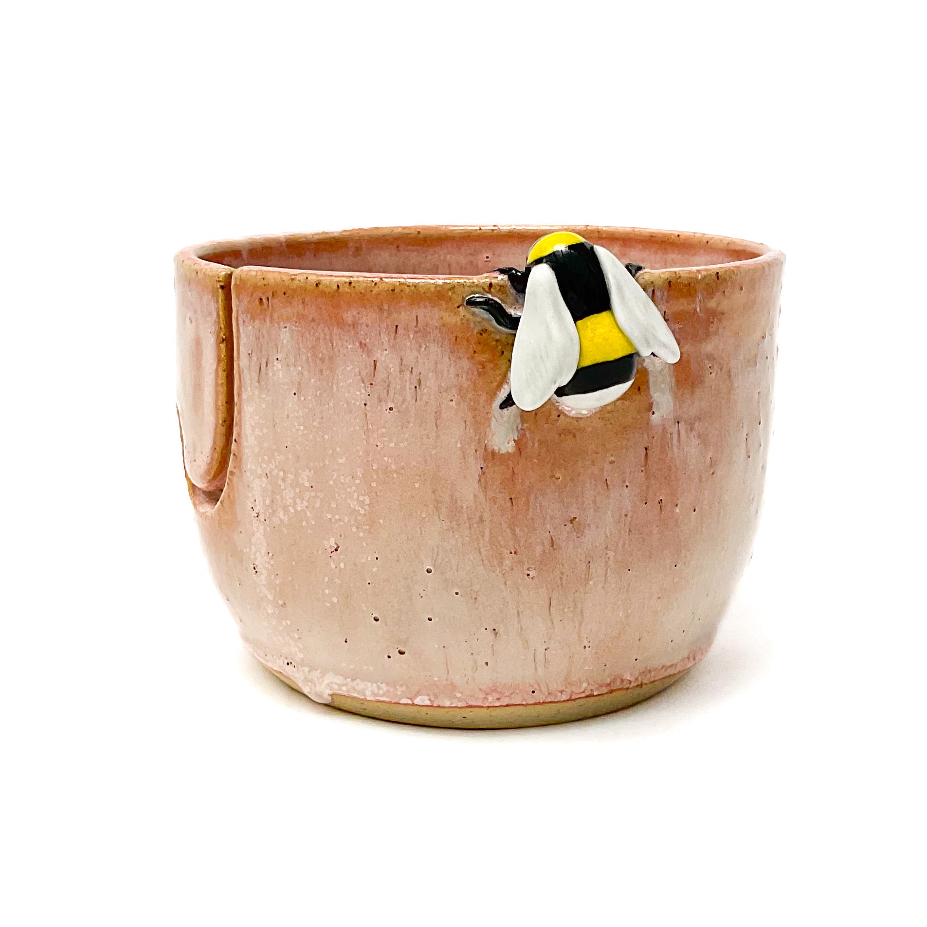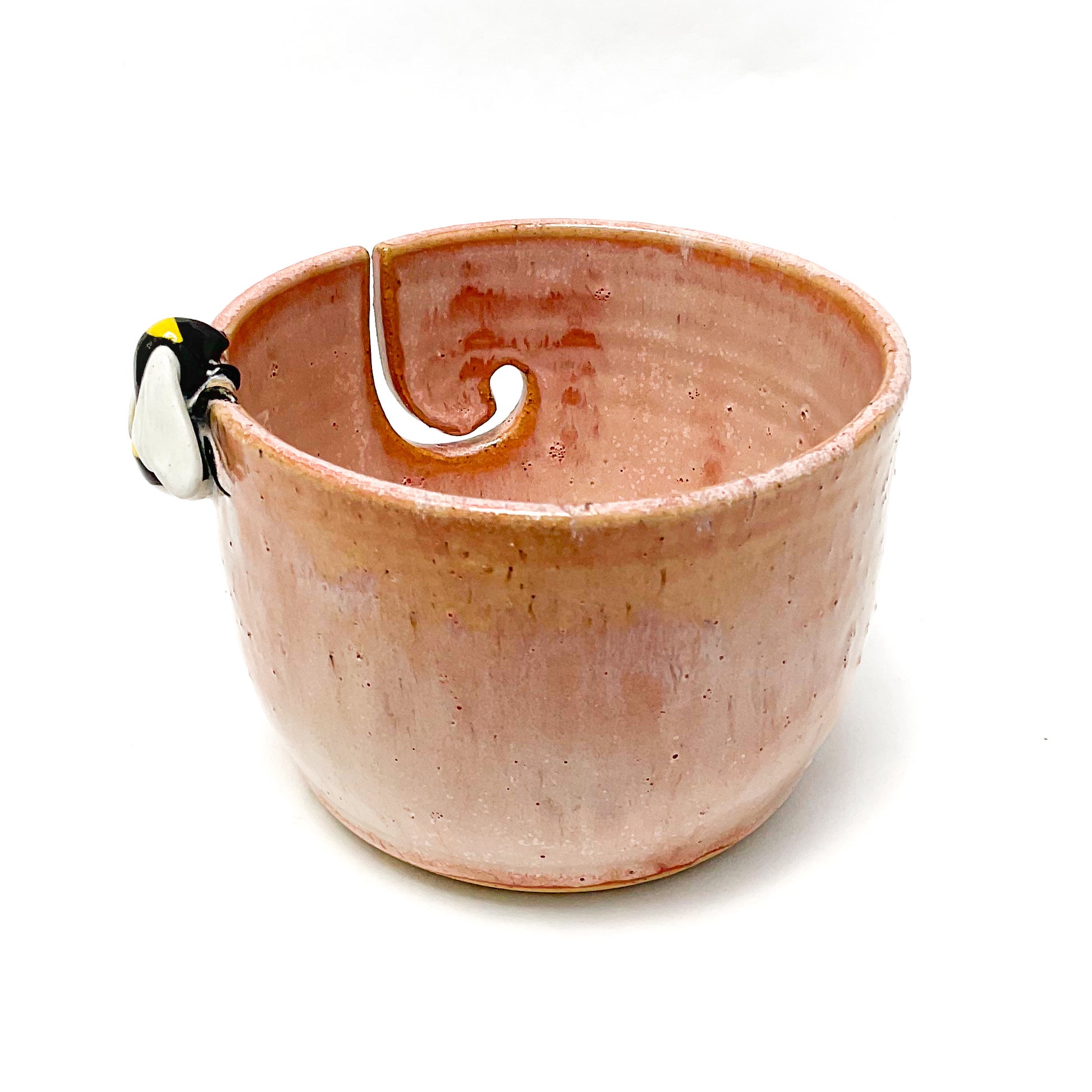 A one-of-a-kind stoneware clay yarn bowl with a special hand sculpted addition!