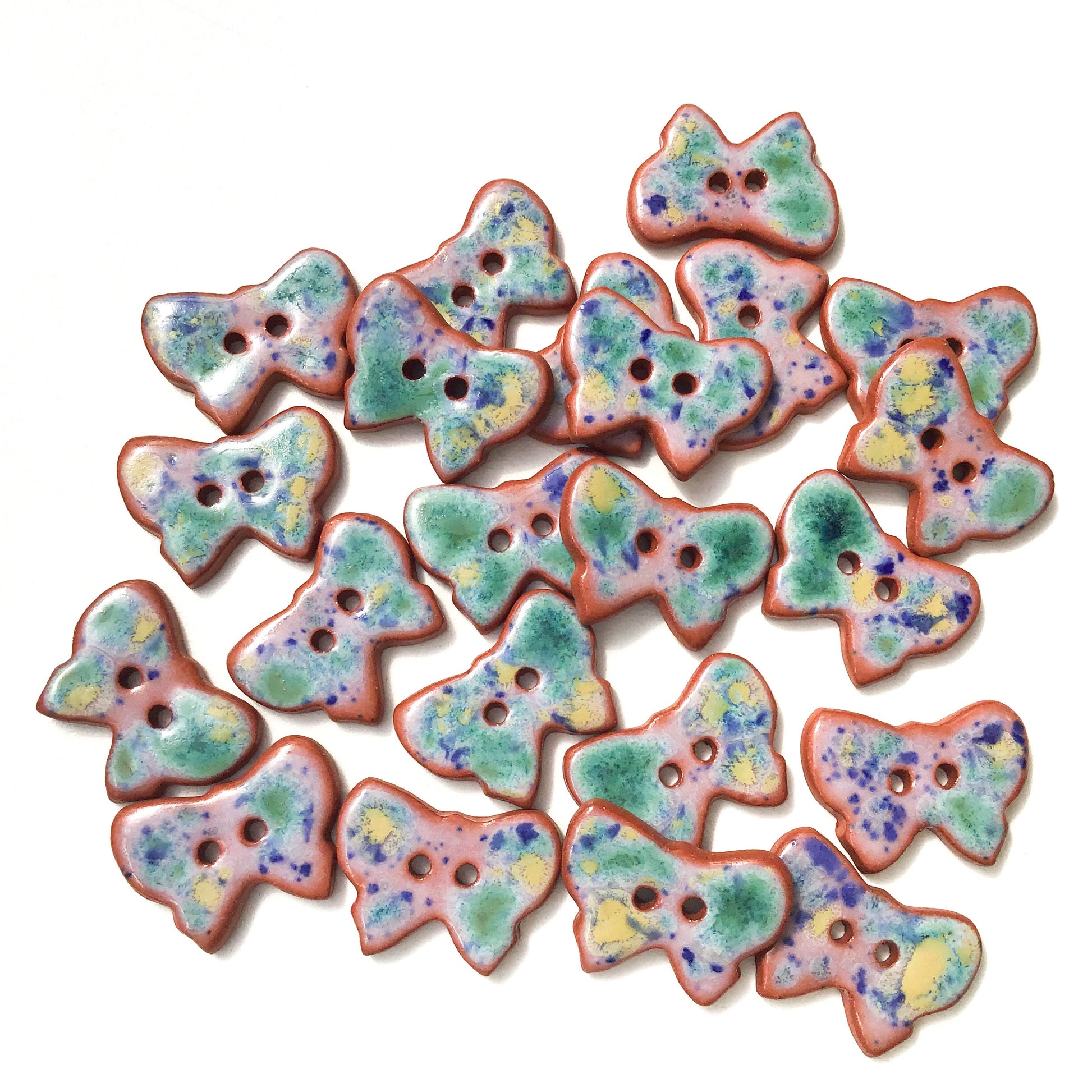 These little butterfly buttons are hand painted on a red clay body that produces a pretty halo. They'll add a darling touch to any project!