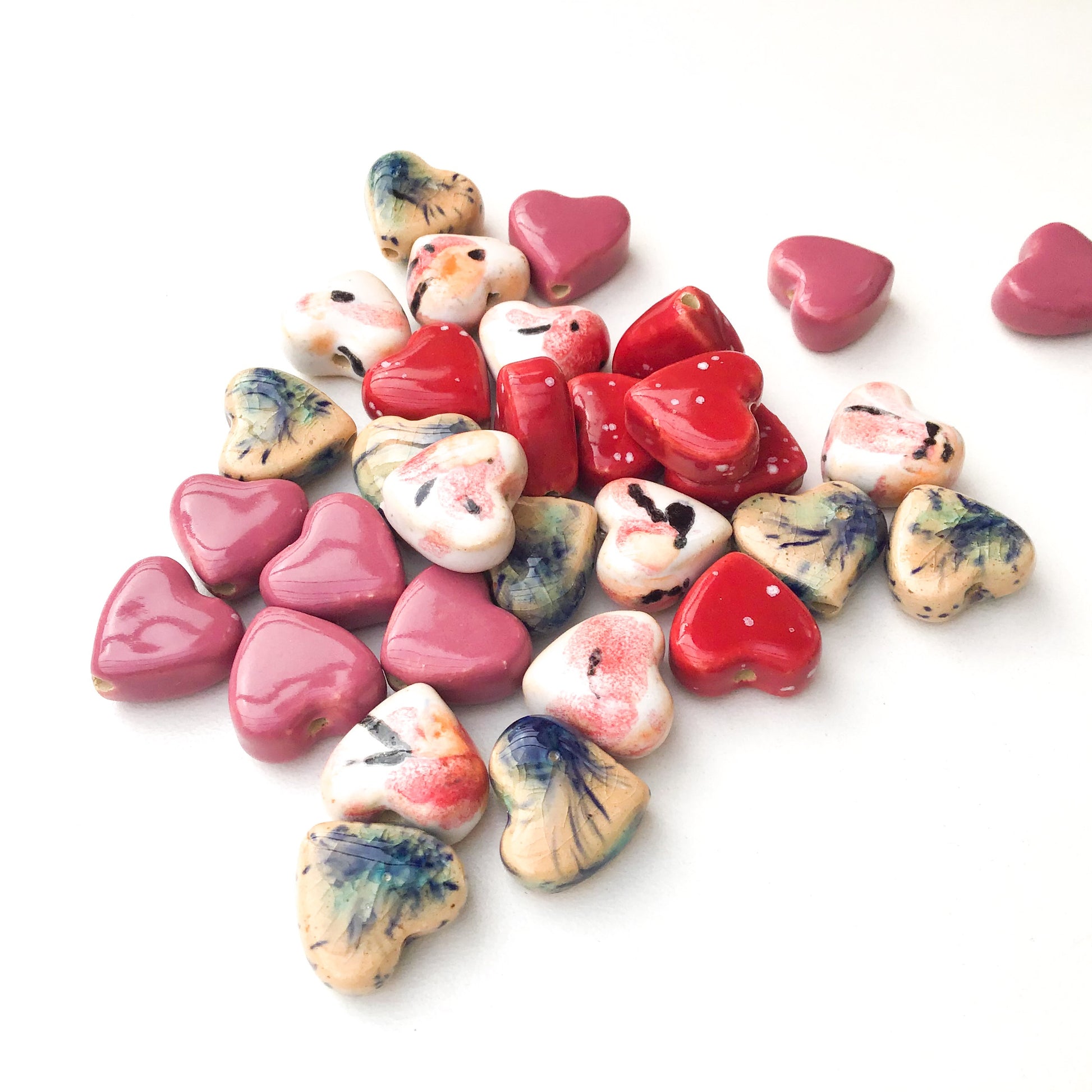 These colorful clay heart beads are glossy and bright. Combine the colors or purchase one color to add to your project.