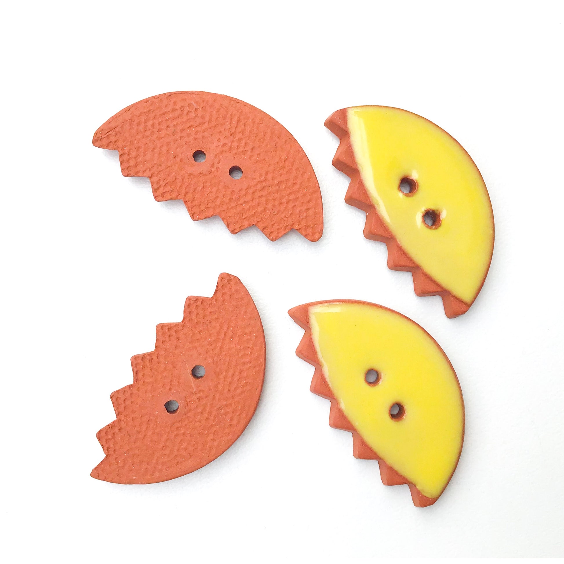 Each button and/or set is individually painted and one-of-a-kind. We sand all non-glazed edges for a smooth, snag-free surface.