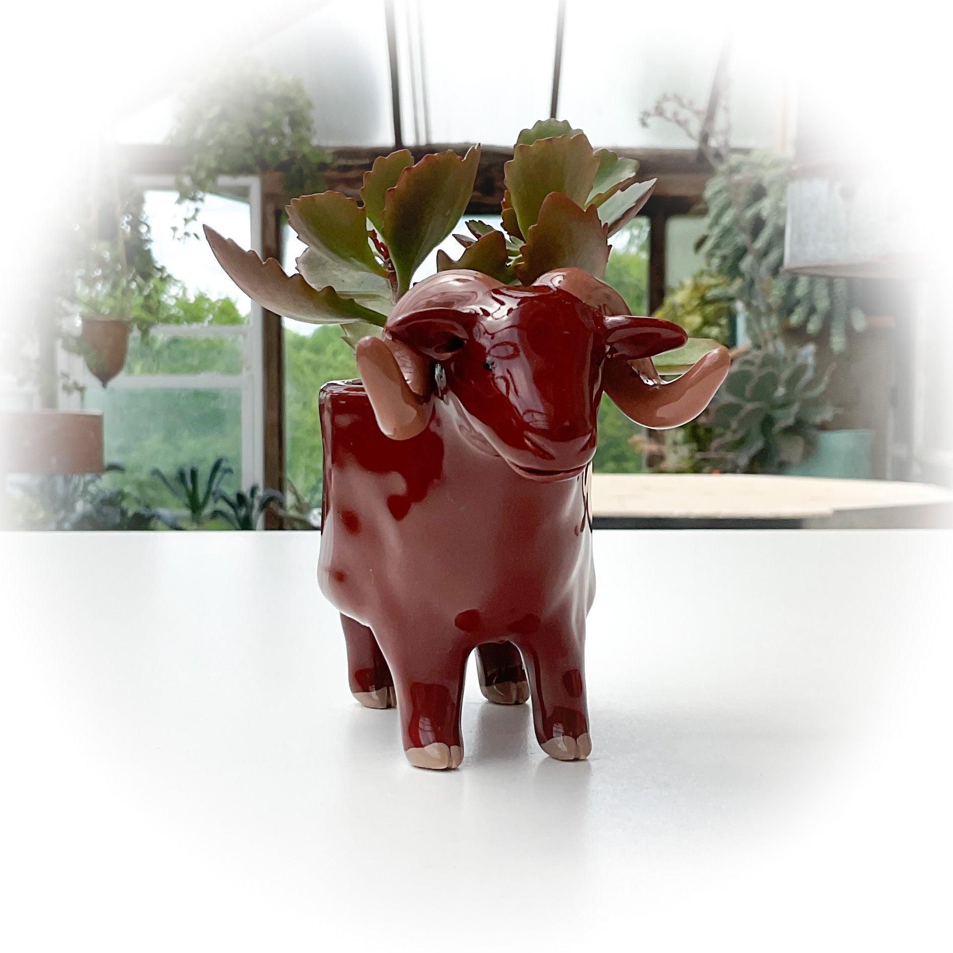 Chestnut Brown Sheep Pot - Ceramic Sheep Planter