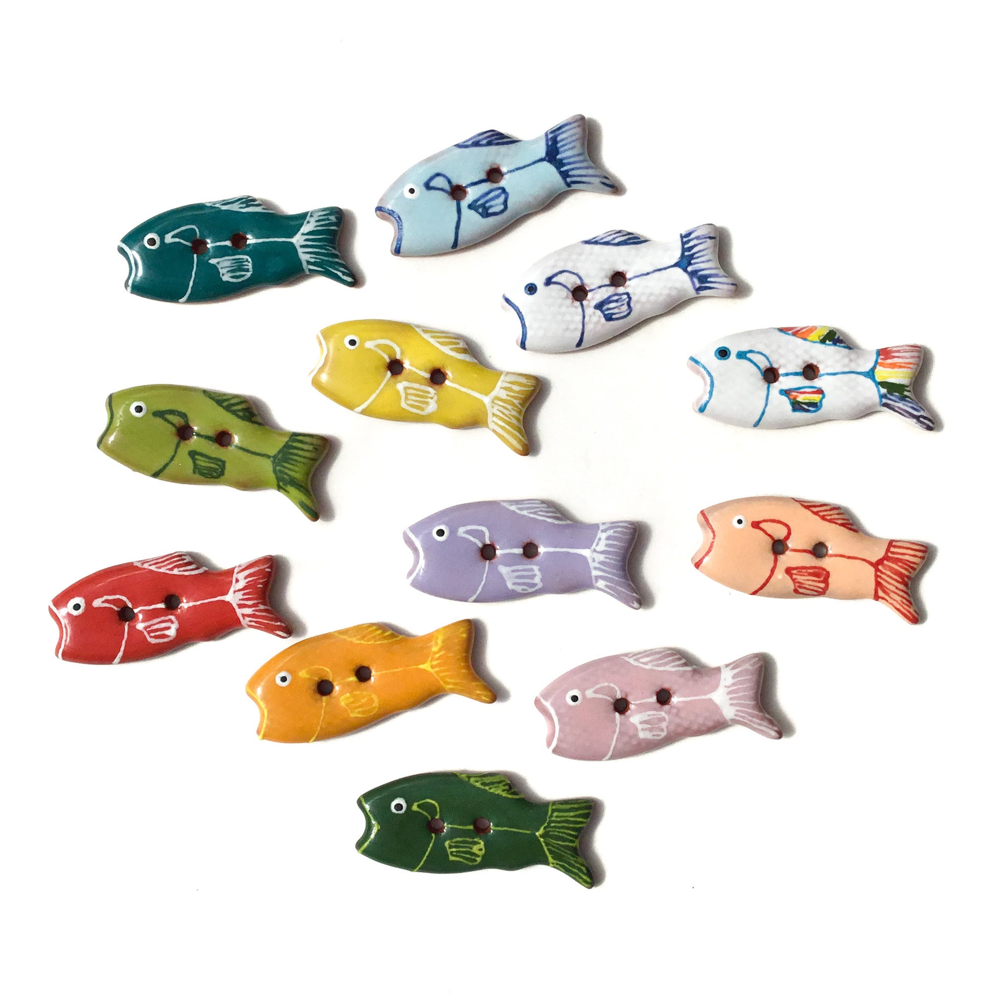 These ceramic fish buttons are colorful and fun. Mix and match for a unique fishy display!