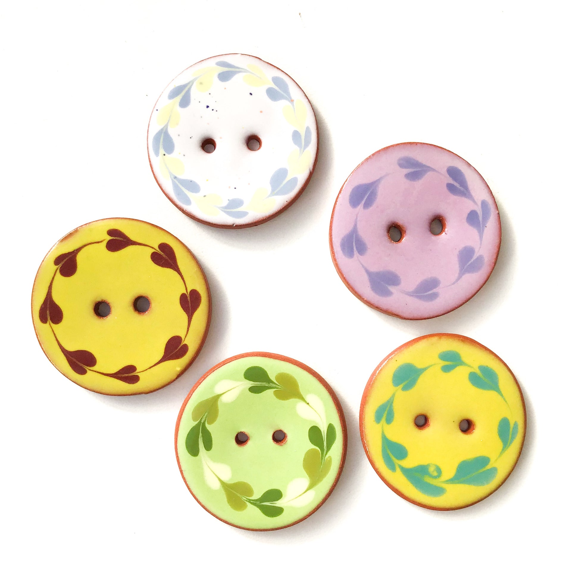 Each button and/or set is individually painted and one-of-a-kind. We sand all non-glazed edges for a smooth, snag-free surface.