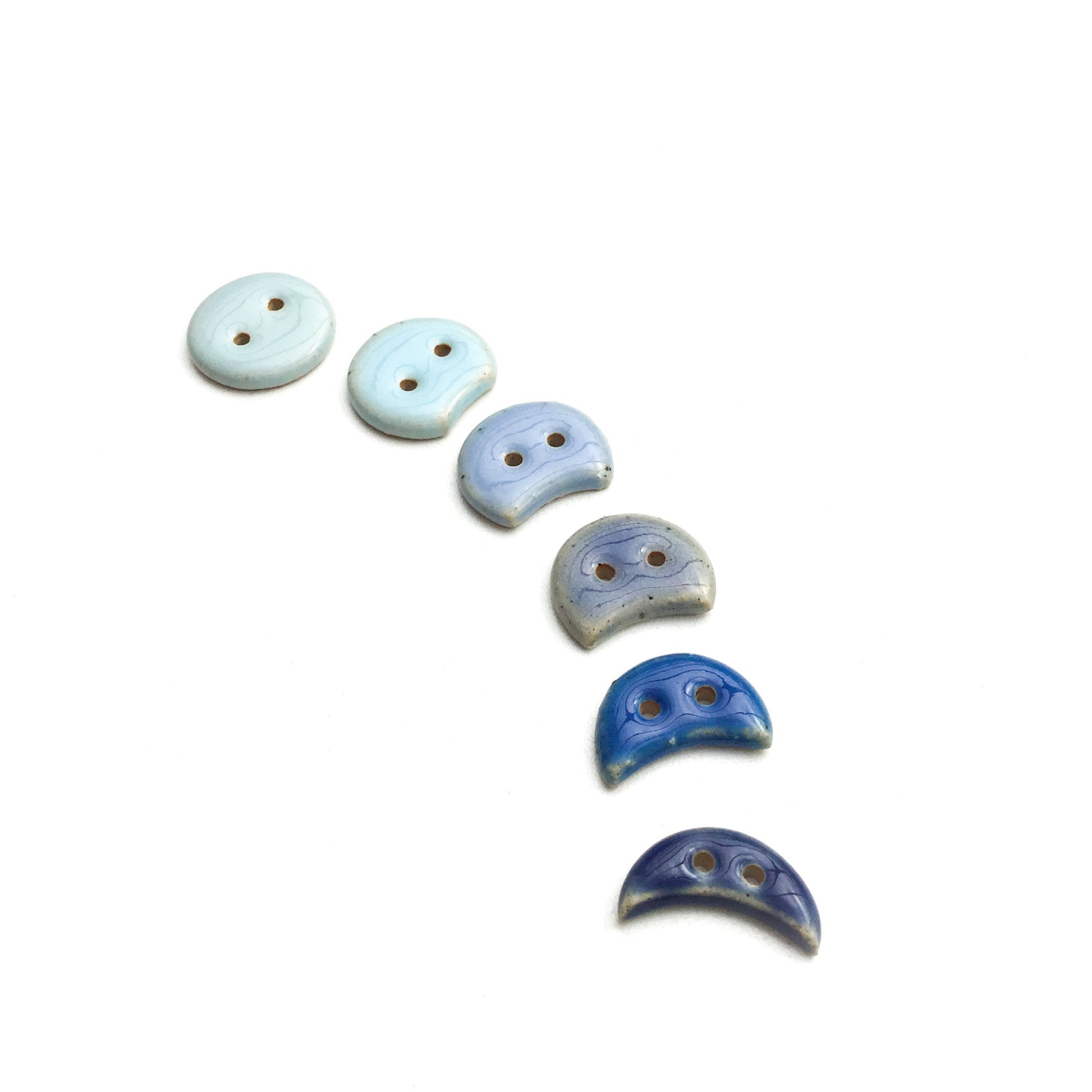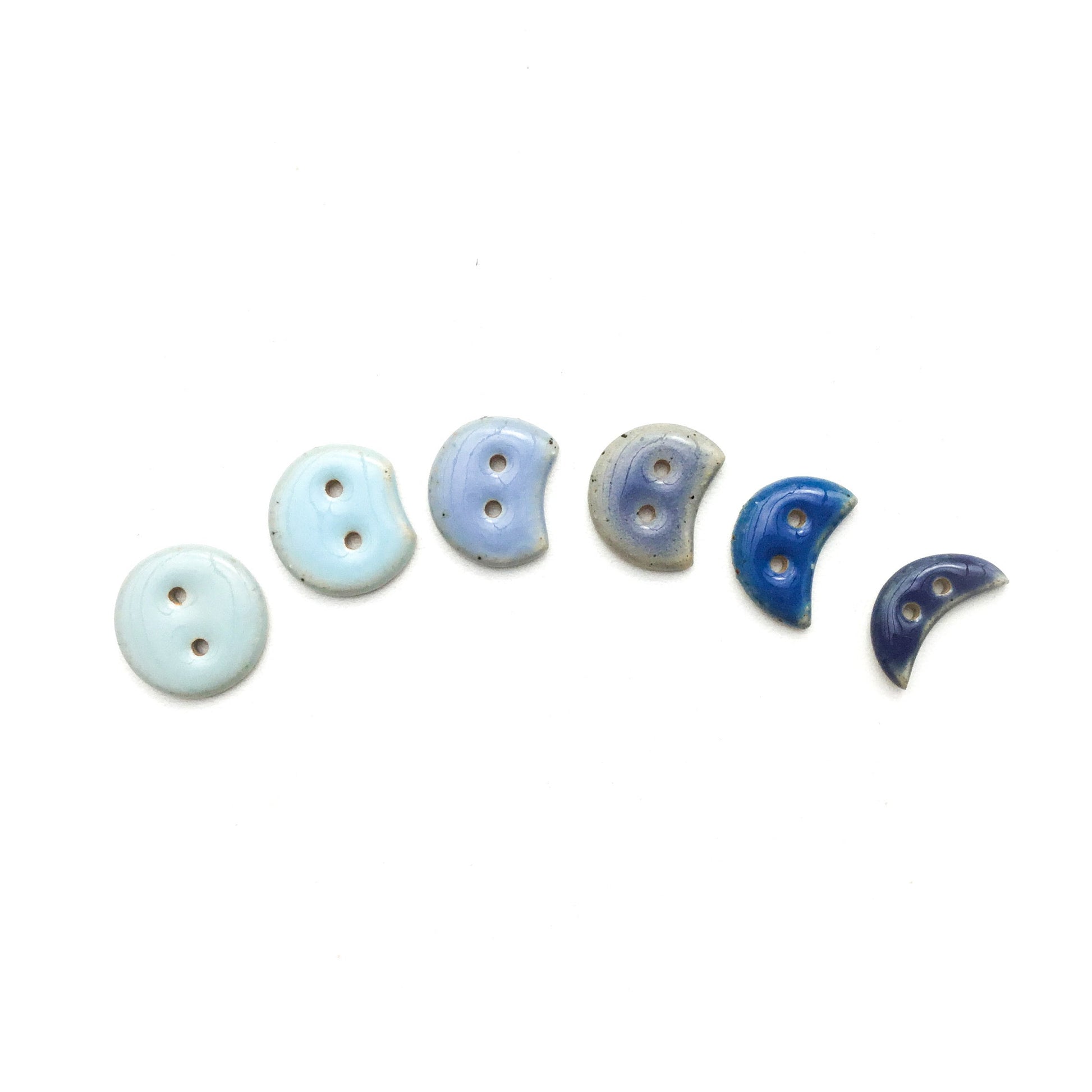 This unique set of moon phase buttons shows off beautiful shades of blue on stoneware clay.
