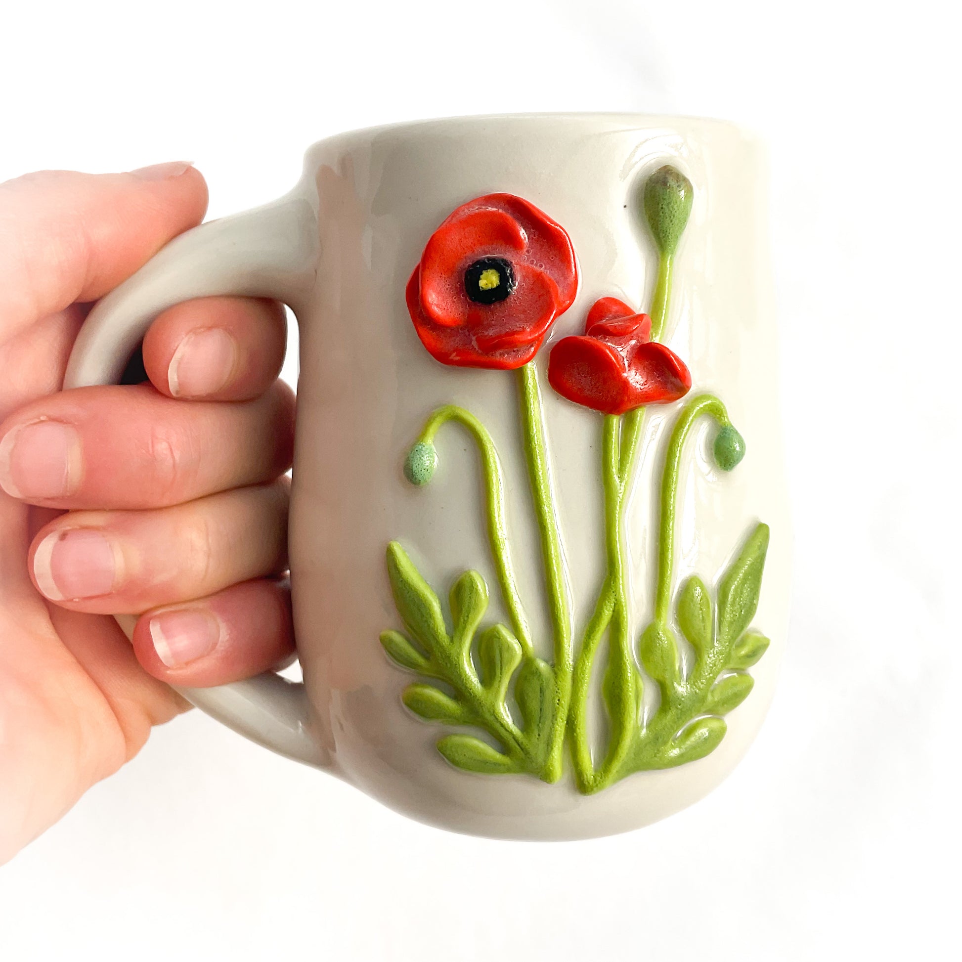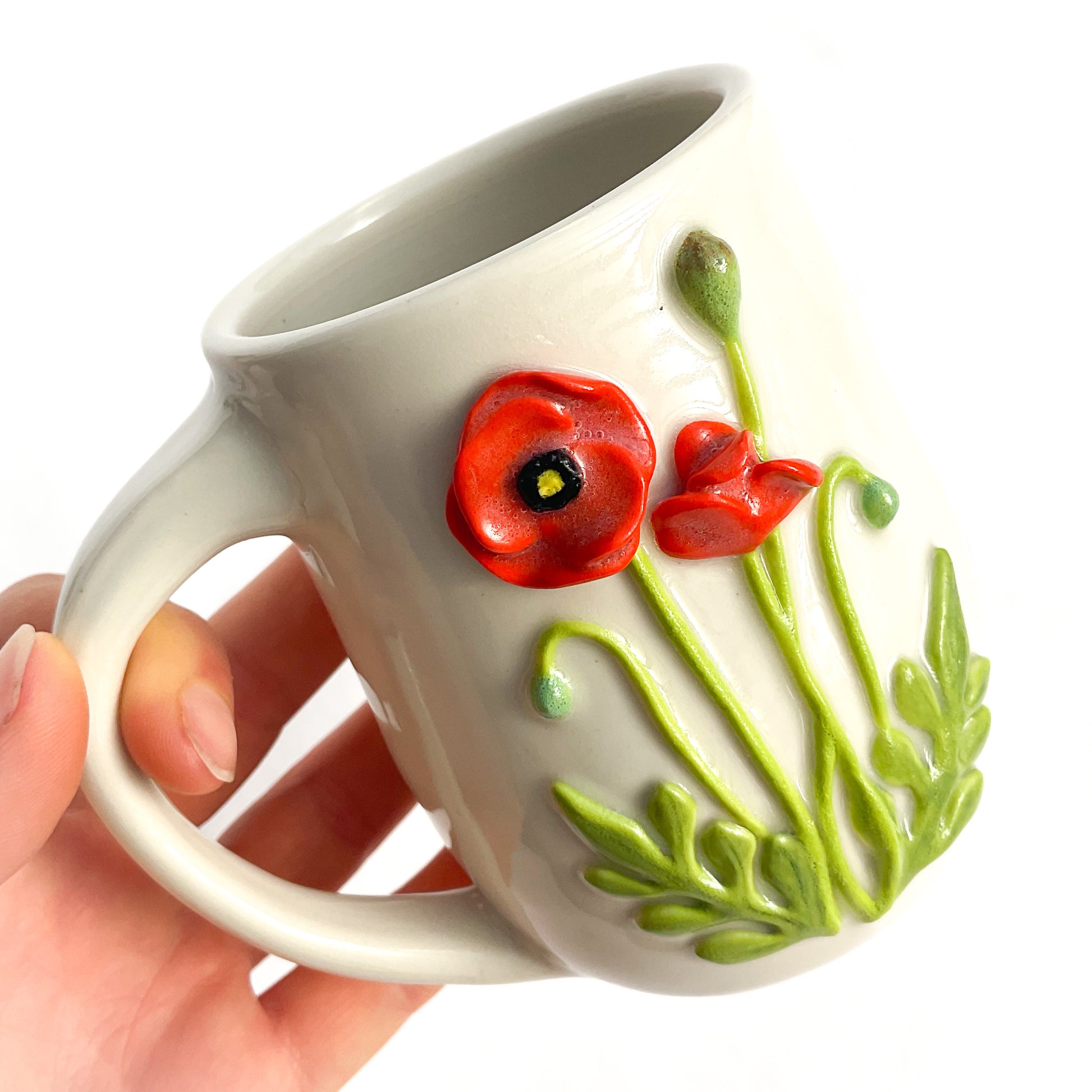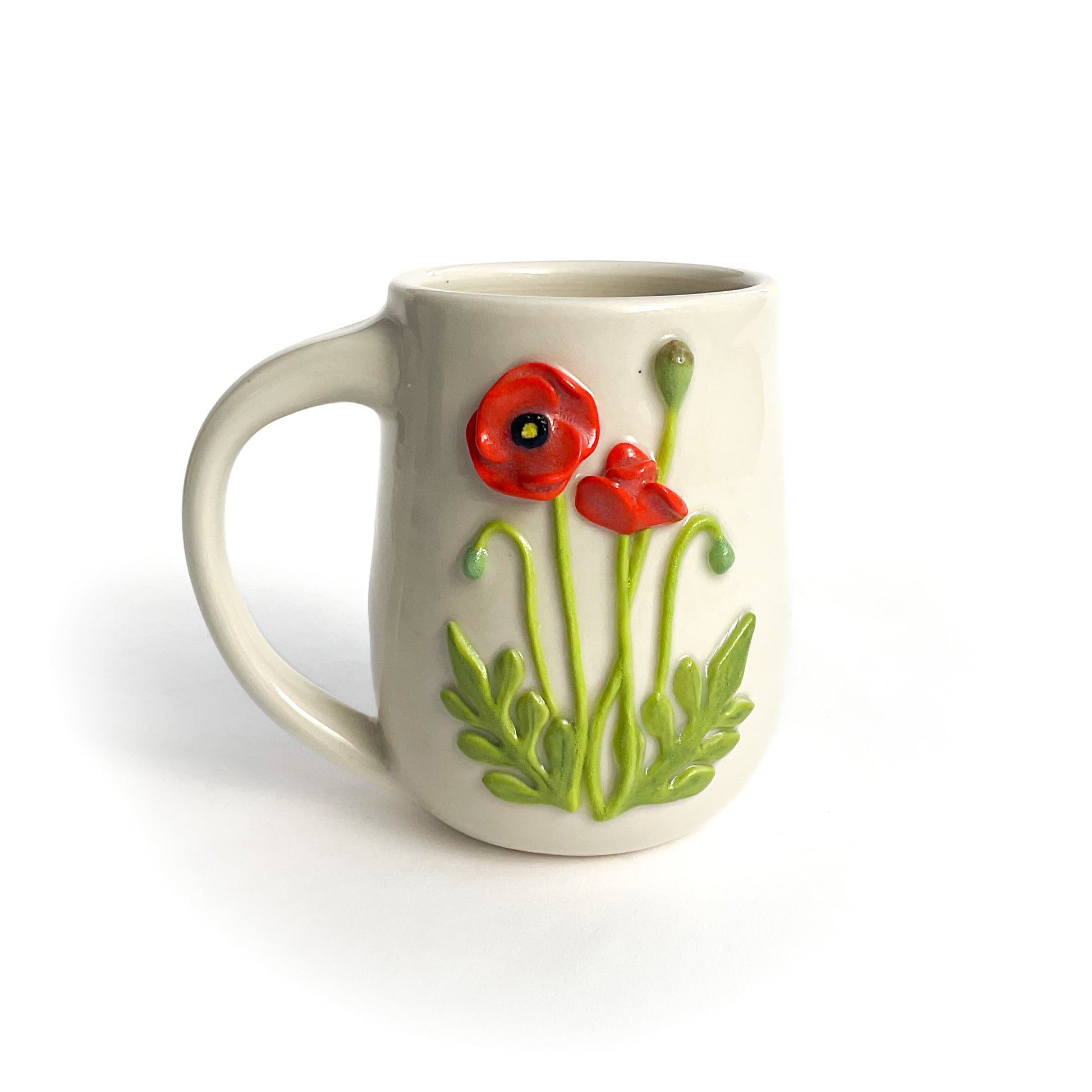 Poppy Hand Sculpted Porcelain Mug 10 oz