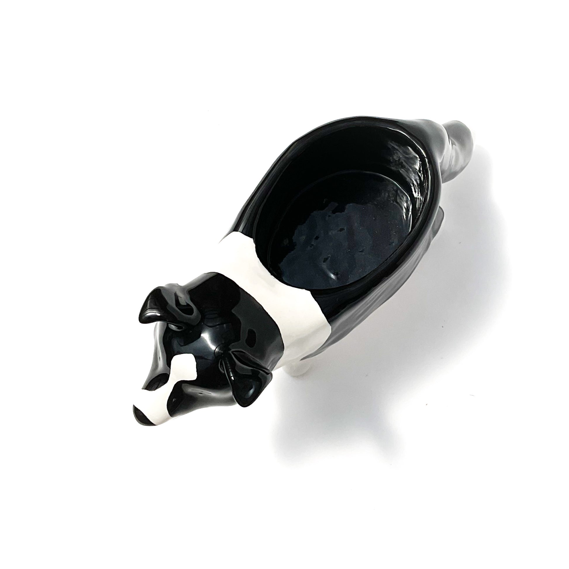 A ceramic Border Collie dog planter to pot up your favorite plant. This dog pot would also make a sweet candy or keepsake bowl.