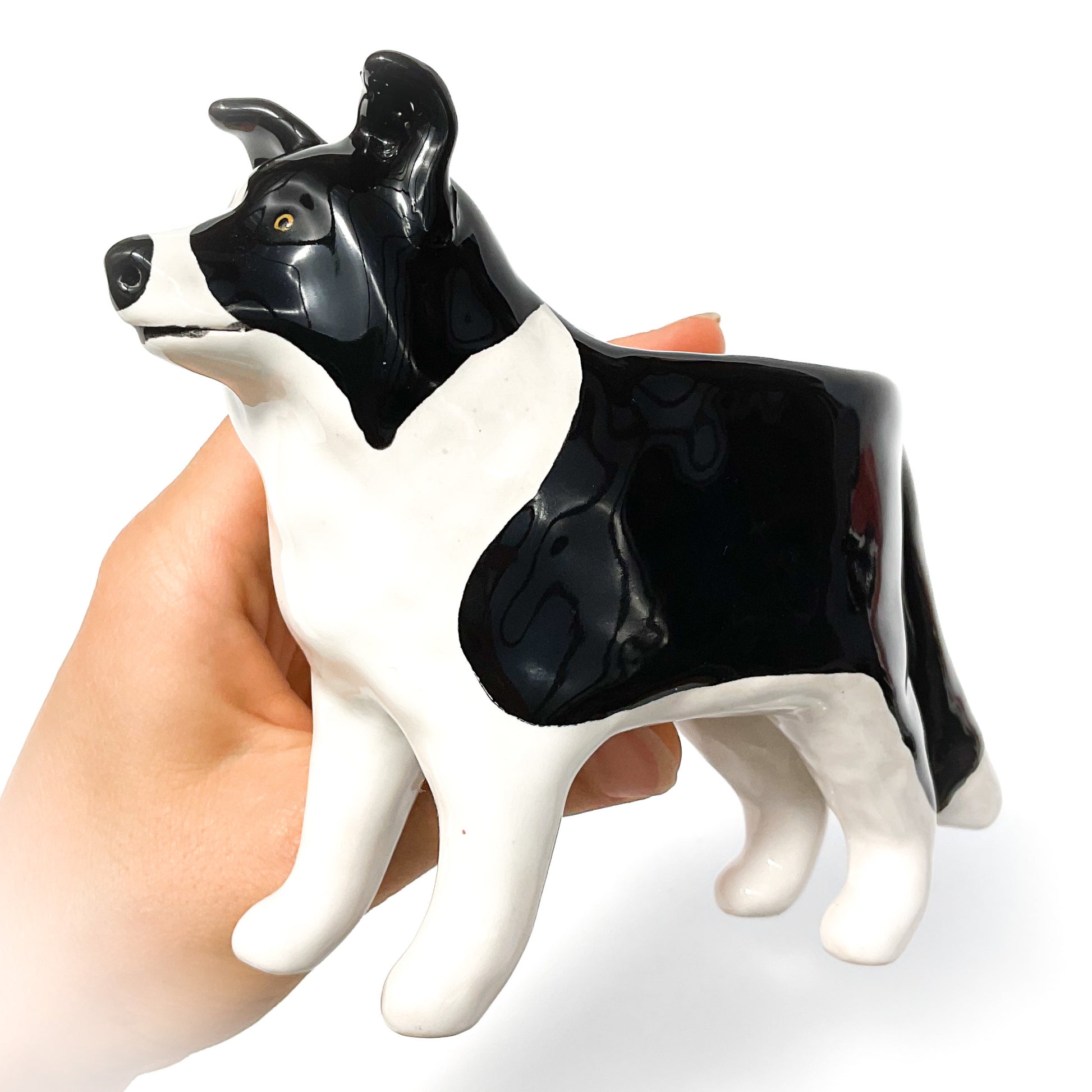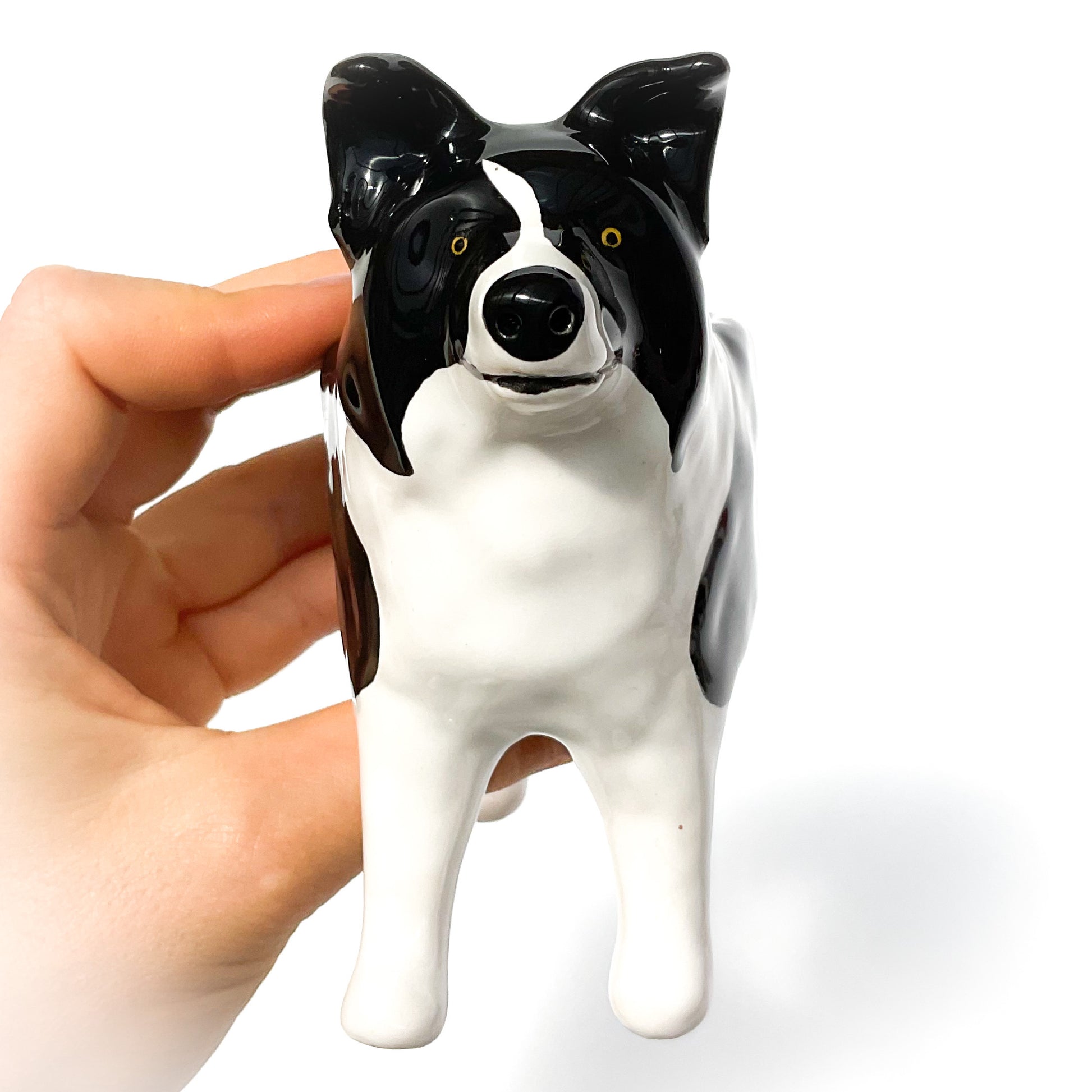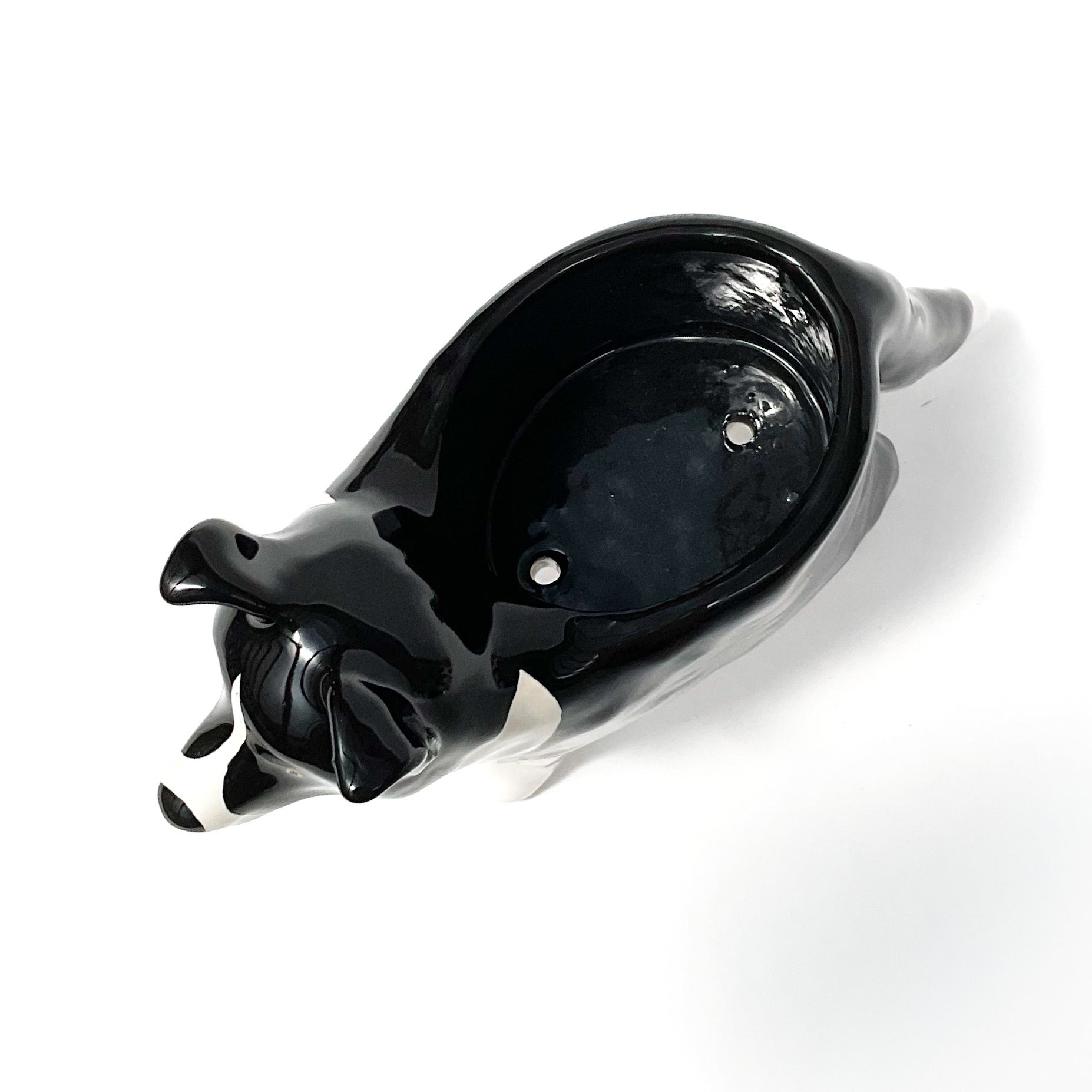 A ceramic Border Collie dog planter to pot up your favorite plant. This dog pot would also make a sweet candy or keepsake bowl.