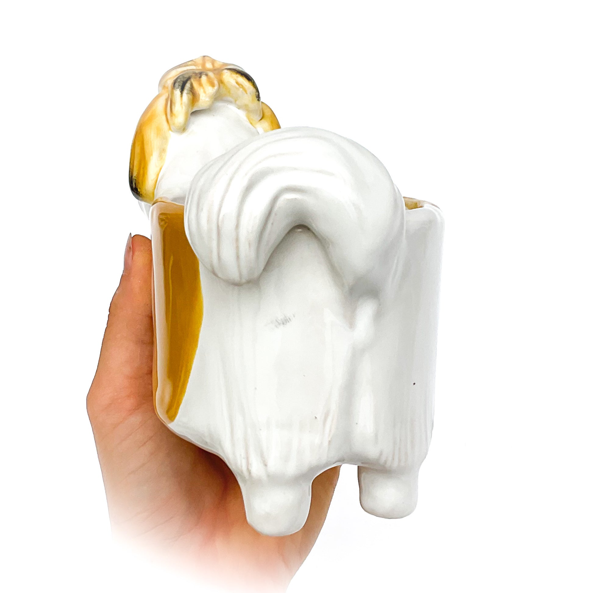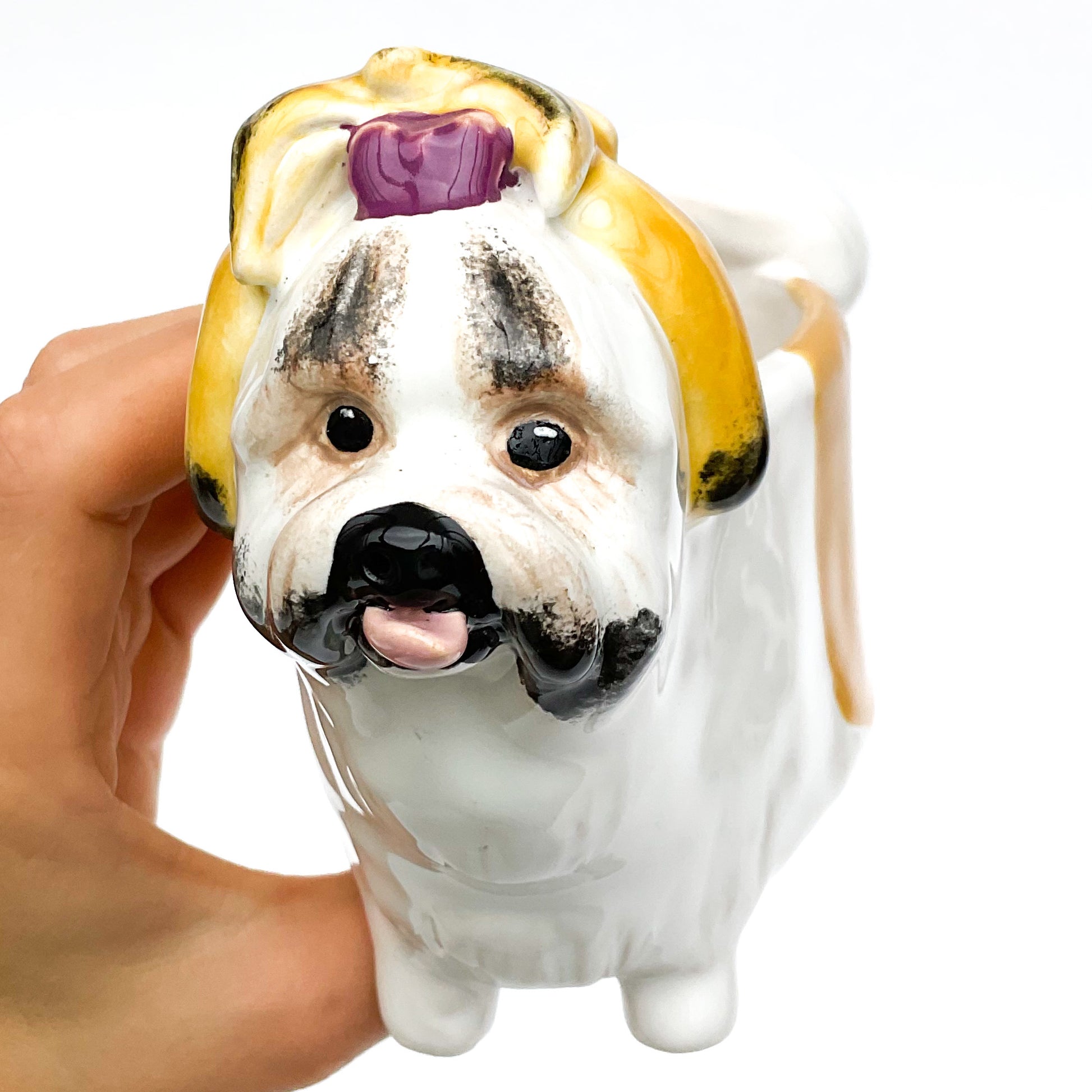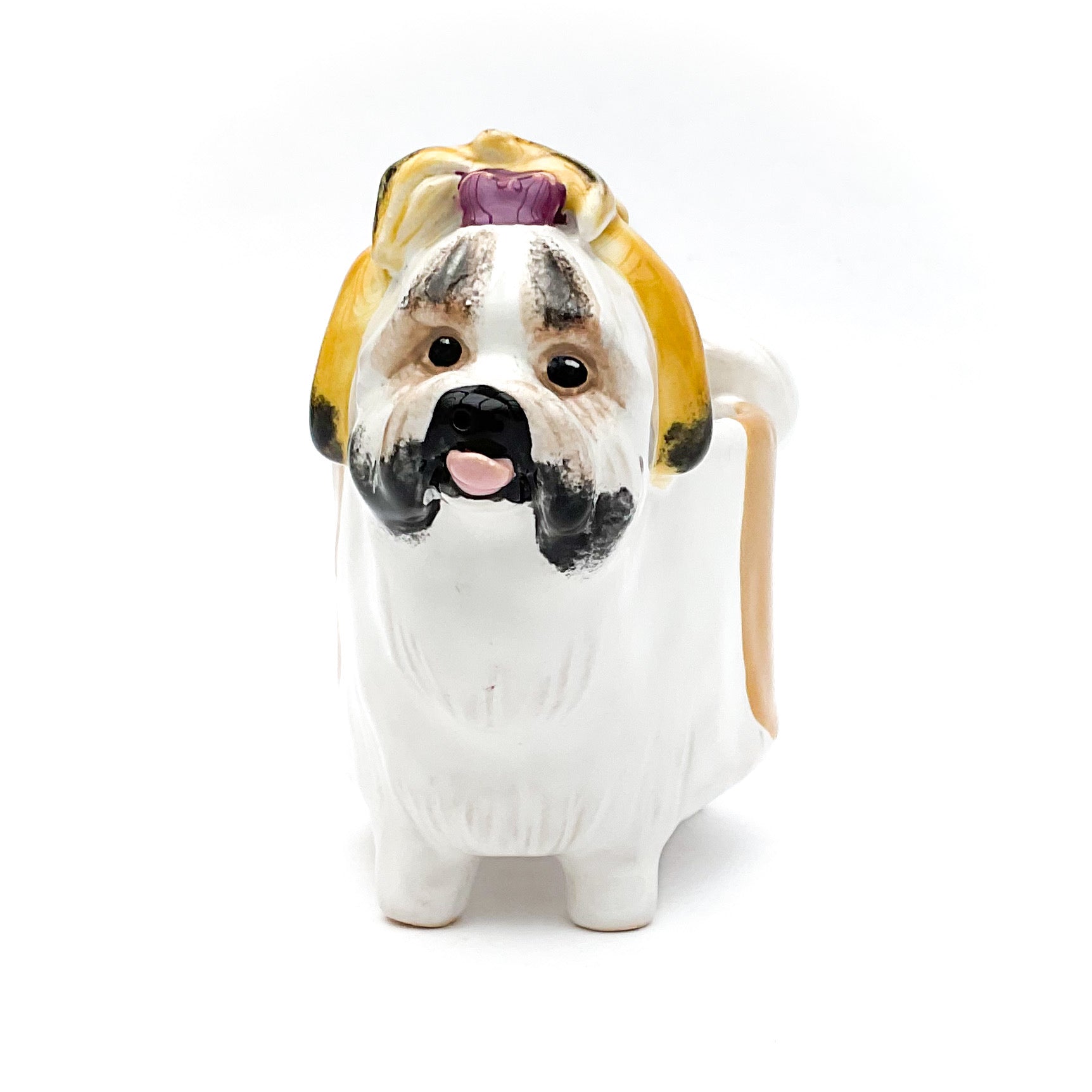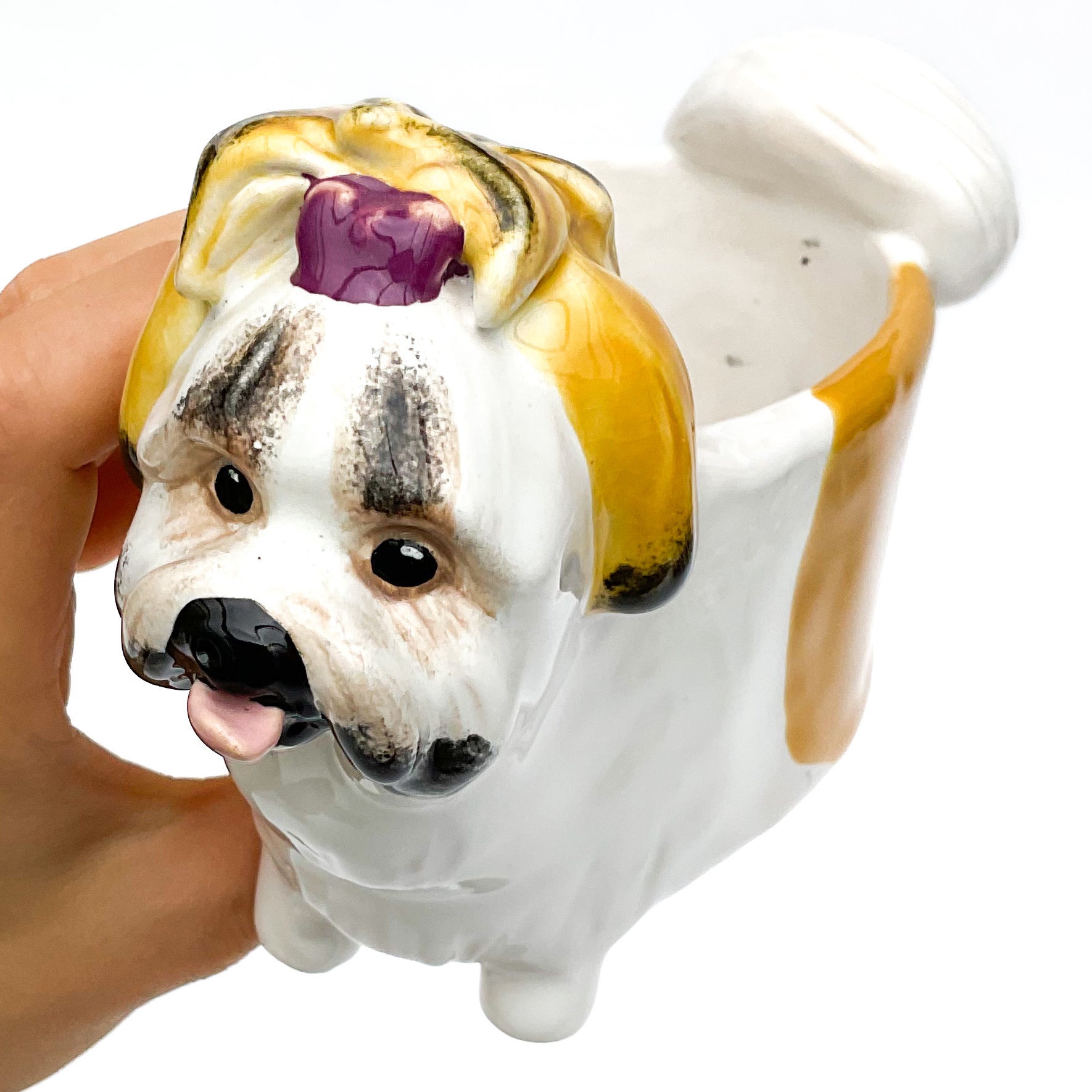 A ceramic Shih Tzu dog planter to pot up your favorite plant. This dog pot would also make a sweet candy or keepsake bowl.
