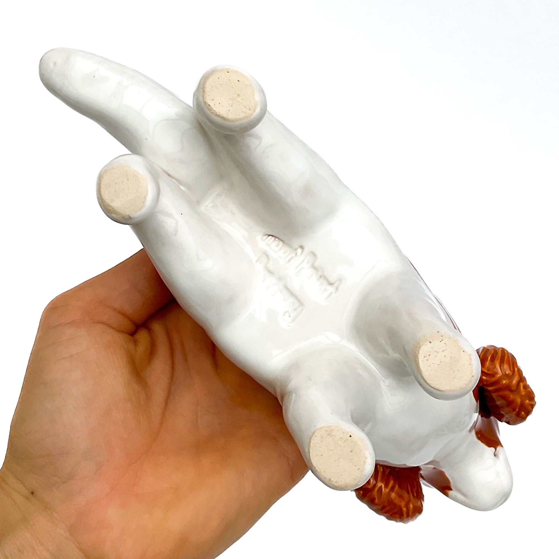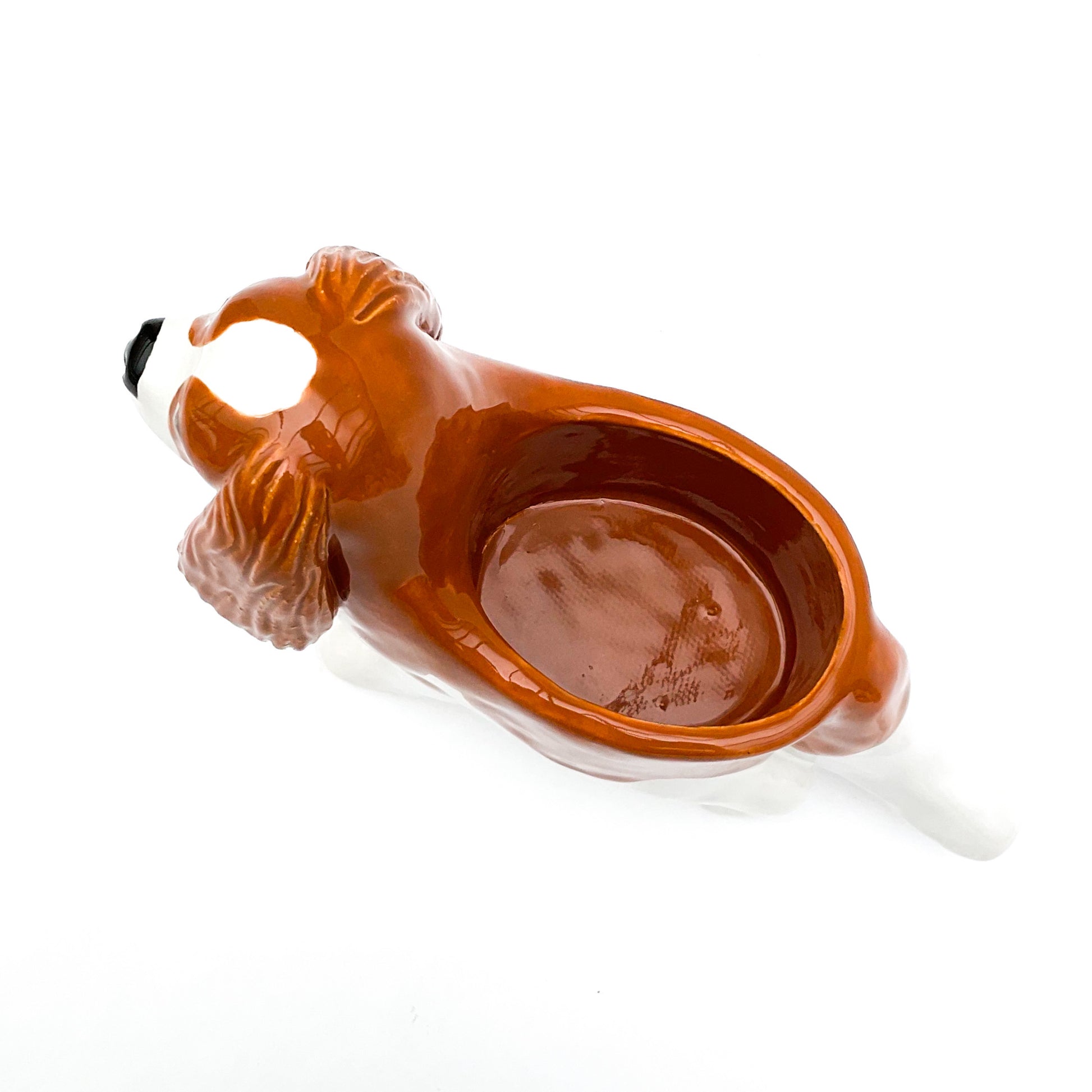 A ceramic Cavalier King Charles Spaniel dog planter to pot up your favorite plant. This dog pot would also make a sweet candy or keepsake bowl.