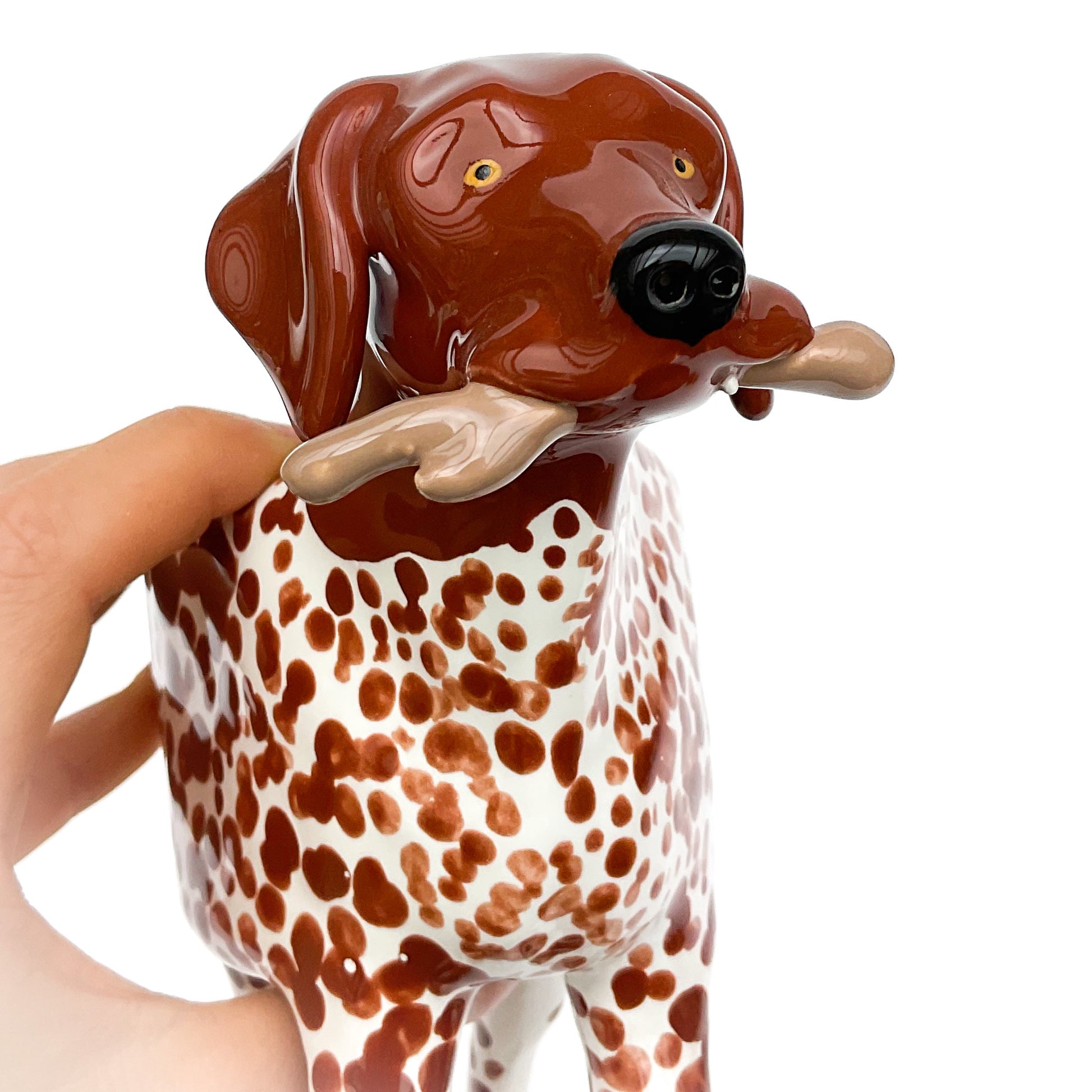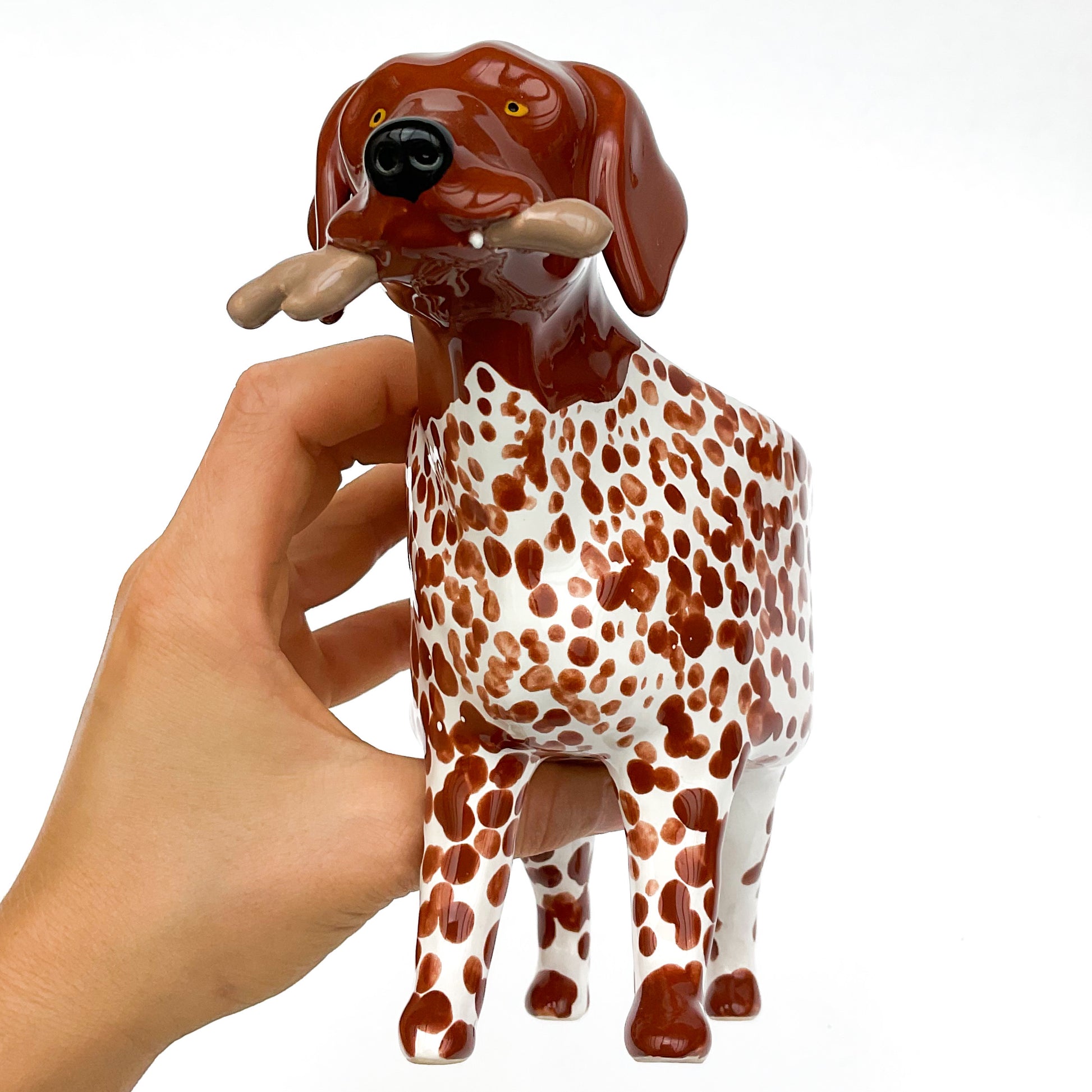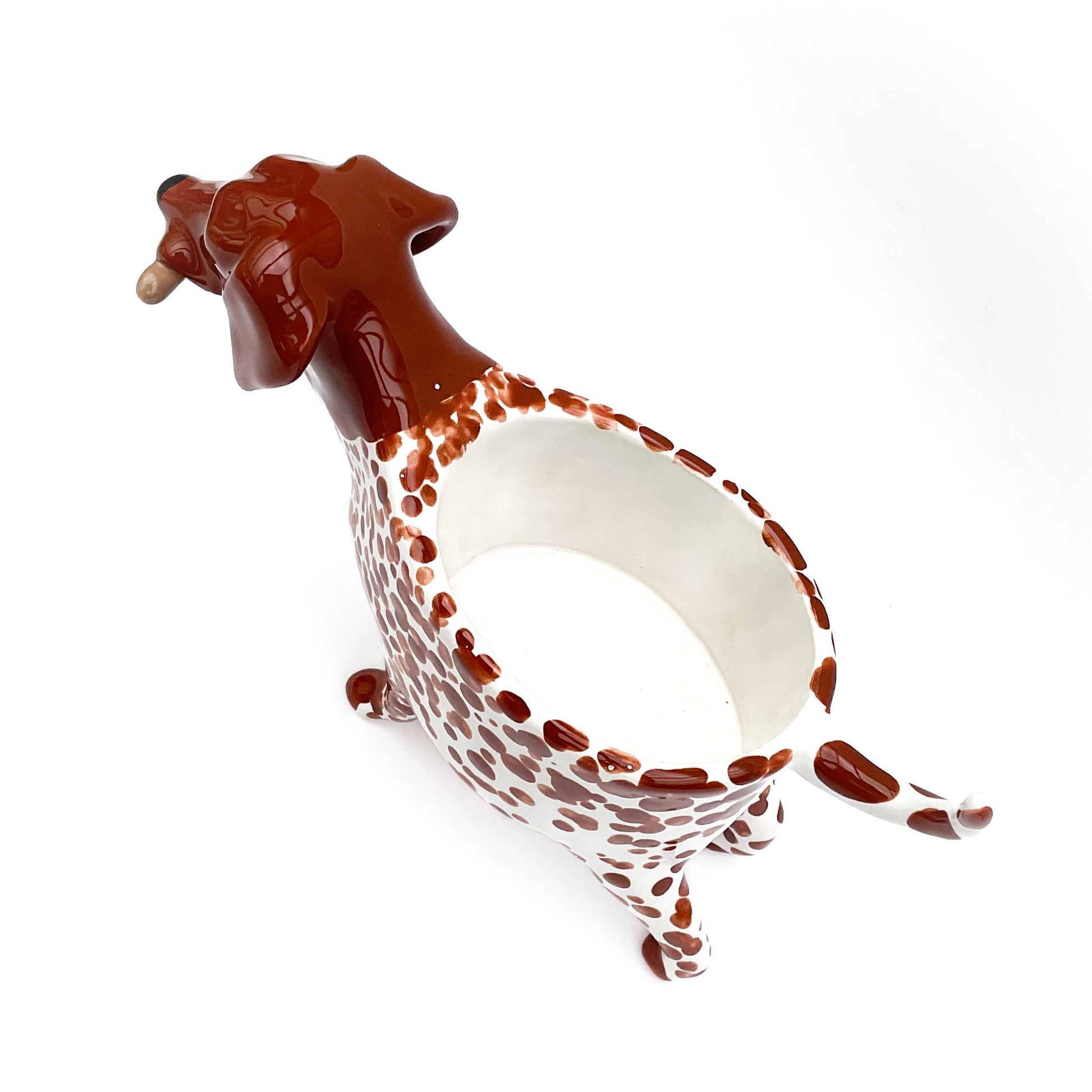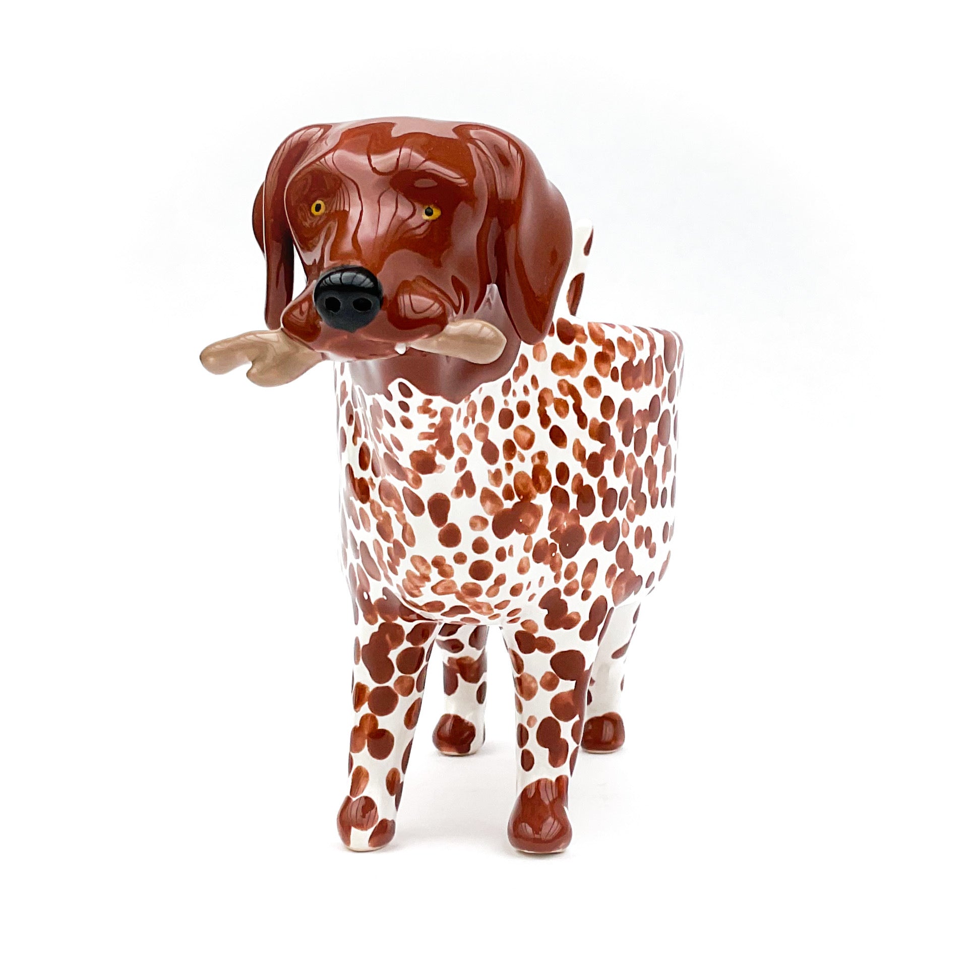 A little ceramic German Shorthair Pointer planter to pot up your favorite succulent.