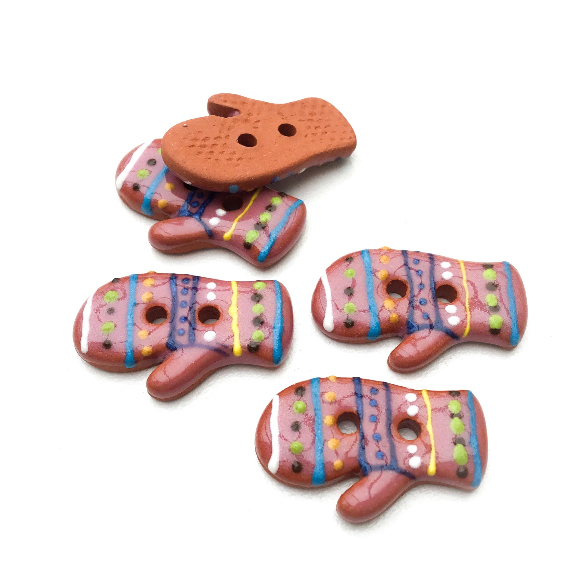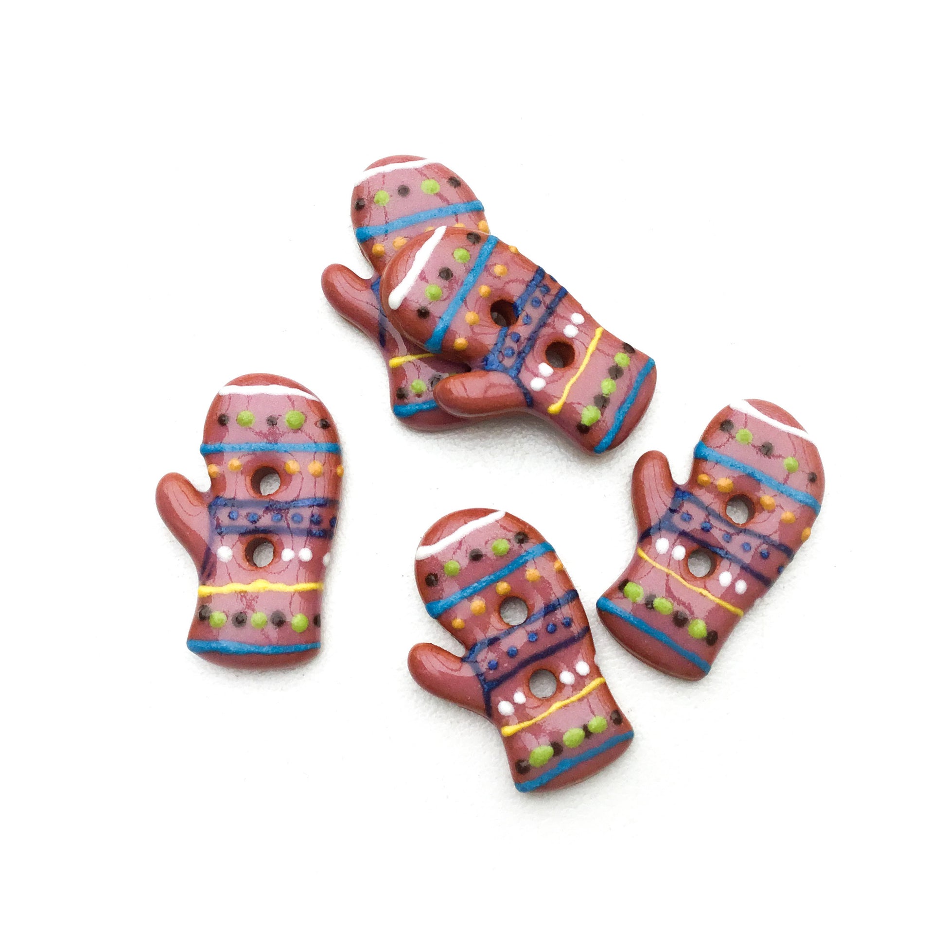 These little ceramic mitten buttons are so much fun! Individually hand painted, each one is unique and will add a wonderful touch to any project!