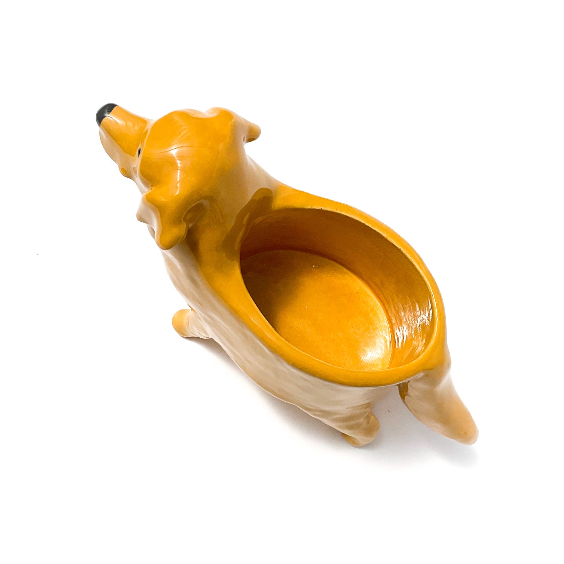 A ceramic Golden Retriever dog planter to pot up your favorite plant. This dog pot would also make a sweet candy or keepsake bowl.