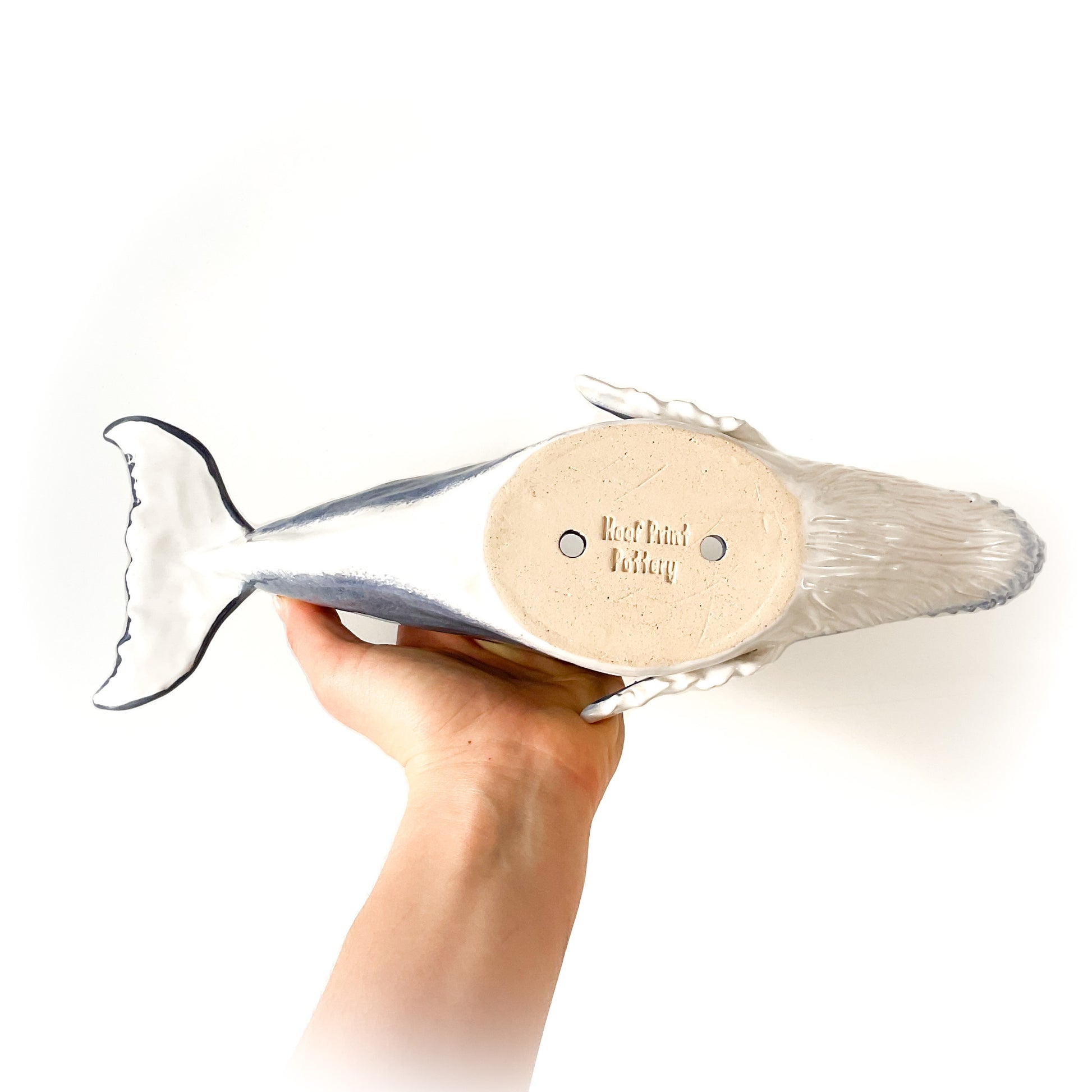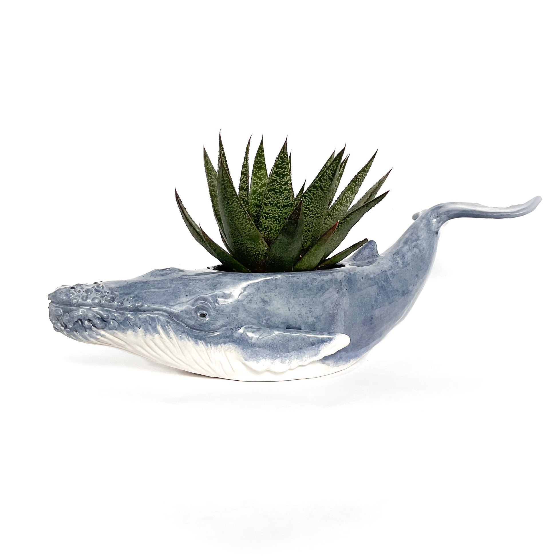 A beautiful humpback whale planter to pot up your favorite plant, use as a candy dish, or candleholder.