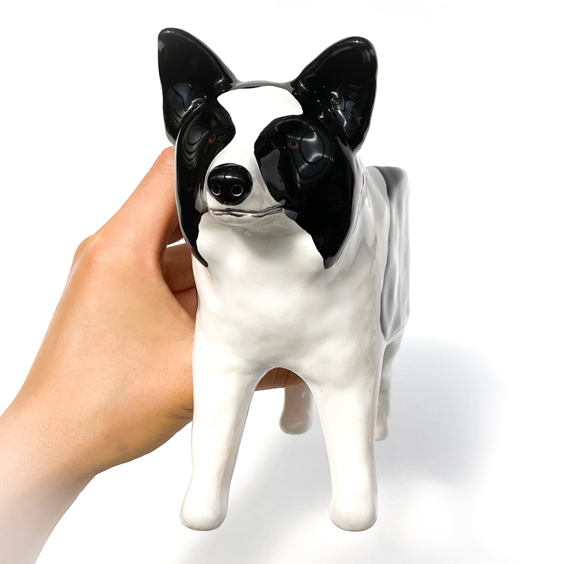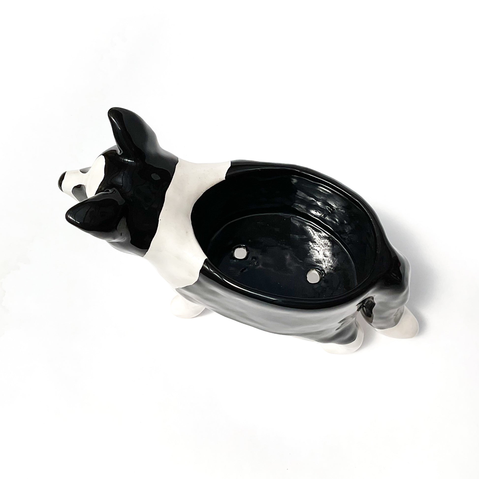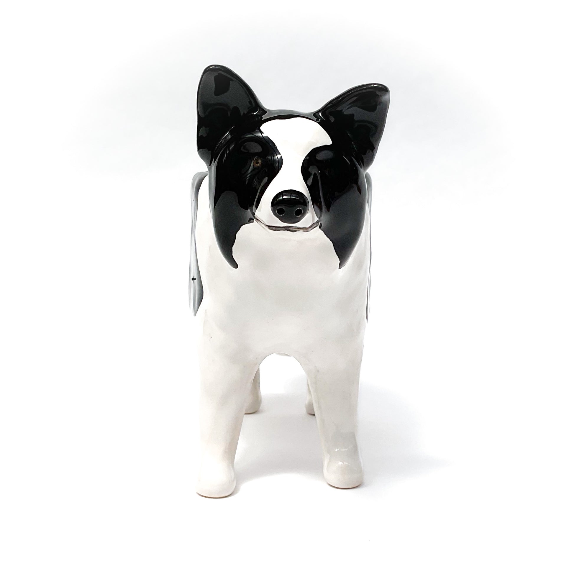 A ceramic Border Collie dog planter to pot up your favorite plant. This dog pot would also make a sweet candy or keepsake bowl.