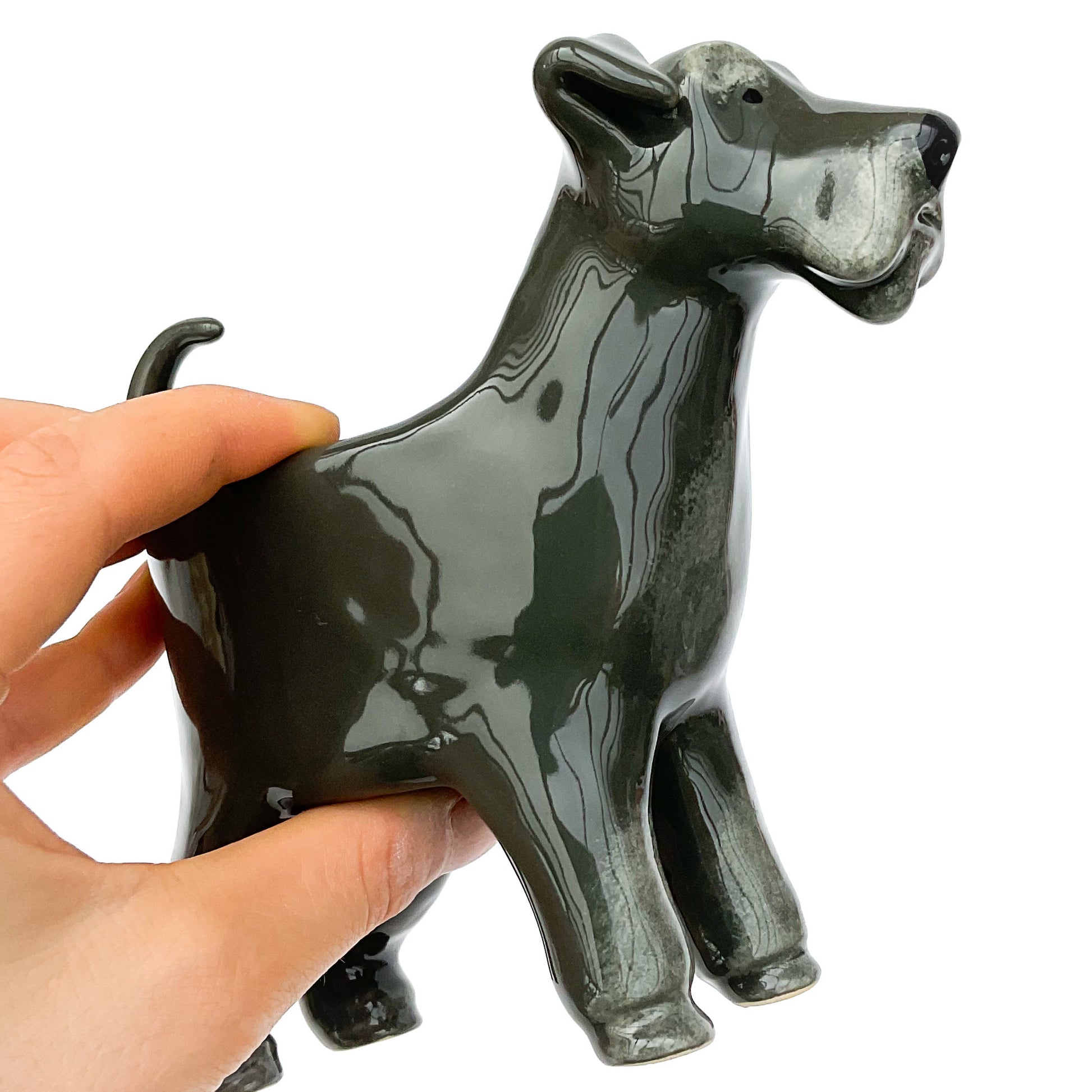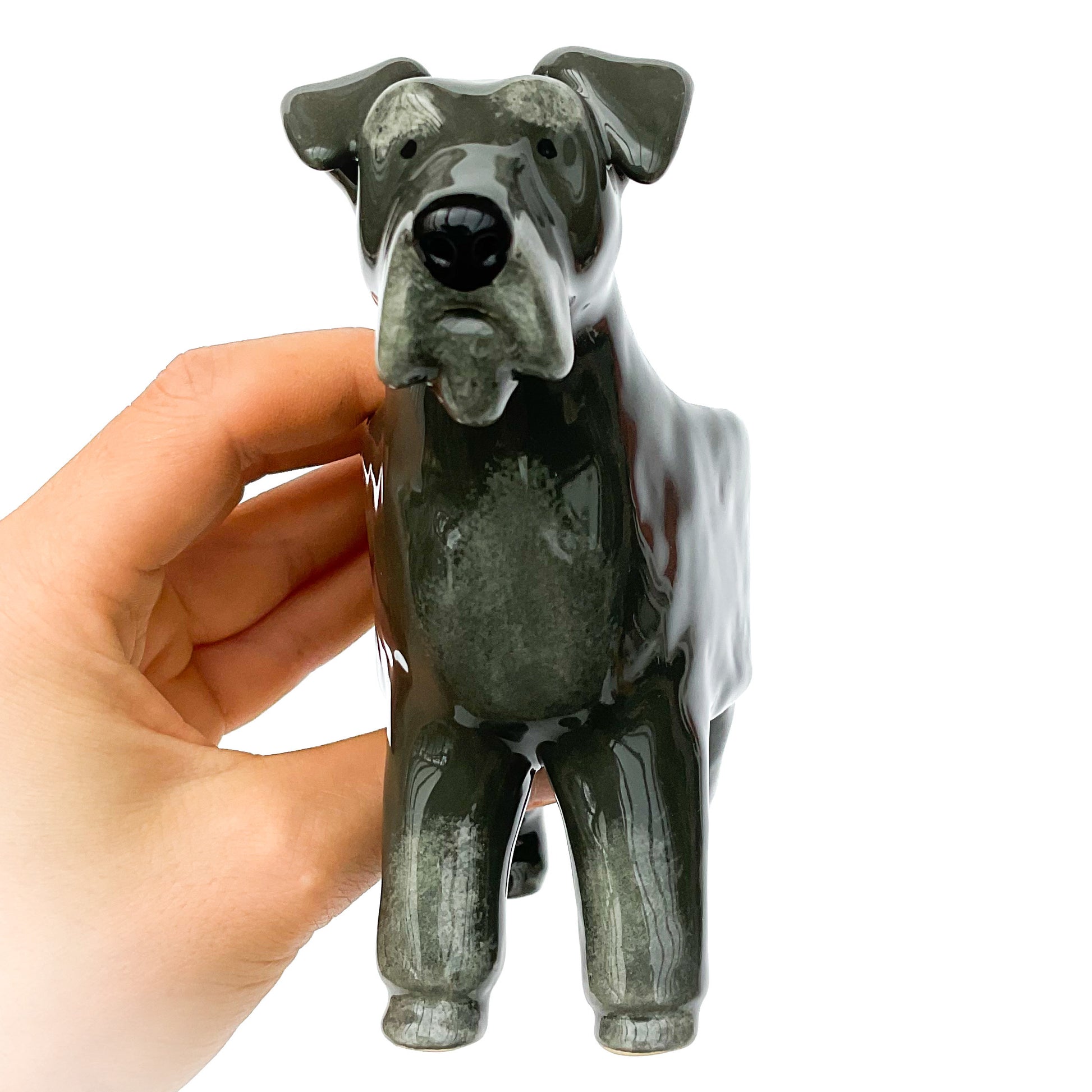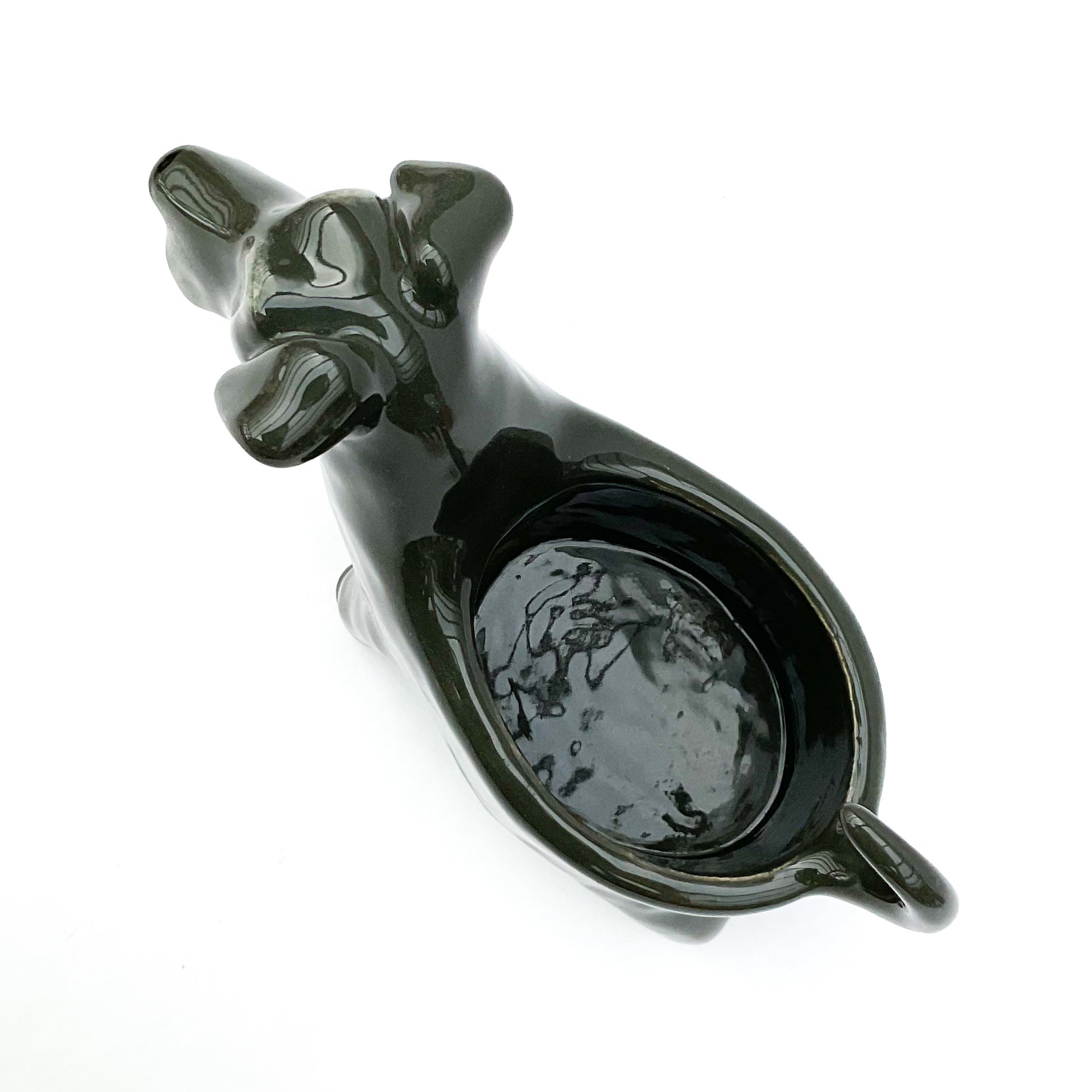 A ceramic Miniature Schnauzer dog planter to pot up your favorite plant. This dog pot would also make a sweet candy or keepsake bowl.