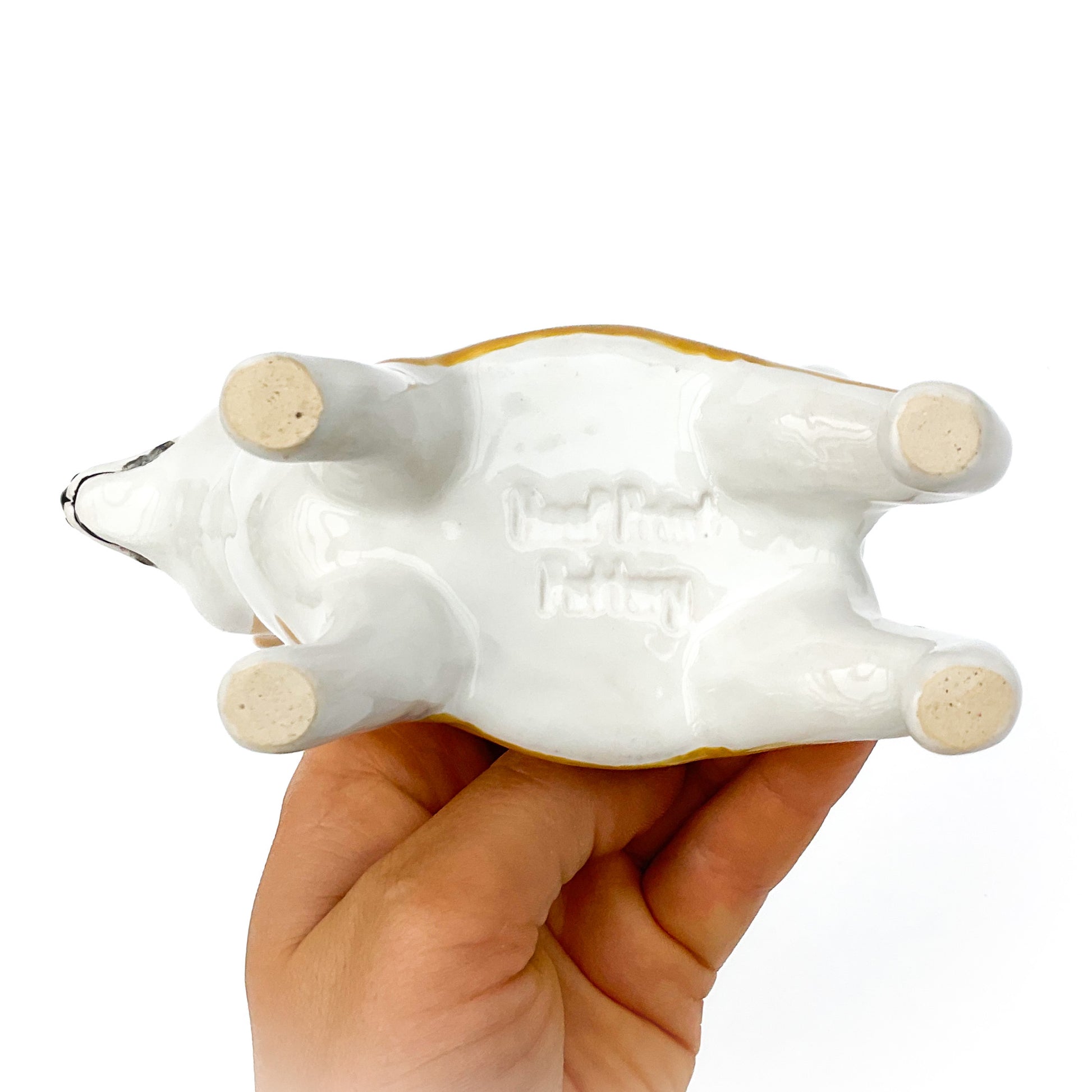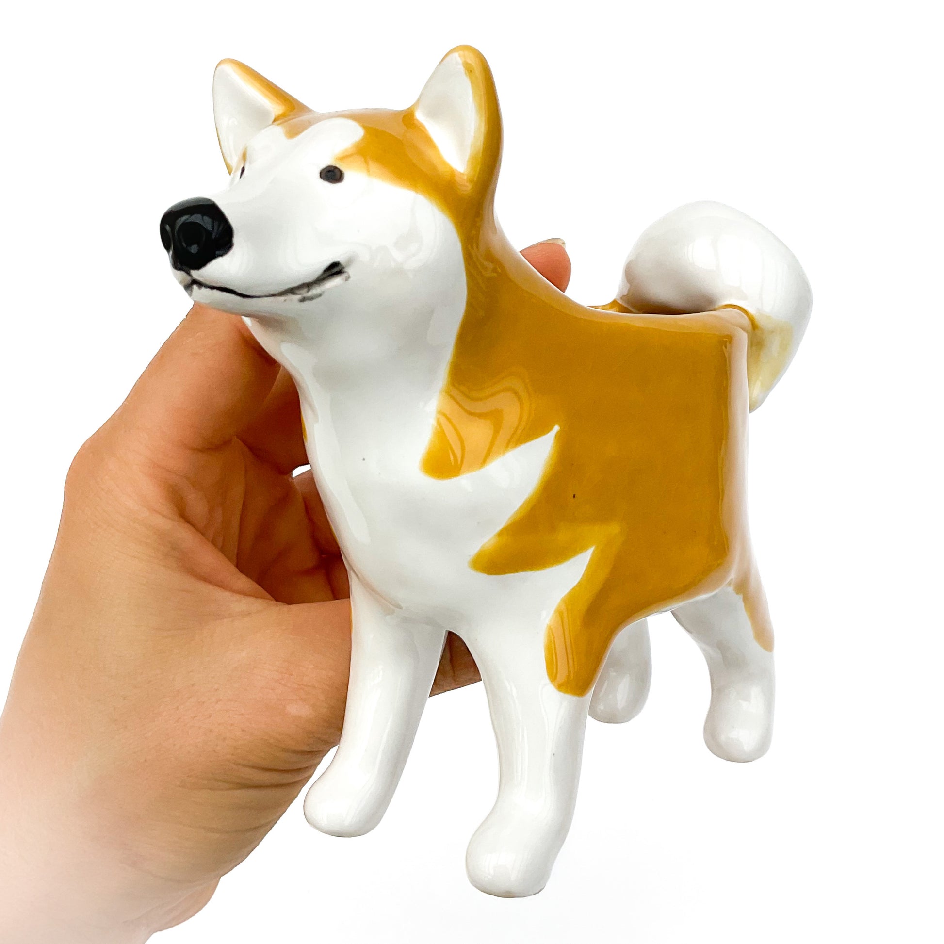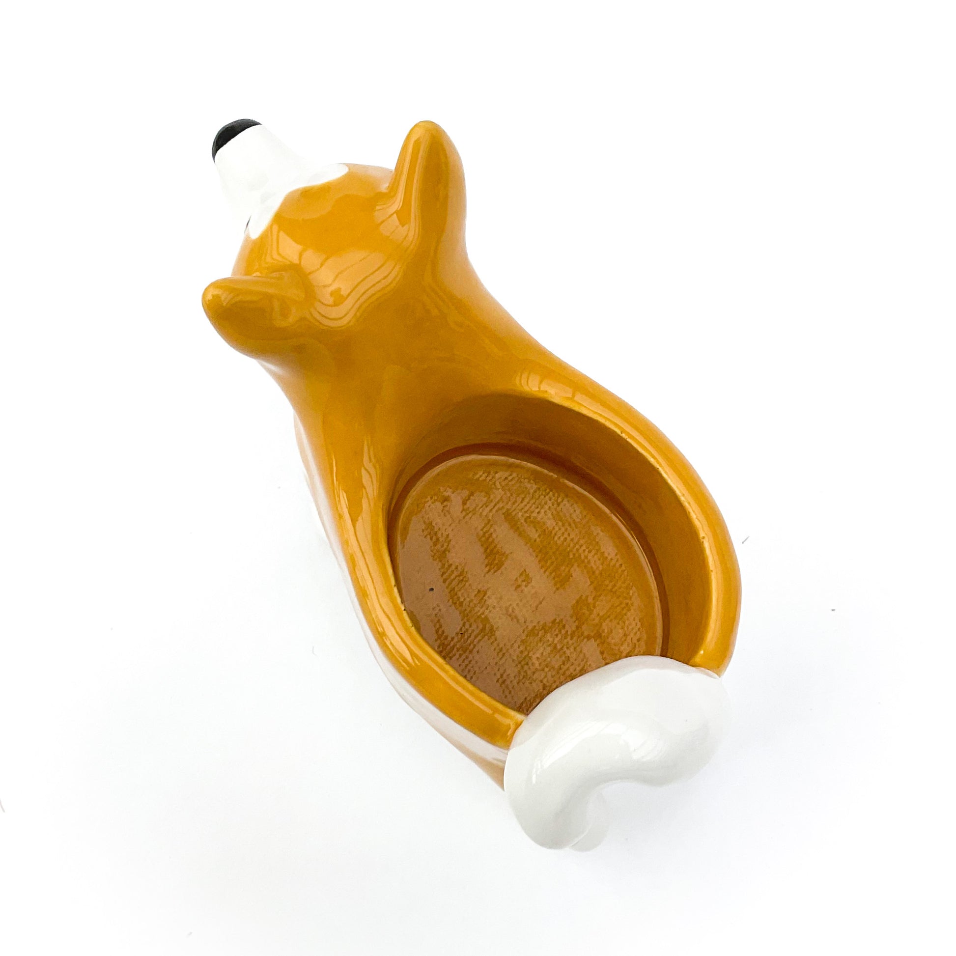 A ceramic Shiba Inu dog planter to pot up your favorite plant. This dog pot would also make a sweet candy or keepsake bowl.