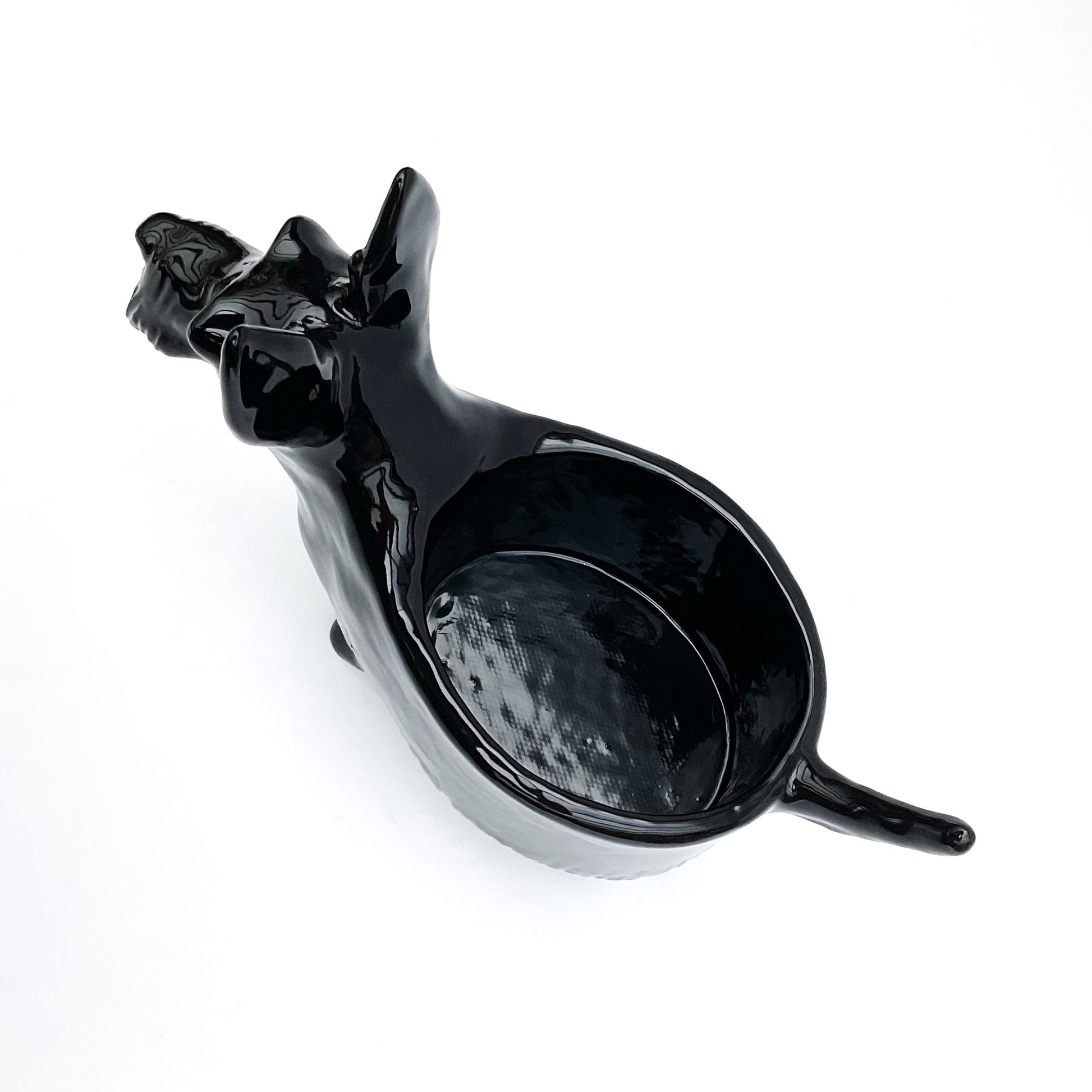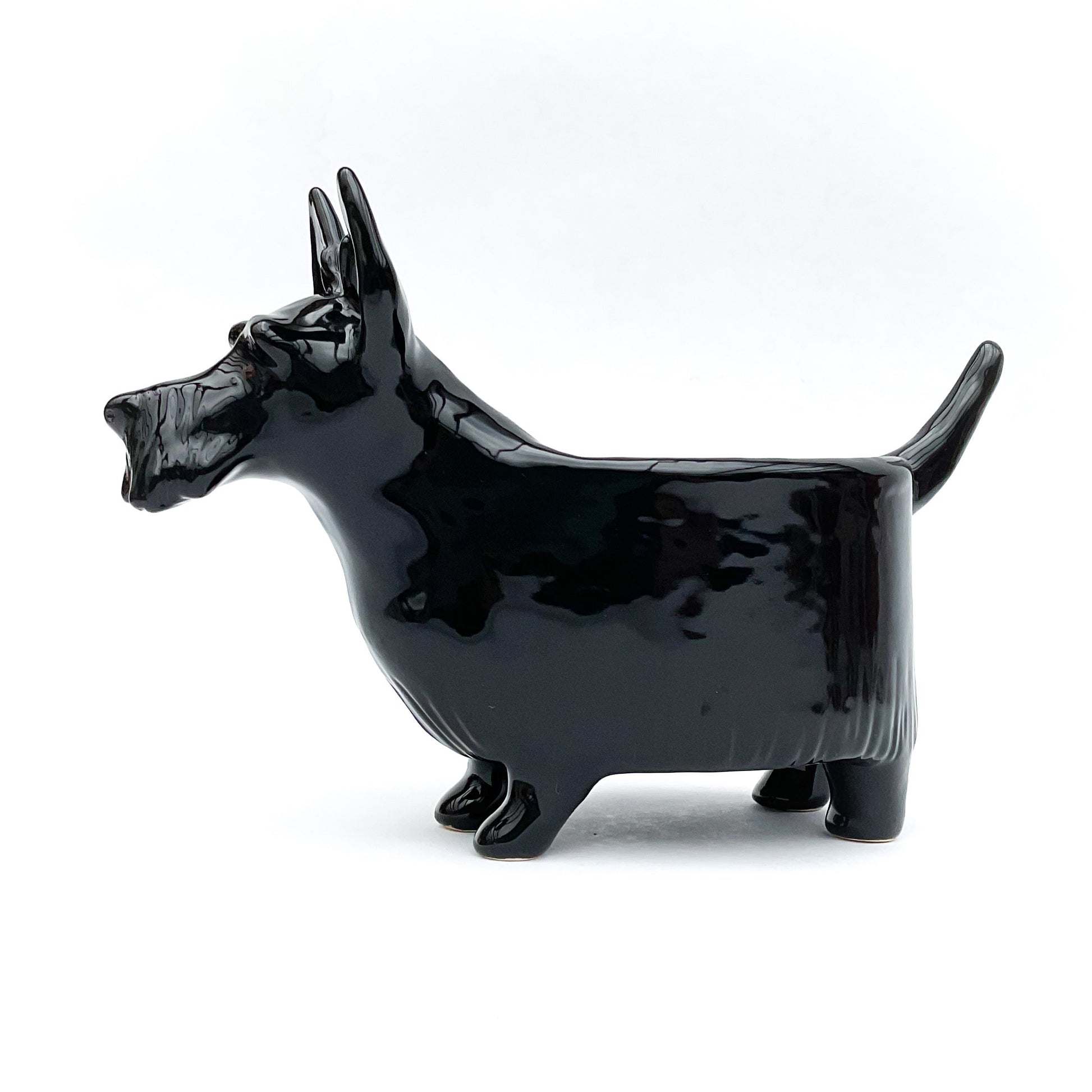 A ceramic Scottish Terrier dog planter to pot up your favorite plant. This dog pot would also make a sweet candy or keepsake bowl.