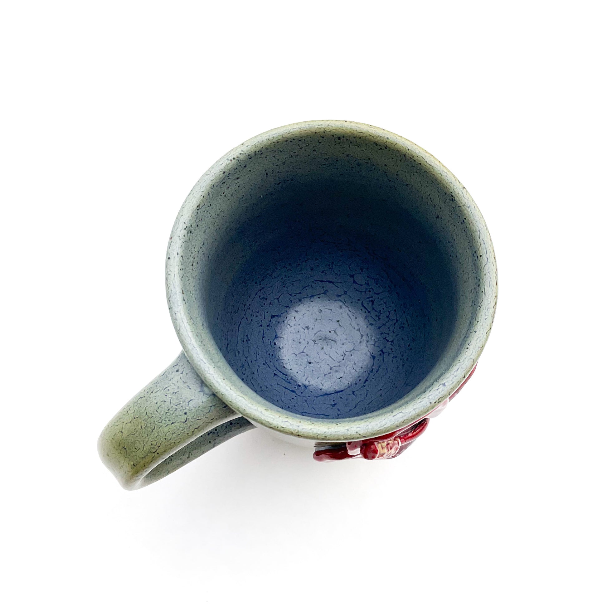 This unique hand sculpted flower mug, crafted by Hoof Print Pottery in southeast Ohio, is a one-of-a-kind masterpiece! Every detail of this original mug is skillfully made by hand, one petal, bud, and leaf at a time. After each small piece is sculpted it is adhered to the unfired mug using only clay and water. After the raw clay mug is thoroughly dried it is bisque fired in the kiln to 1,945°F. When the mug is cooled it is then hand painted and refired (glaze fired) to 2,300°F.