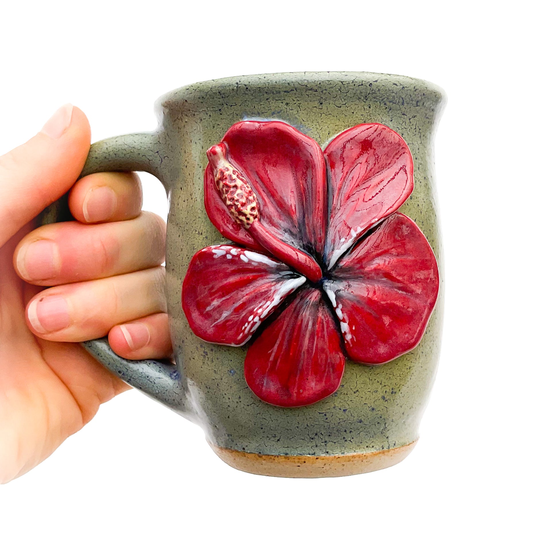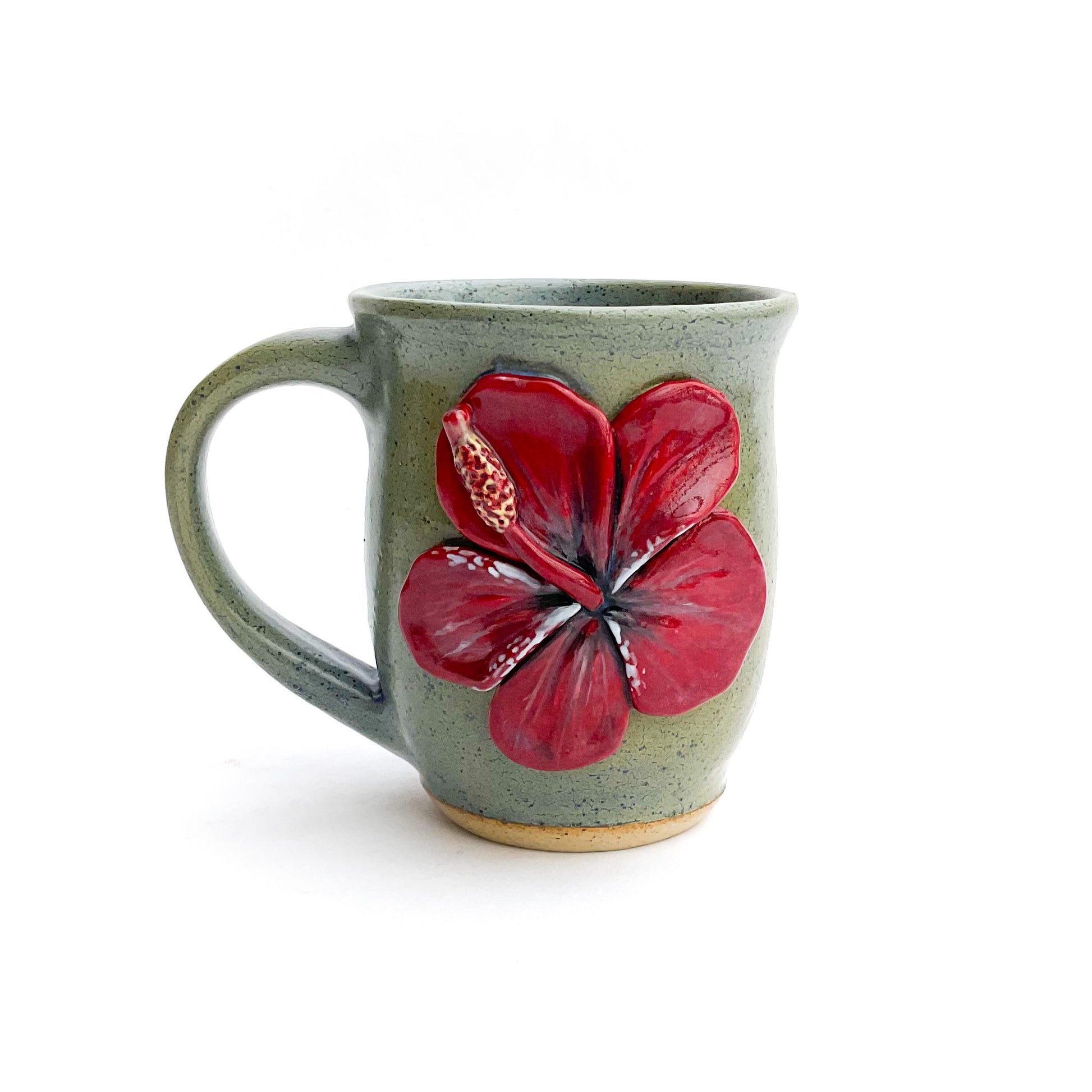 Hibiscus Hand Sculpted Stoneware Mug 10 oz