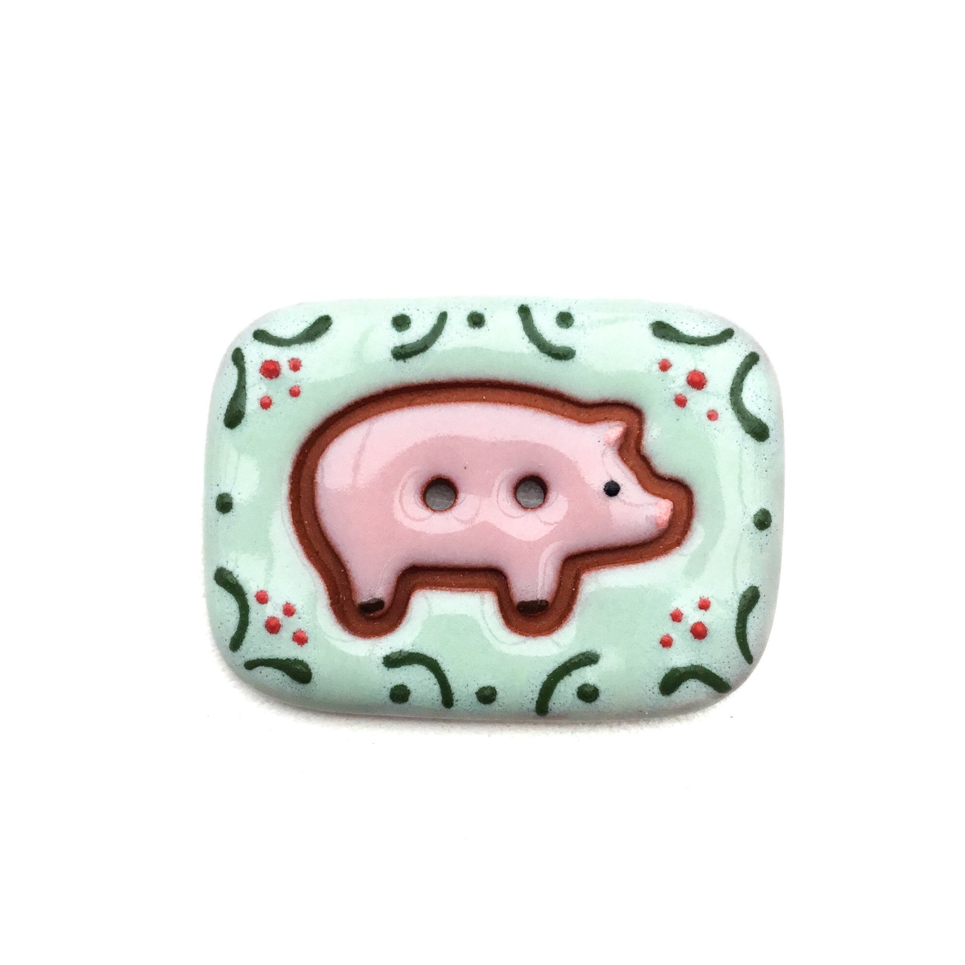 These ceramic pig buttons are fun and unique. We love creating these buttons, surrounding the little pigs with flowers and giving them character! They'd make a darling addition to your handwork!