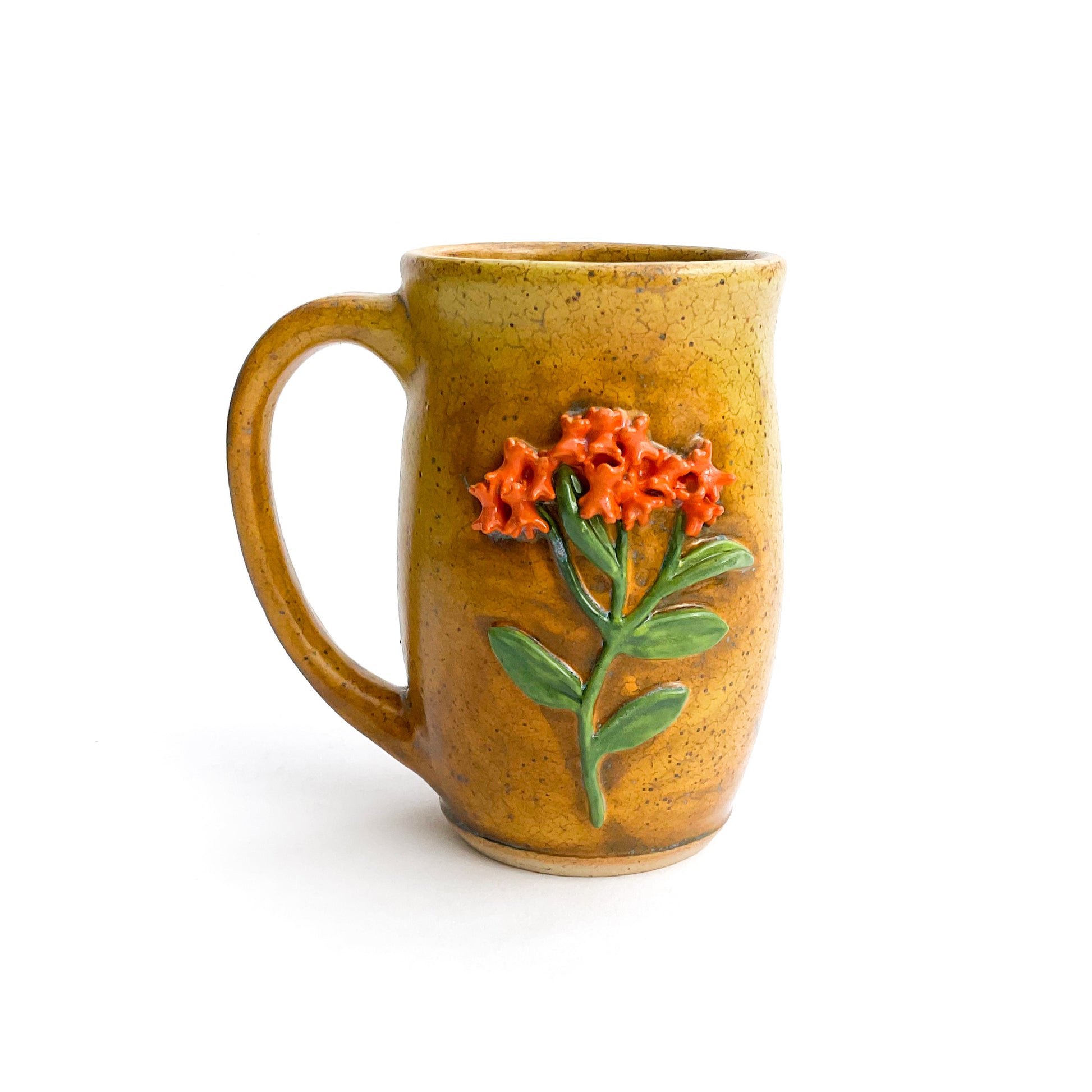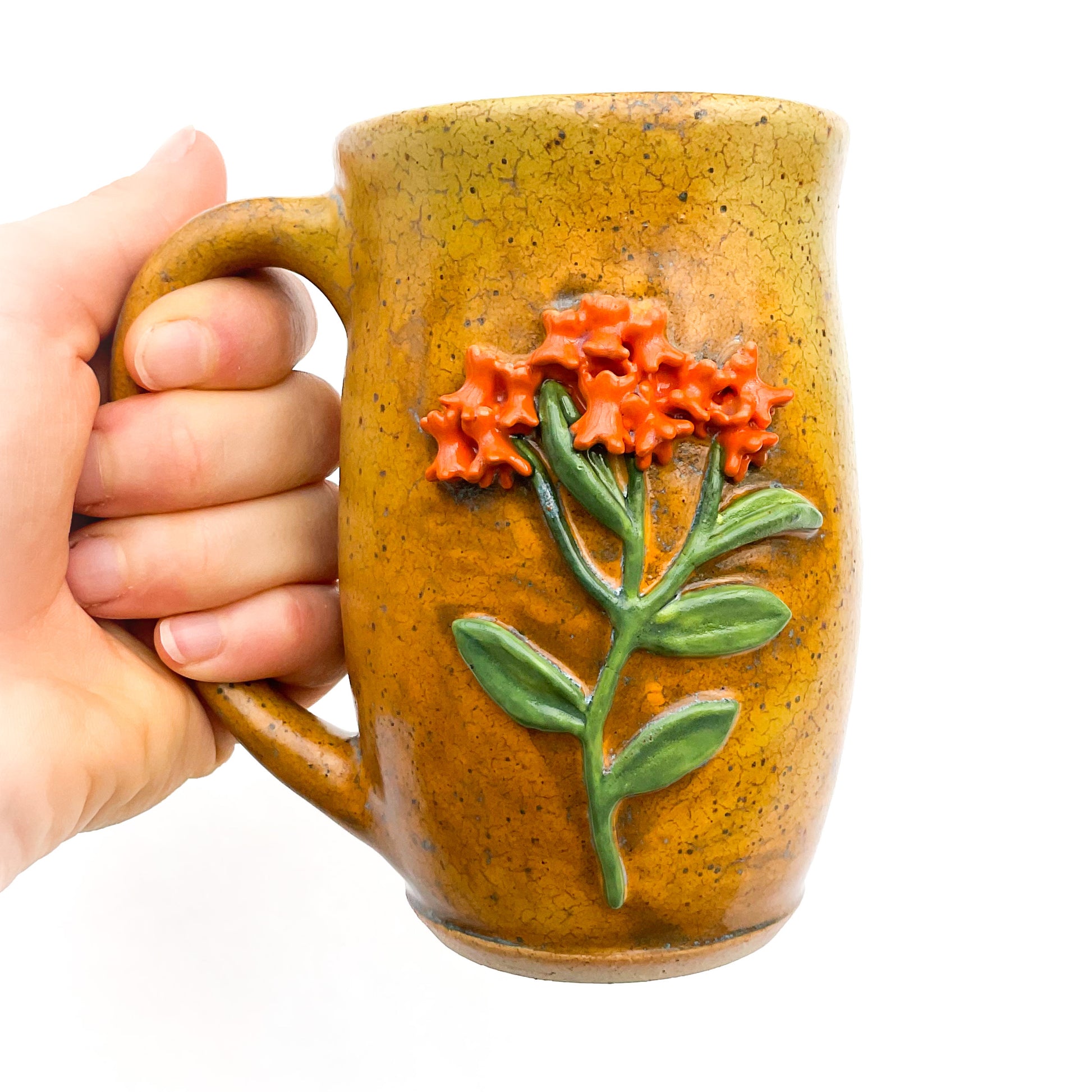 Butterfly Weed Hand Sculpted Stoneware Mug 12 oz