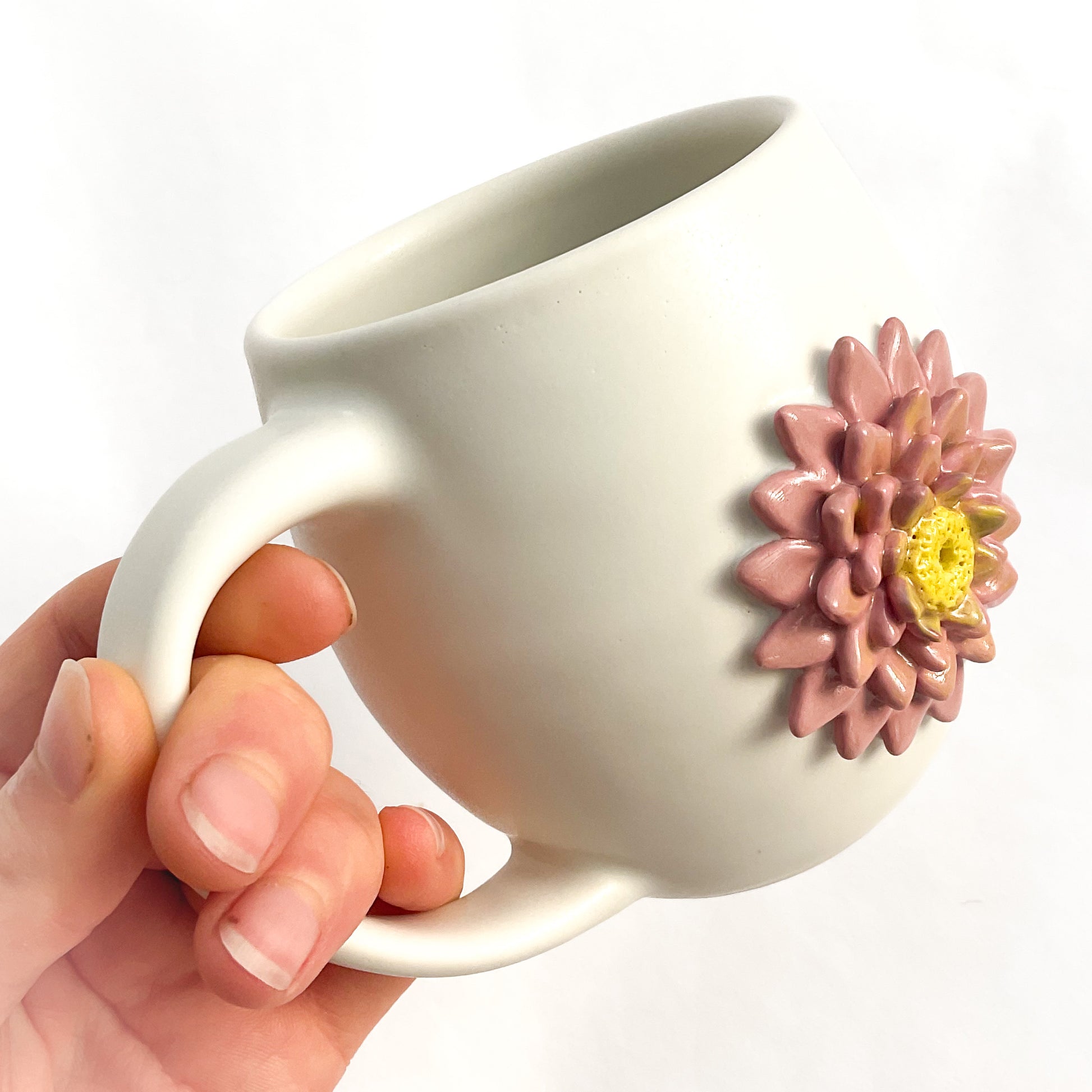 Dahlia Hand Sculpted Porcelain Mug 12 oz