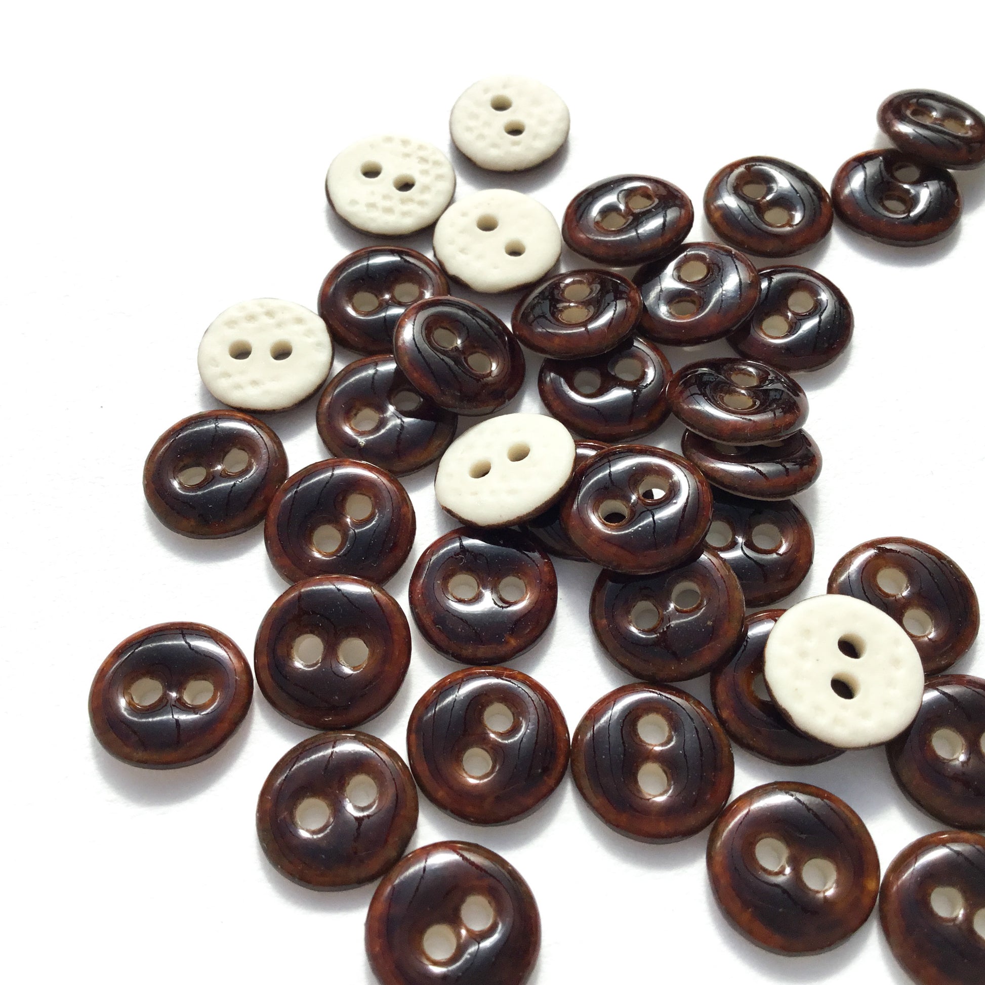 These ceramic buttons are sweet and dainty. Perfect for the delicate hand knit sweater or sewn blouse.