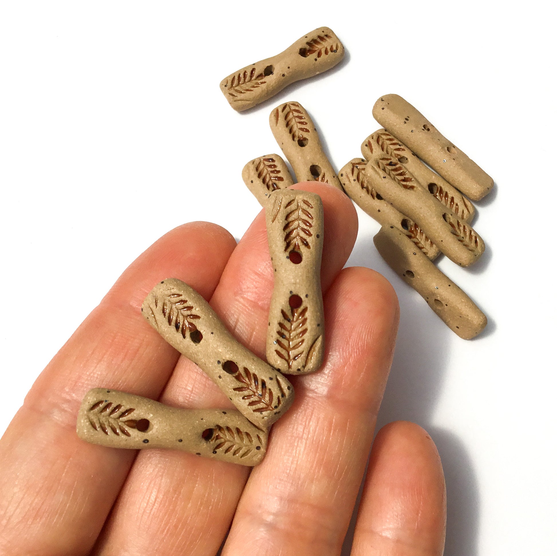 These stoneware buttons have been hand rolled and cut giving each a slightly different shape. The stamped wheat design has been filled in with a rich colored glaze to accentuate the design. They'd add a beautiful addition to your handwork! Please note that the surface of these buttons has been left unglazed and may not be suitable to wear against fine fabrics such as silk.