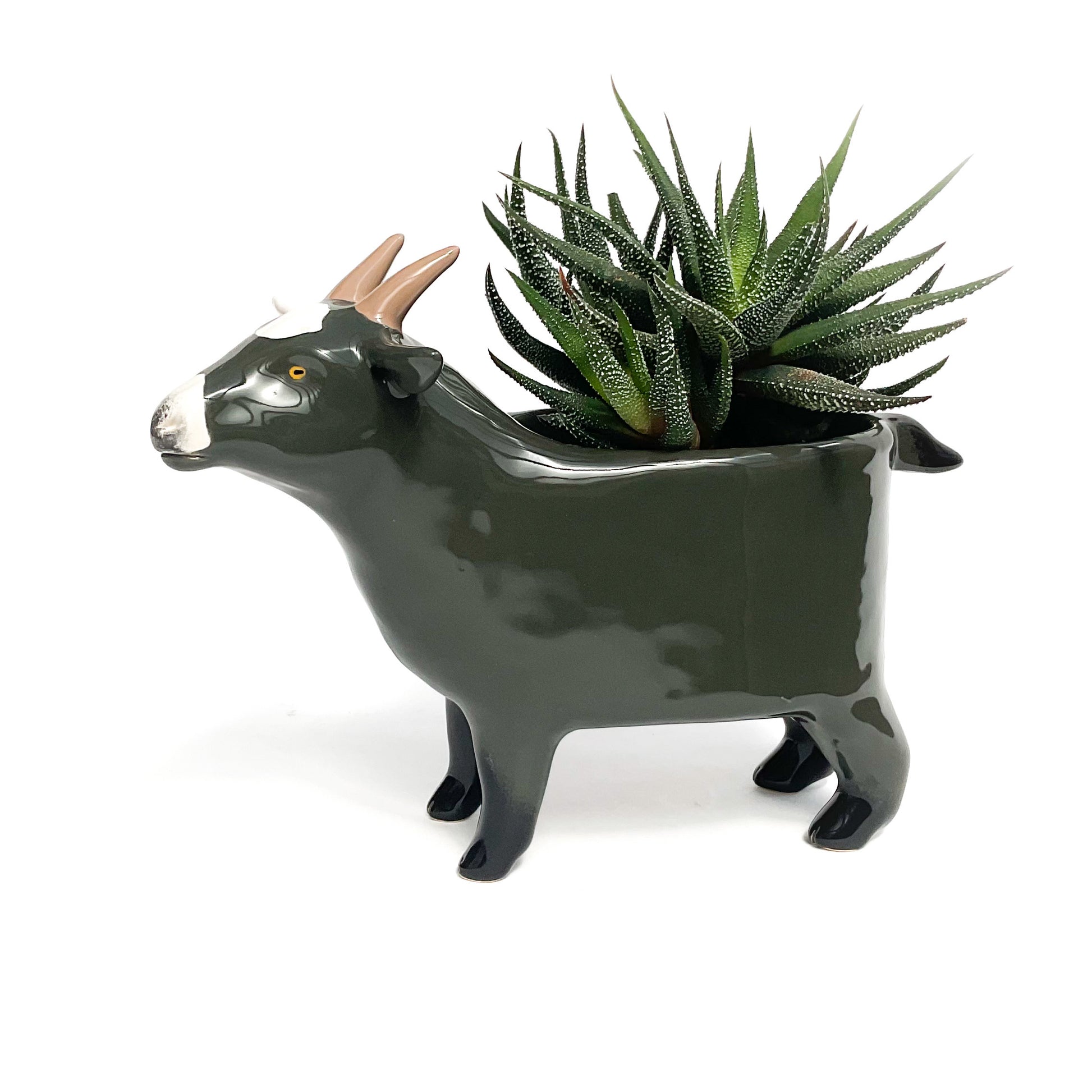 A little ceramic pygmy goat planter to pot up your favorite succulent.