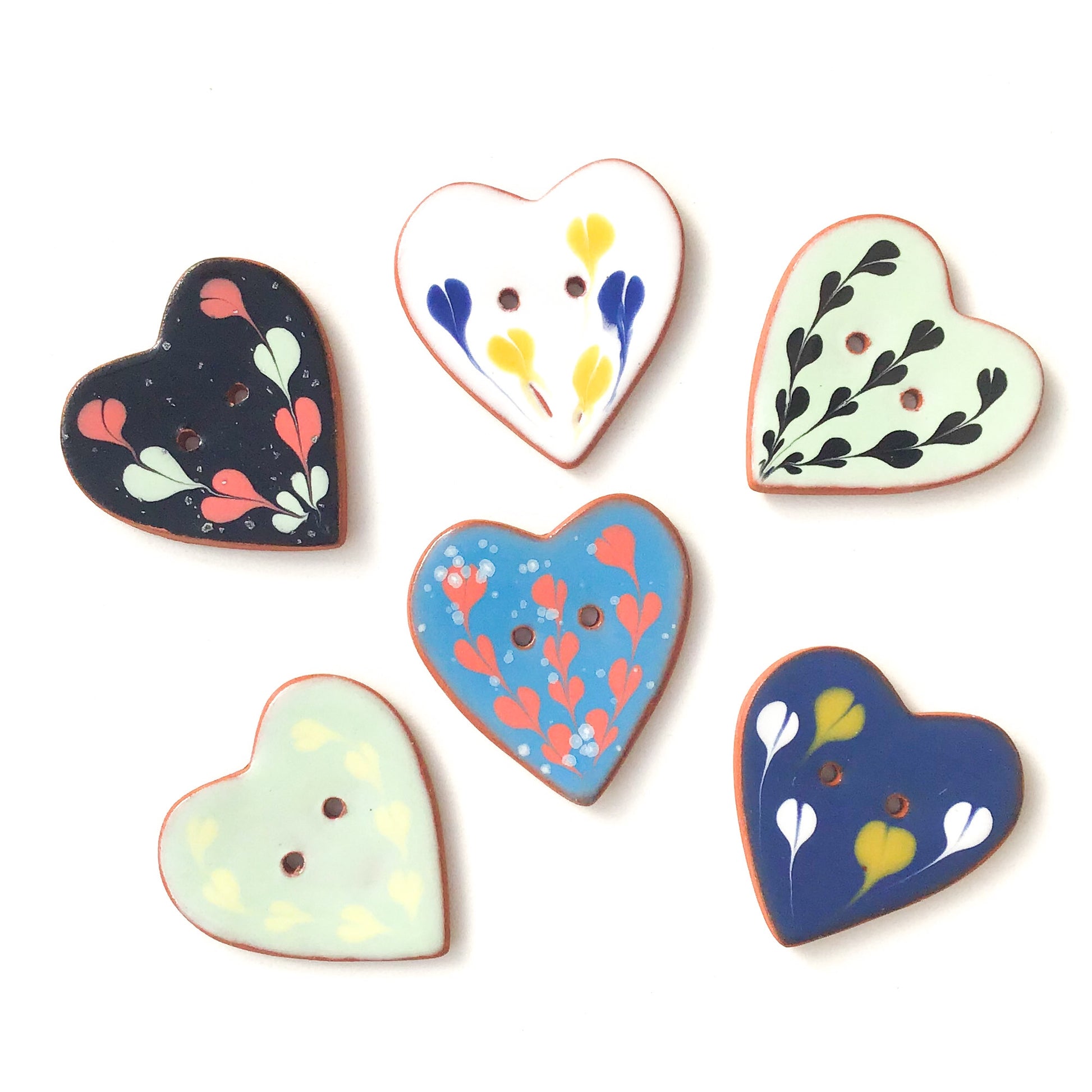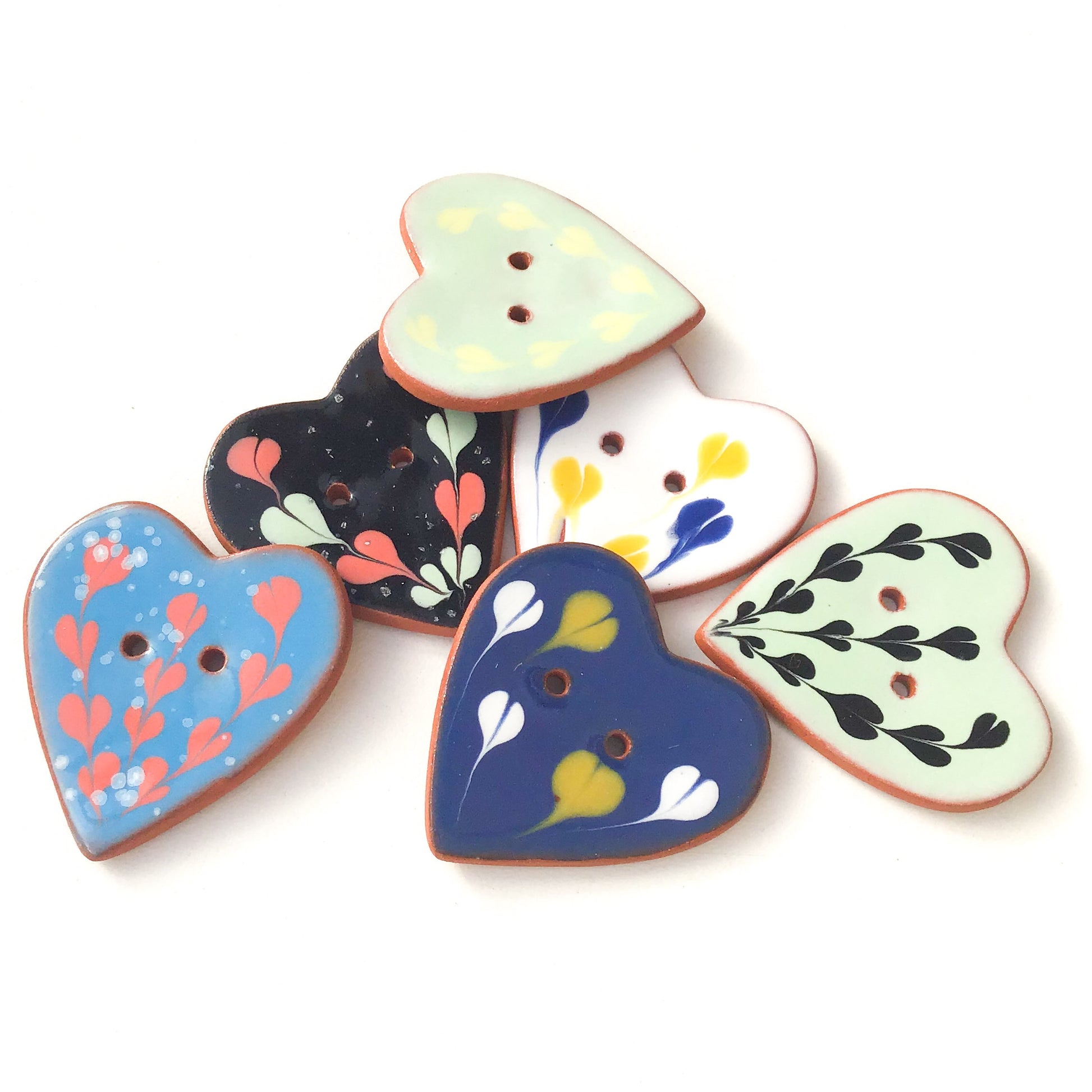 Decorative Heart Buttons - Ceramic Heart Button - 1 3/8"