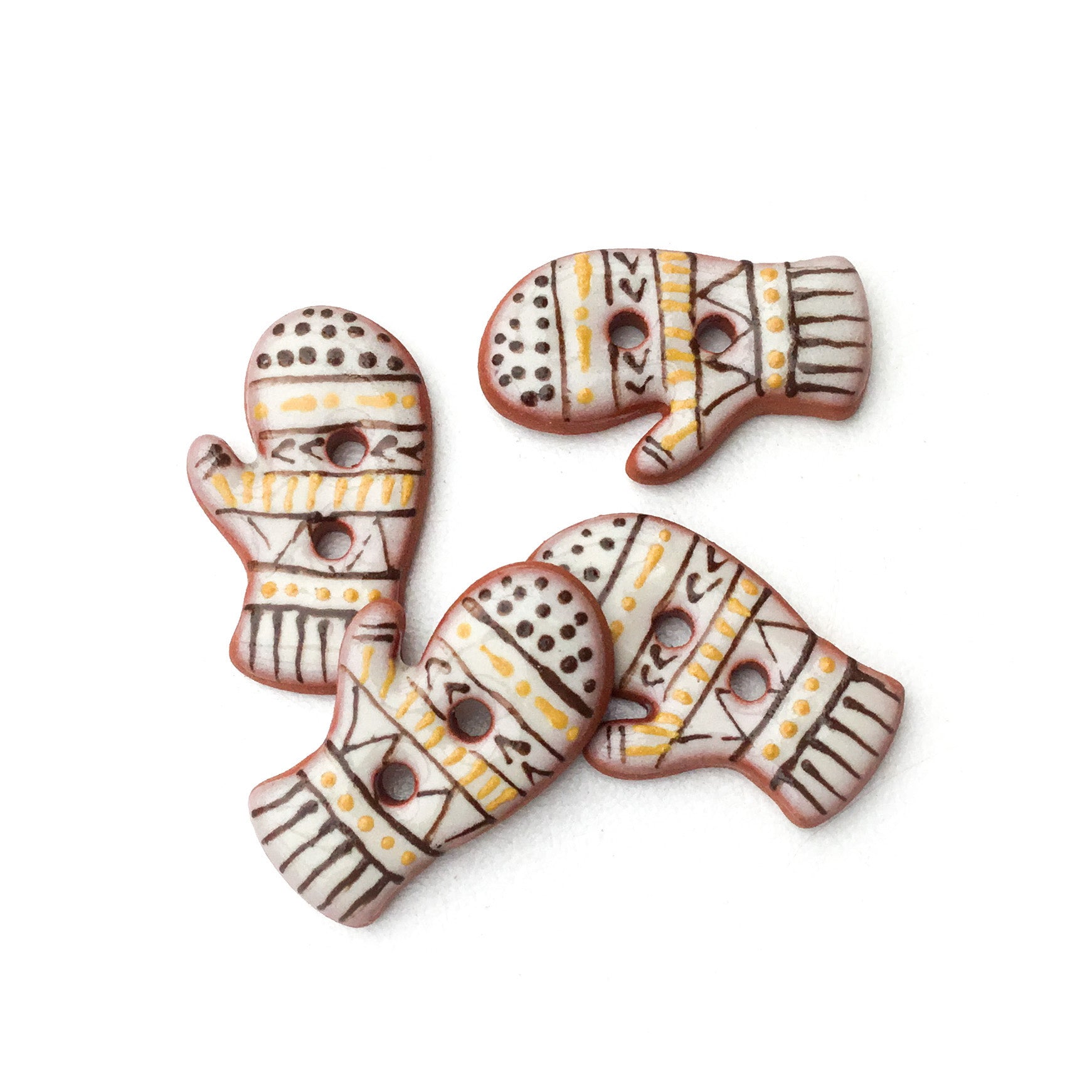 These little ceramic mitten buttons are so much fun! Individually hand painted, each one is unique and will add a wonderful touch to any project!