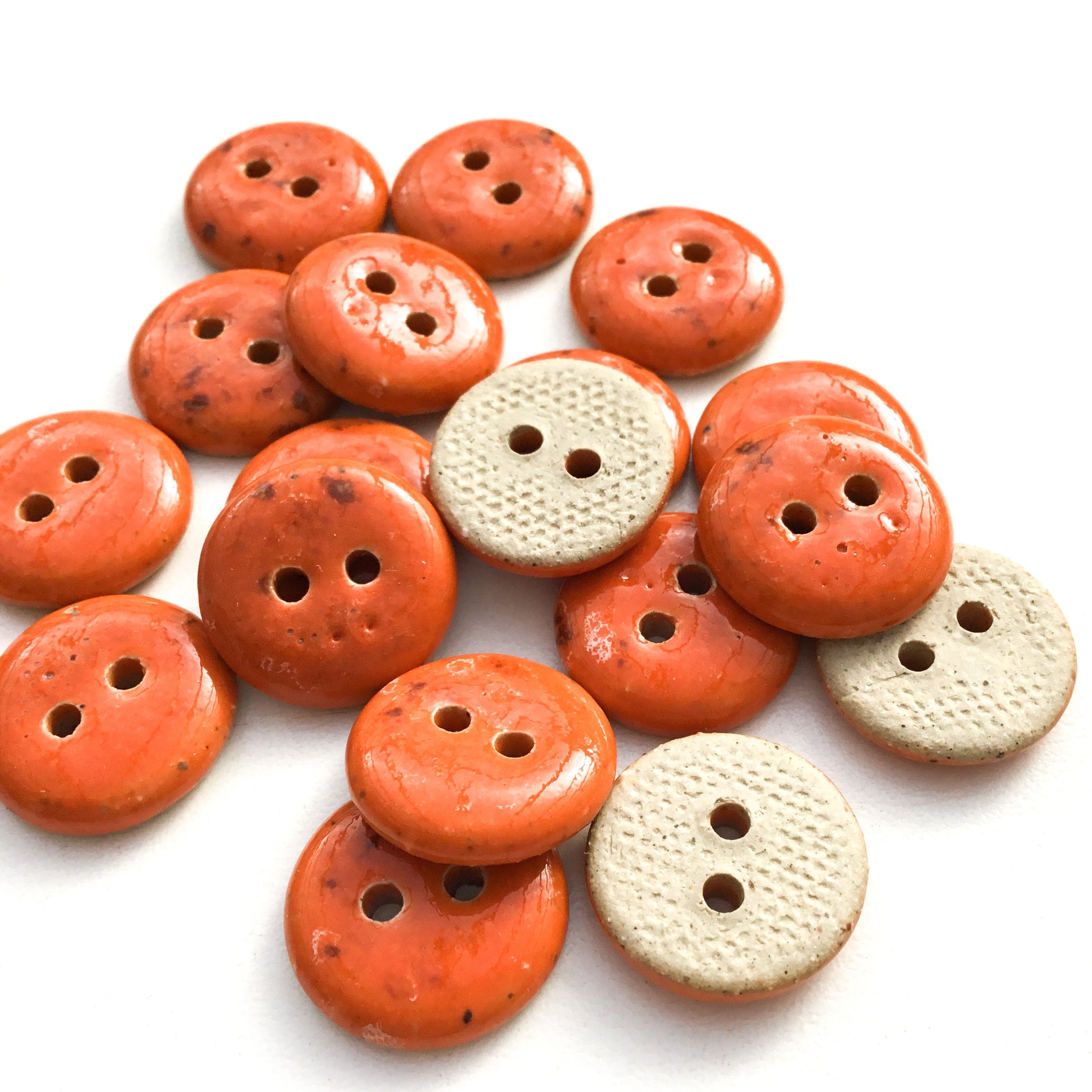 These ceramic buttons are simple and earthy in a vibrant shade of orange. They'd make a beautiful addition to your handwork!