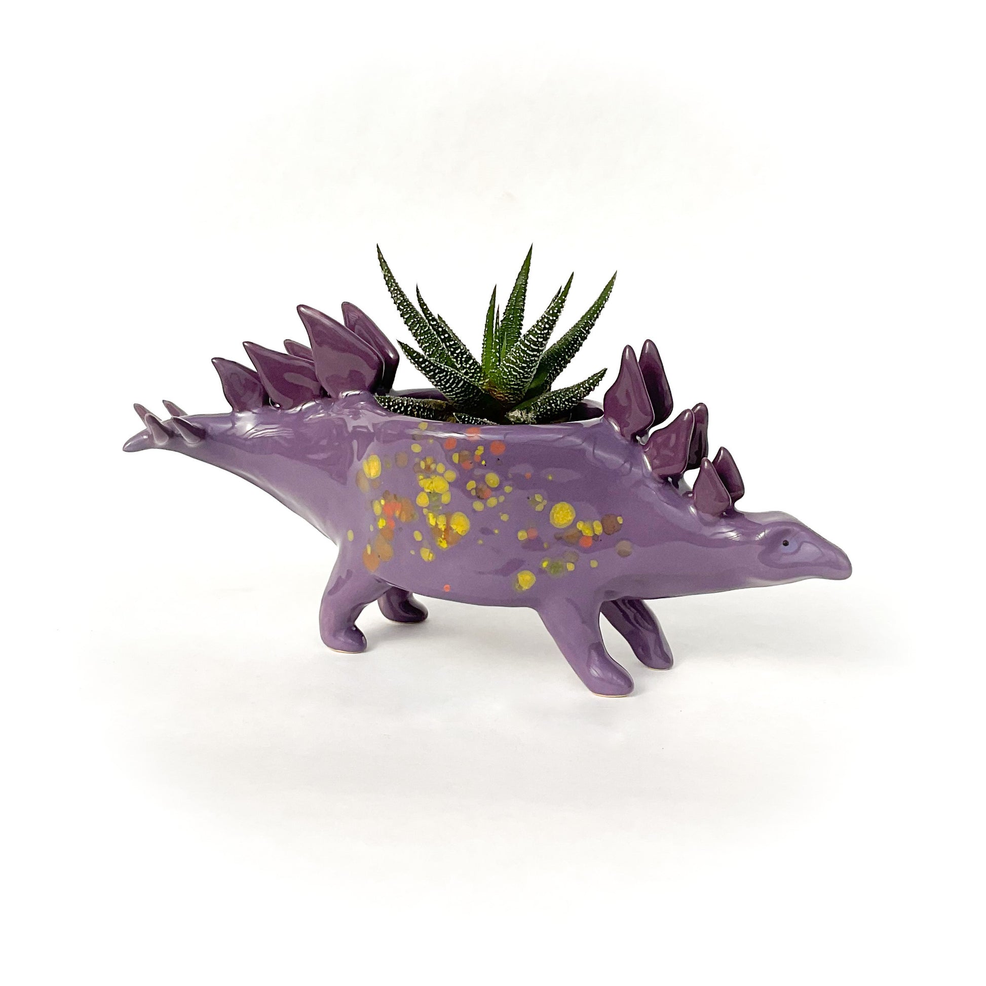 Deep Purple Stegosaurus Dinosaur Planter - Dinosaur Succulent Planter