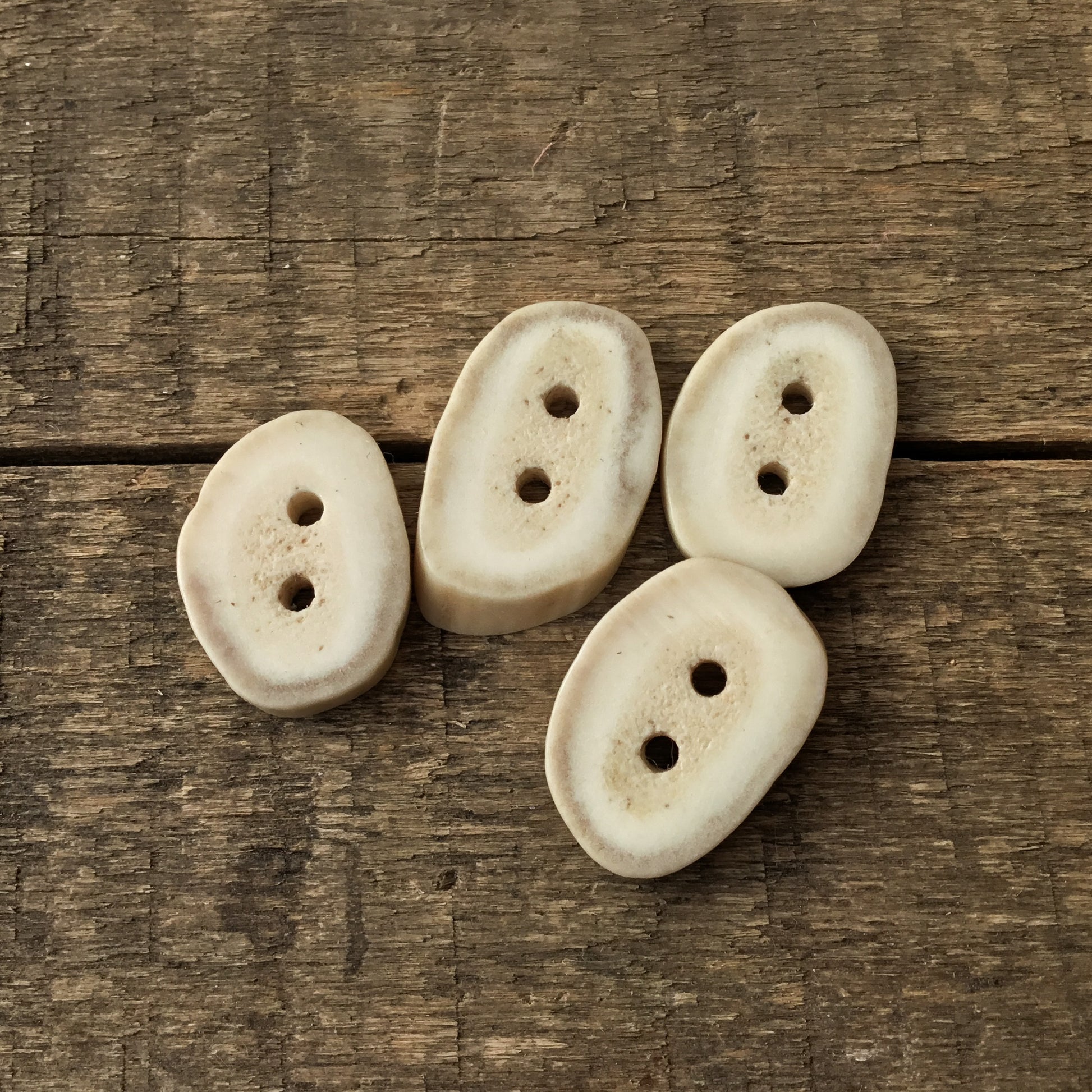 These deer antler shed buttons add a beautiful, natural touch to any garment. Made from antler sheds found, usually by our canine friends, in the field and forest on and around our farm. We sand each one to a silky smooth finish and coat in an all-natural oil and beeswax finish. These buttons are strong, durable, and will last a lifetime!