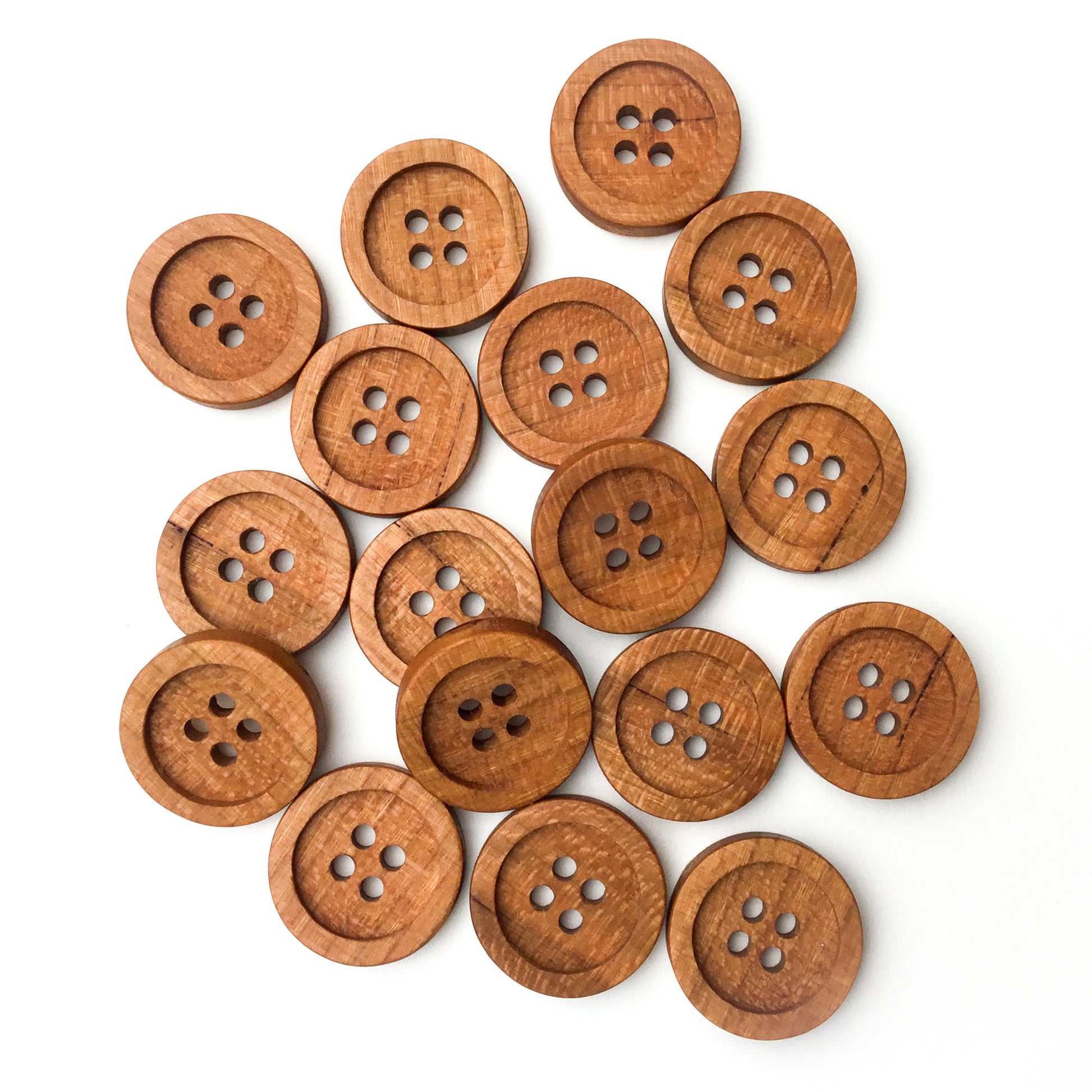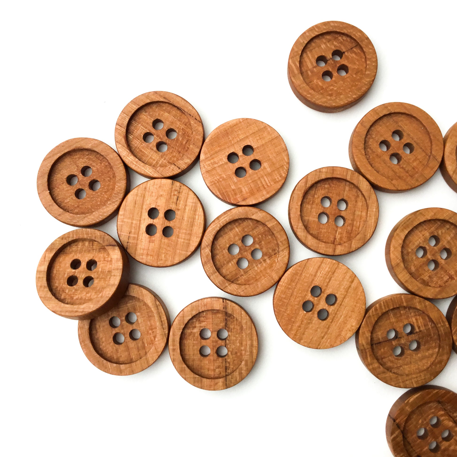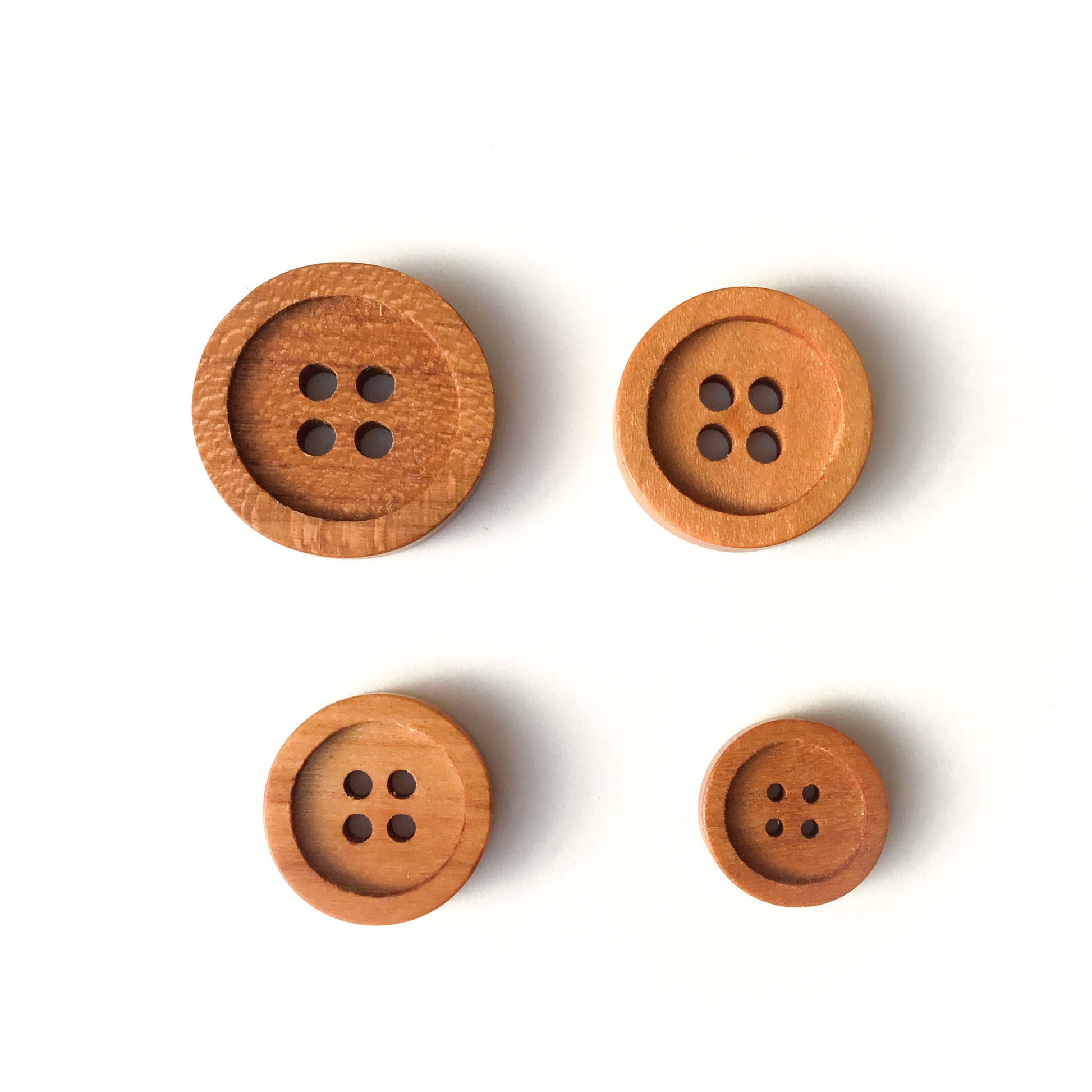 These natural wood buttons are made using fallen or damaged trees we harvest from our farm's woodlot. Each is hand sanded for a smooth finish and sealed in an all-natural oil and beeswax finish. Perfect for adding a natural and timeless touch to your handmades!