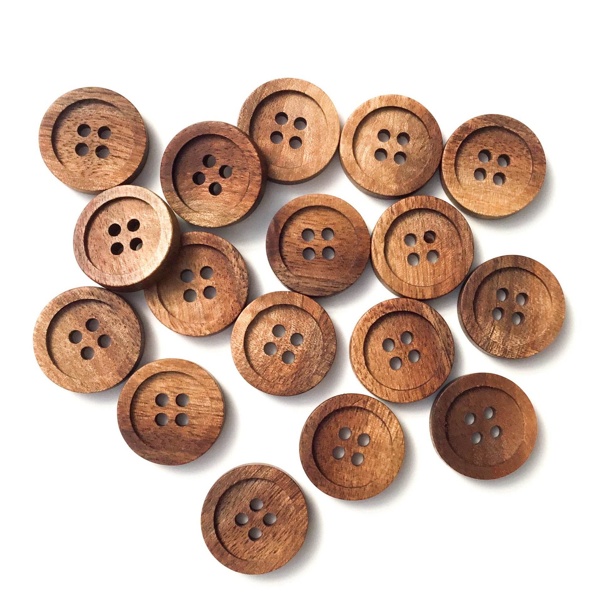 These natural wood buttons are made using fallen or damaged trees we harvest from our farm's woodlot. Each is hand sanded for a smooth finish and sealed in an all-natural oil and beeswax finish.
