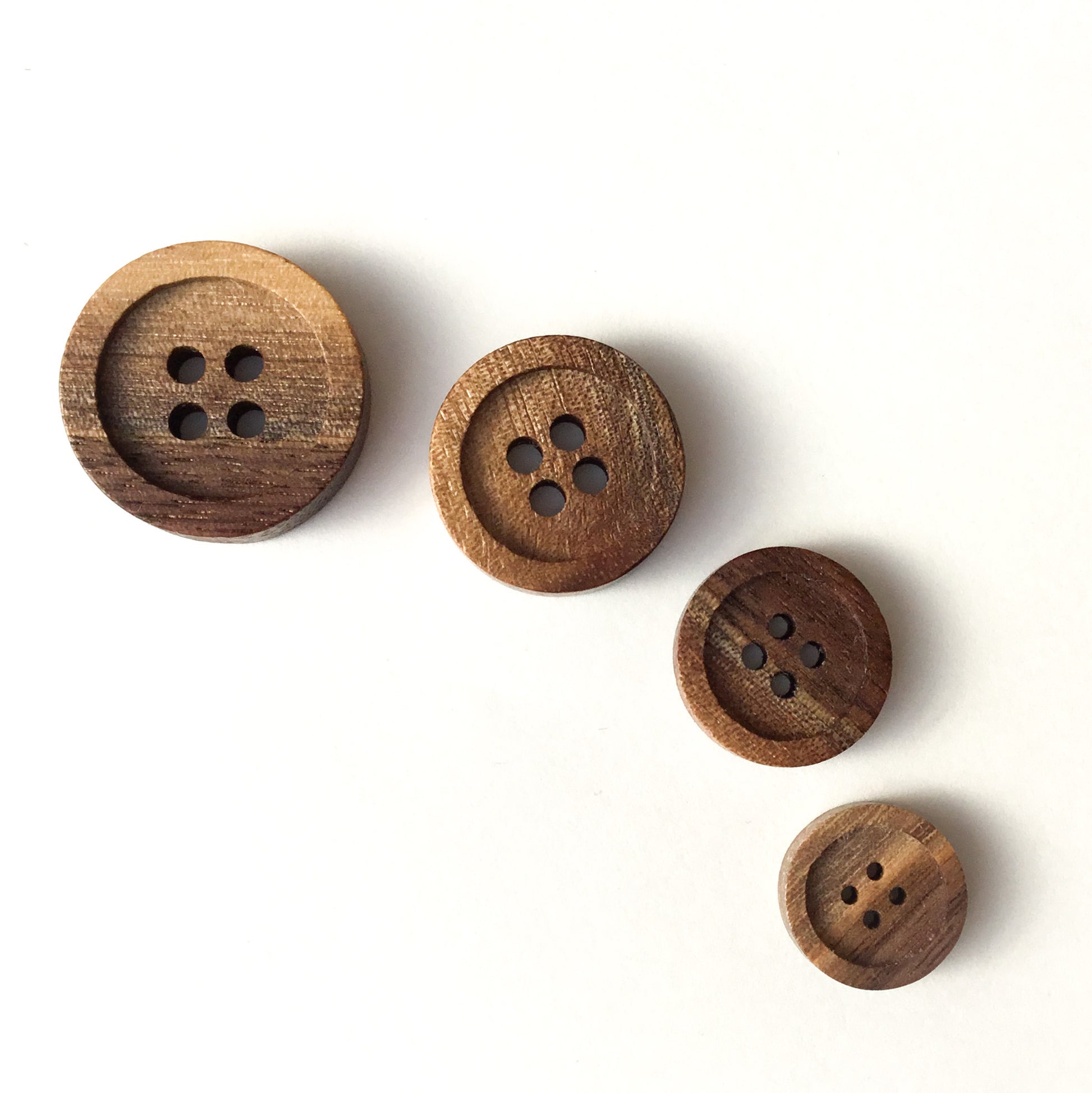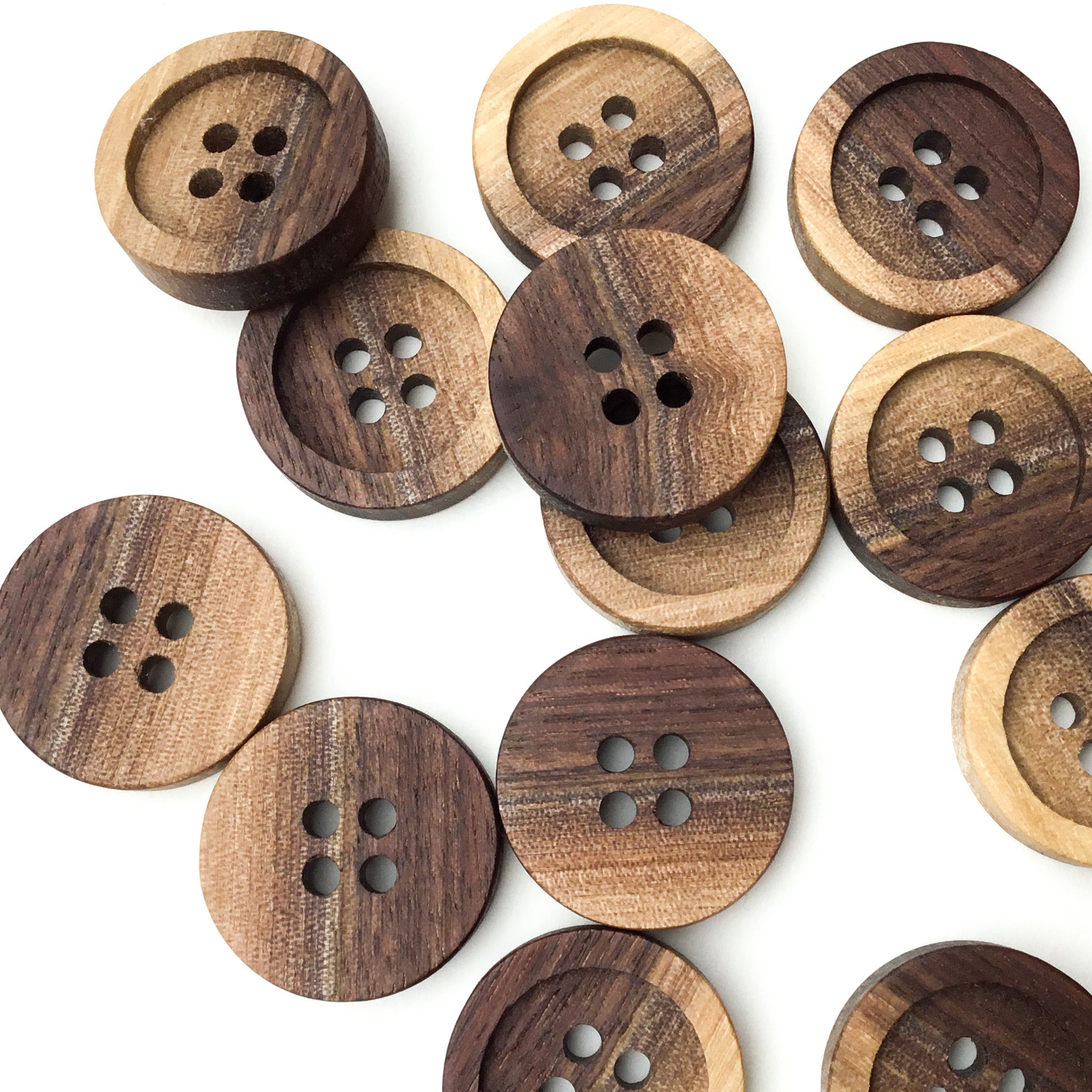 These natural wood buttons are made using fallen or damaged trees we harvest from our farm's woodlot. Each is hand sanded for a smooth finish and sealed in an all-natural oil and beeswax finish. Perfect for adding a natural and timeless touch to your handmades!